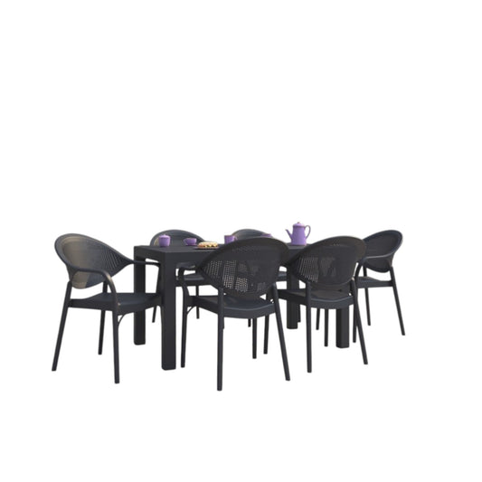 Rehome Orlando 90x150 Masalı 6 Sandalyeli Plastik Bahçe Masa Takımı (Antrasit)