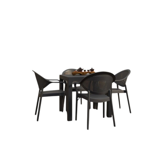 Rehome Arizona 80x80 Masalı 4 Sandalyeli Plastik Bahçe Masa Takımı (Antrasit)