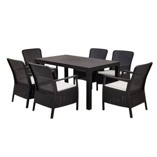 Rehome Arizona 80x140 Masalı 6 Sandalyeli Plastik Bahçe Masa Takımı (Antrasit)