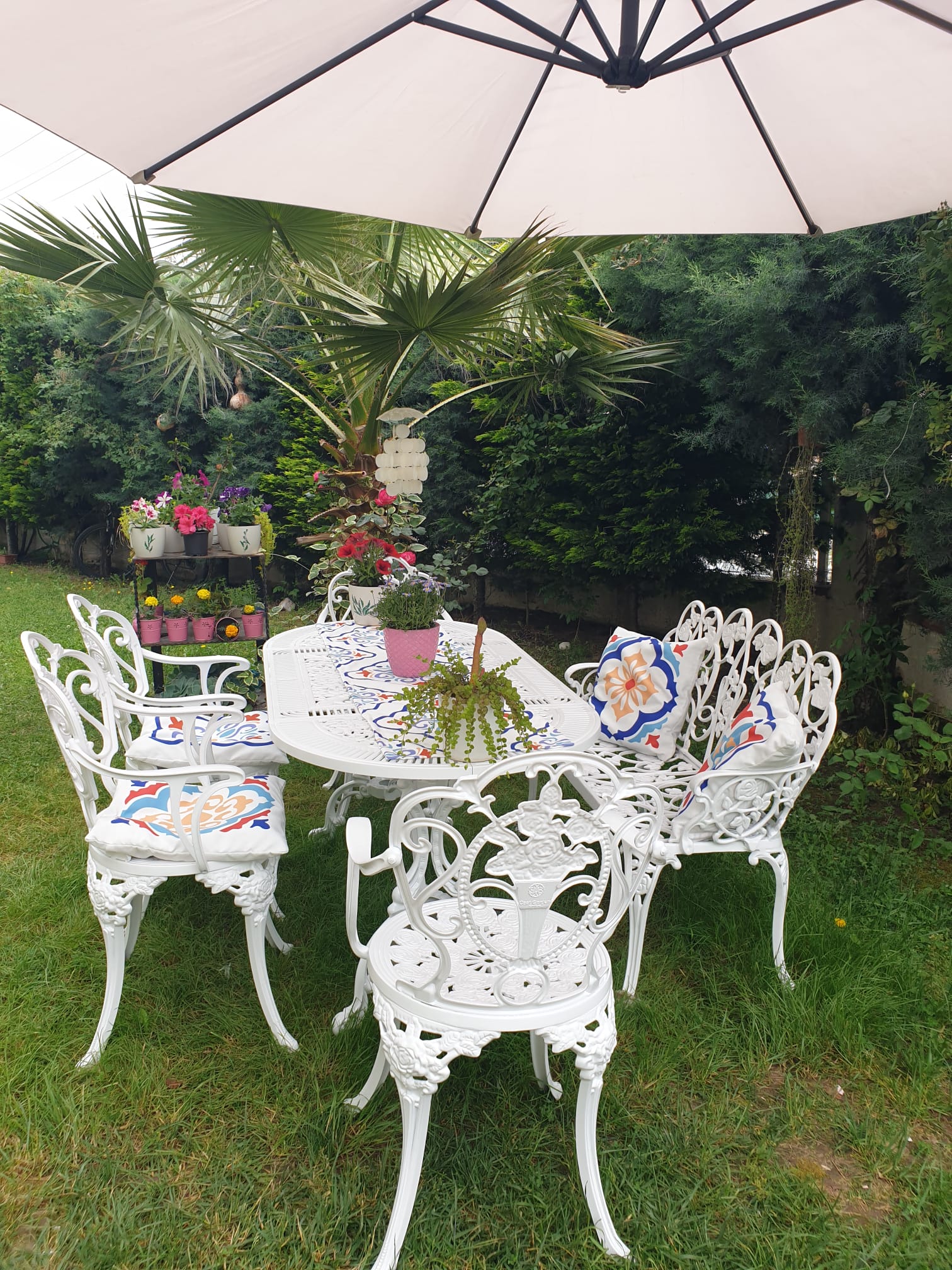 • Ferforje bahçe takımı modelleri: Klasik tasarımları sevenler için zarif bir seçim.