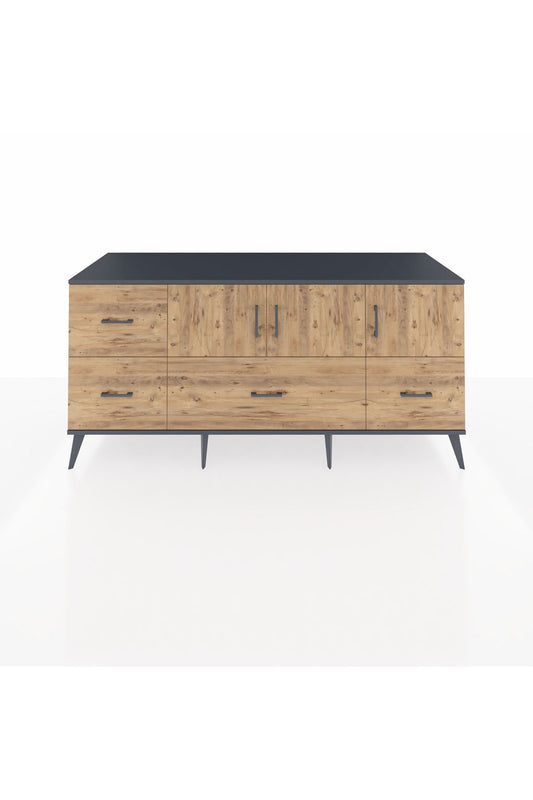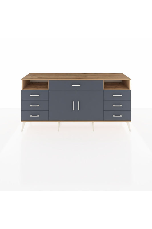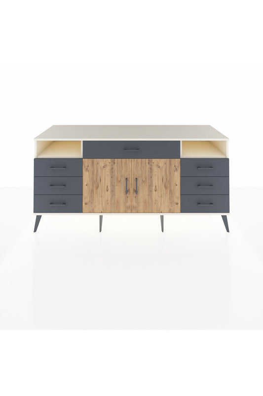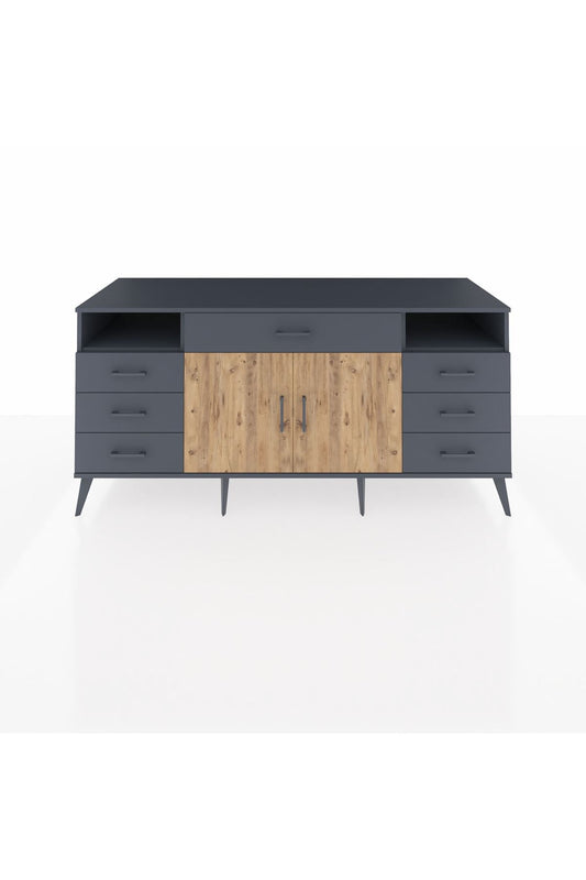 Kronos Konsol 4 Raflı 7 Çekmeceli 2 Kapaklı 176x59x83 Aytaşı-Antrasit/Antrasit