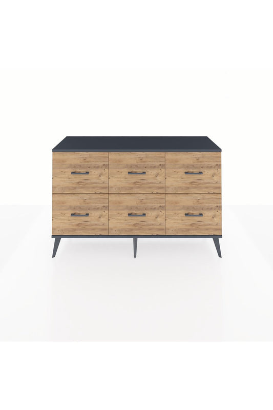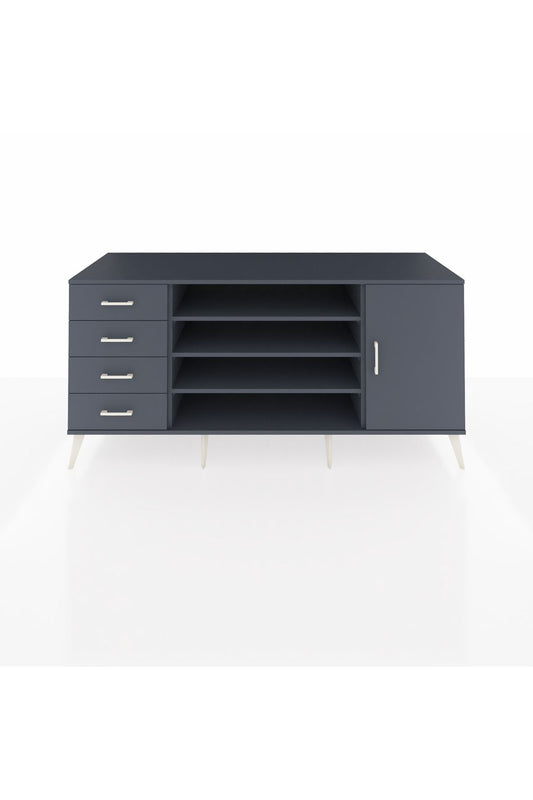 Kronos Konsol 6 Raflı 4 Çekmeceli Tek Kapaklı 176x59x83 Antrasit-Antrasit/Antrasit