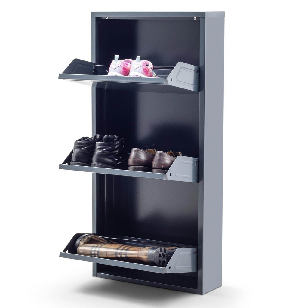 3 Raflı Metal Ayakkabılık | Antrasit | Ayakkabı Rafı | Metal Ayakkabı Dolabı | Rehome