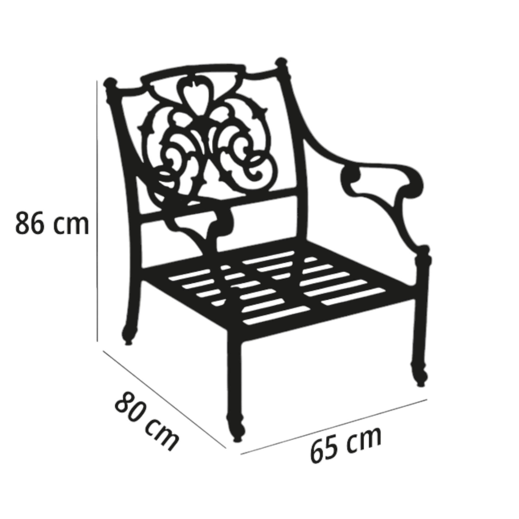 Desen ve Tasarım: Sandalyelerin sırt kısmında klasik döküm desenler, bahçenize zarif ve modern bir görünüm kazandırır.