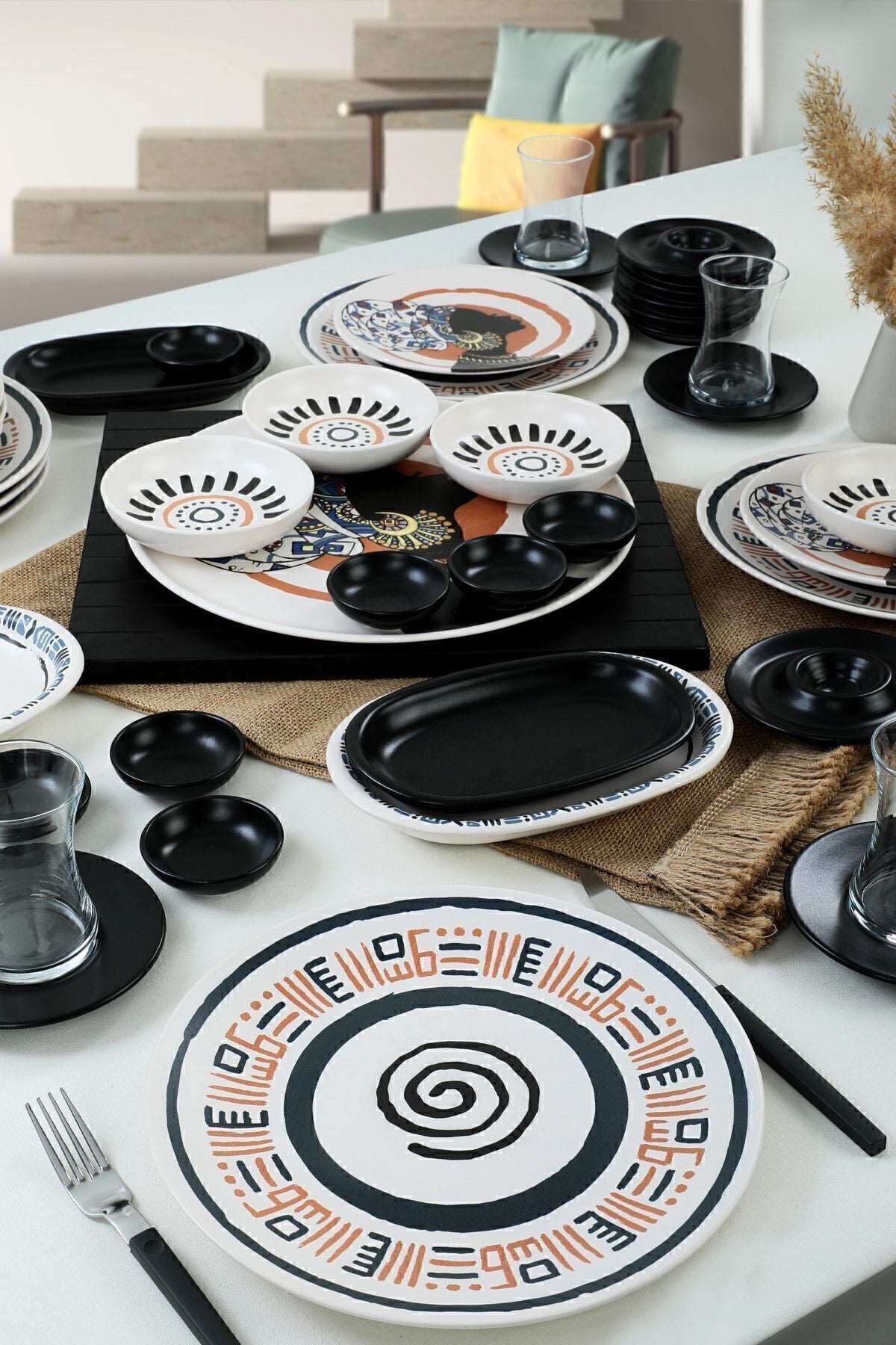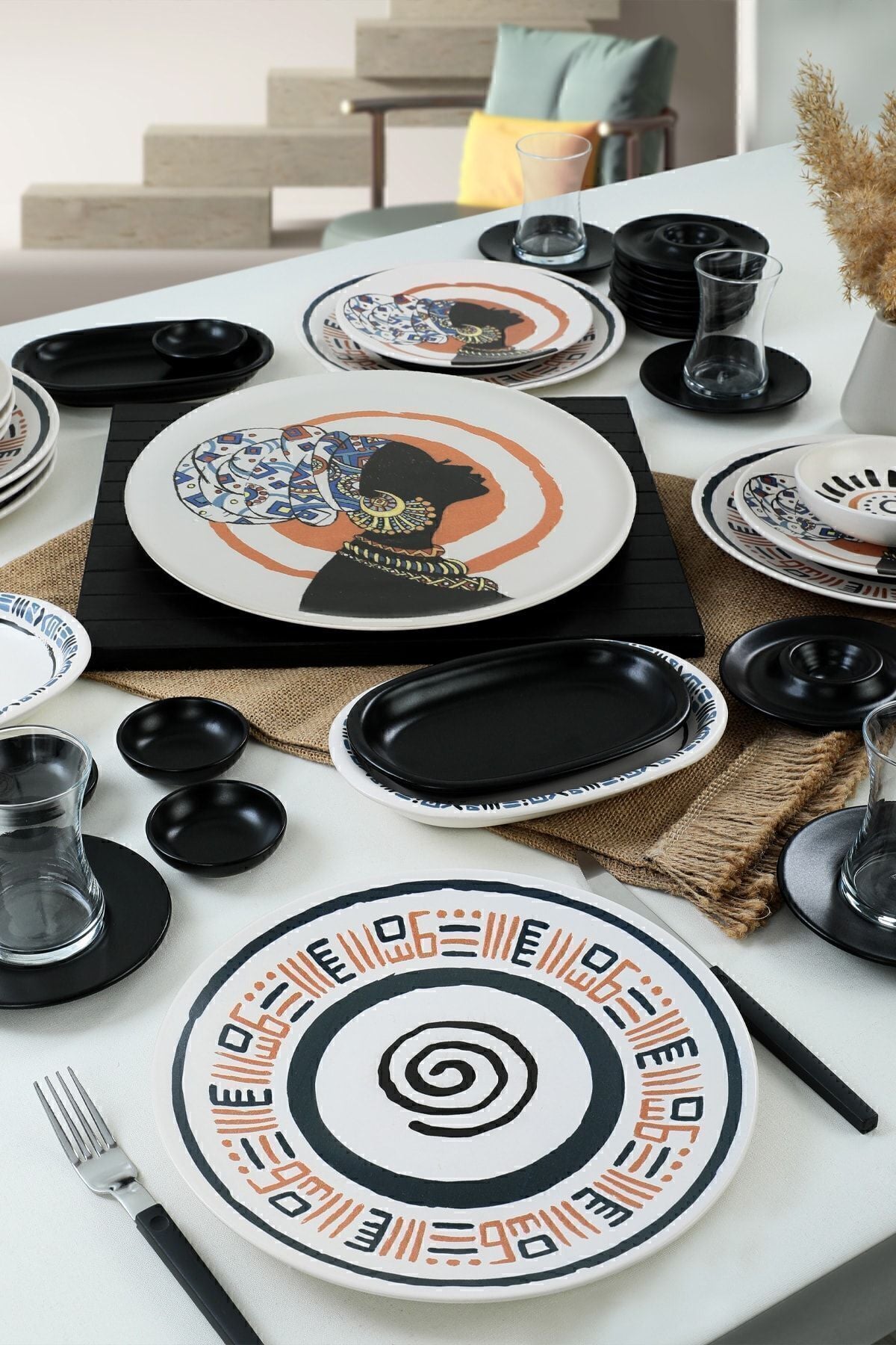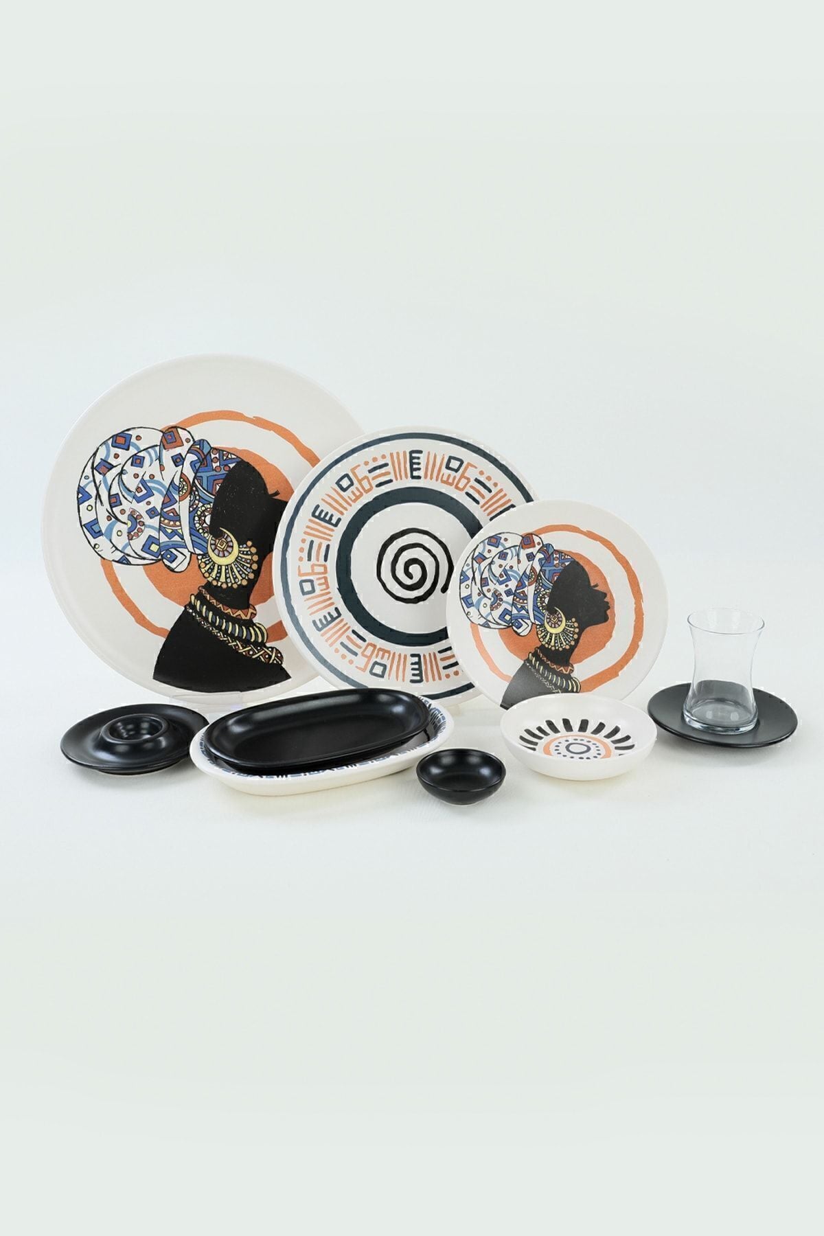 Etnik sembollerin modern çizgilerle, kahvaltı sofralarını adeta büyüleyecek African Kahvaltı Takımı, işin ustası Keramika'dan özel olarak hazırlanmıştır. Stil sahibi sofraların öncüsü olacak bu takım, sofranızda sunumu sanatı ve lezzeti birbirleriyle harmanlayacaktır. Etnik desenlerle özel olarak işlenen bu kahvaltı takımı sevdikleriniz için de hoş bir hediye seçeneği olacaktır.