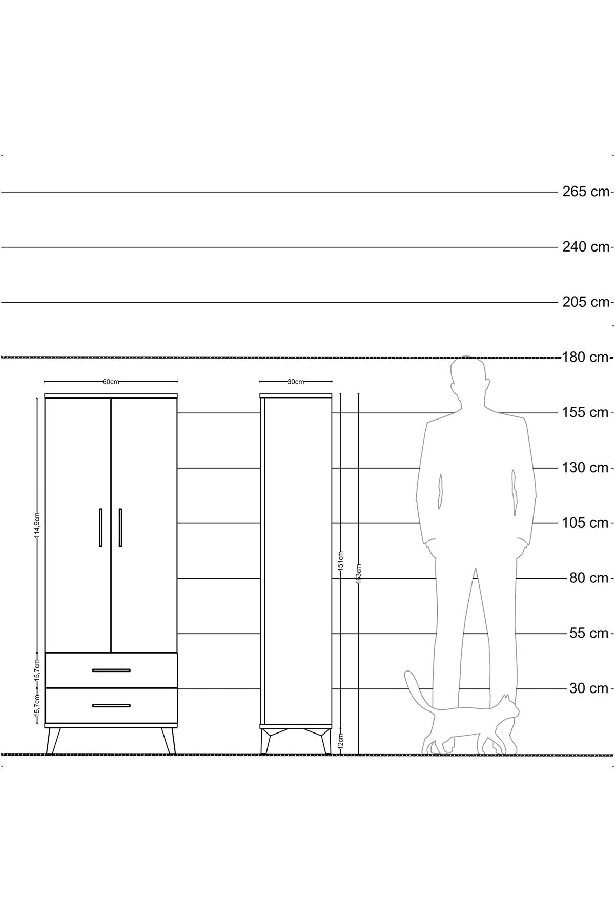 Genişlik: 60 CM – Derinlik: 30 CM – Yükseklik: 163 CM
