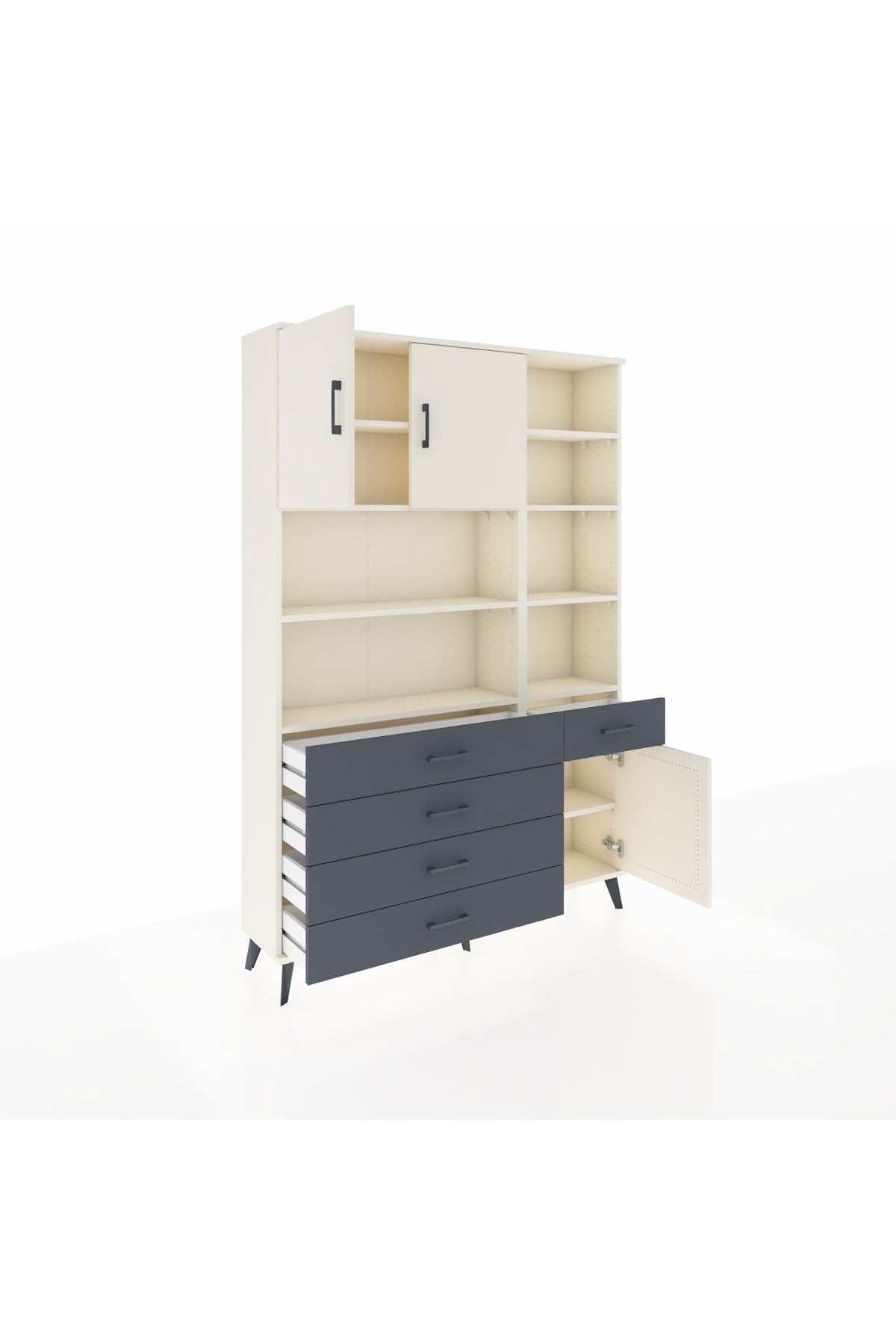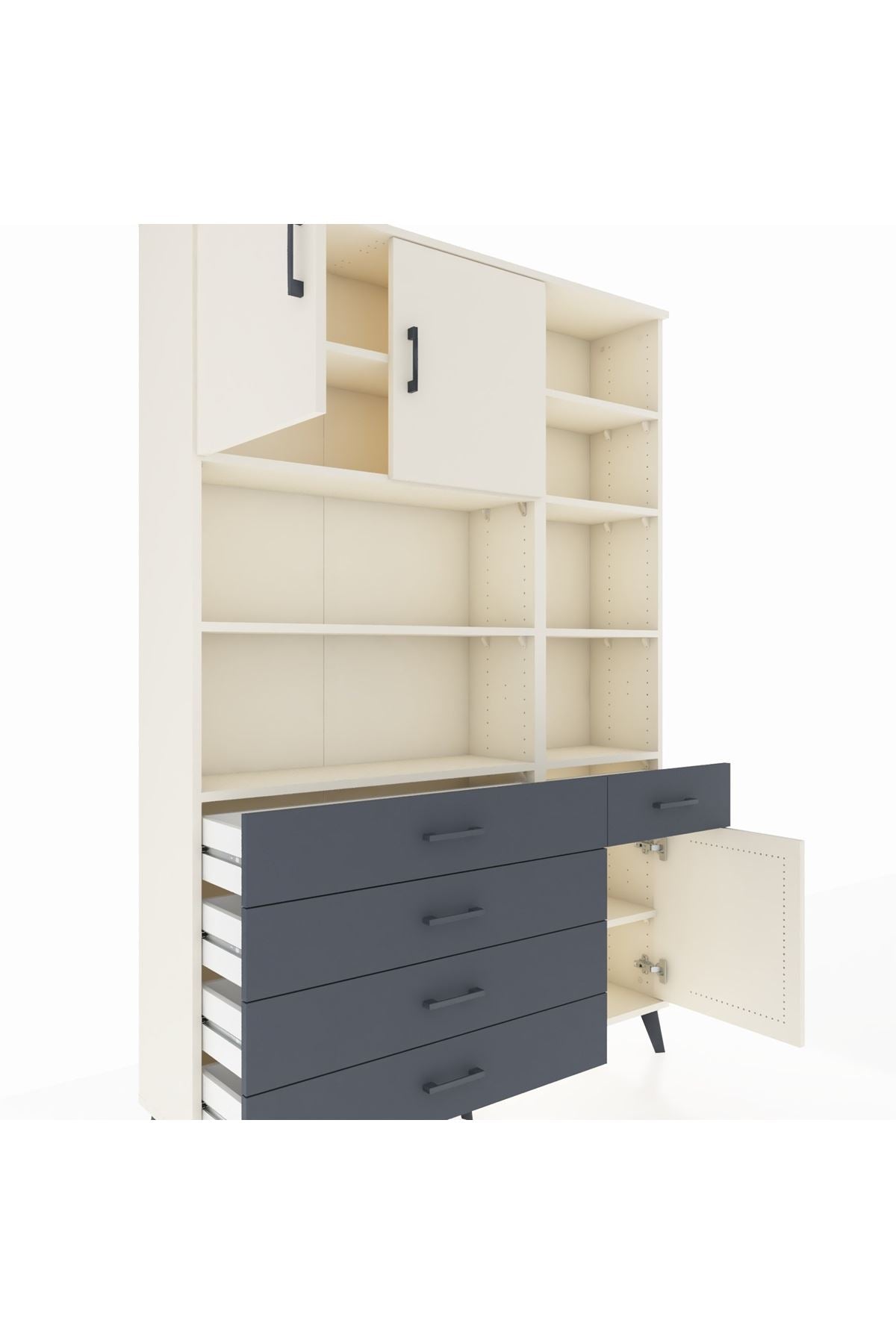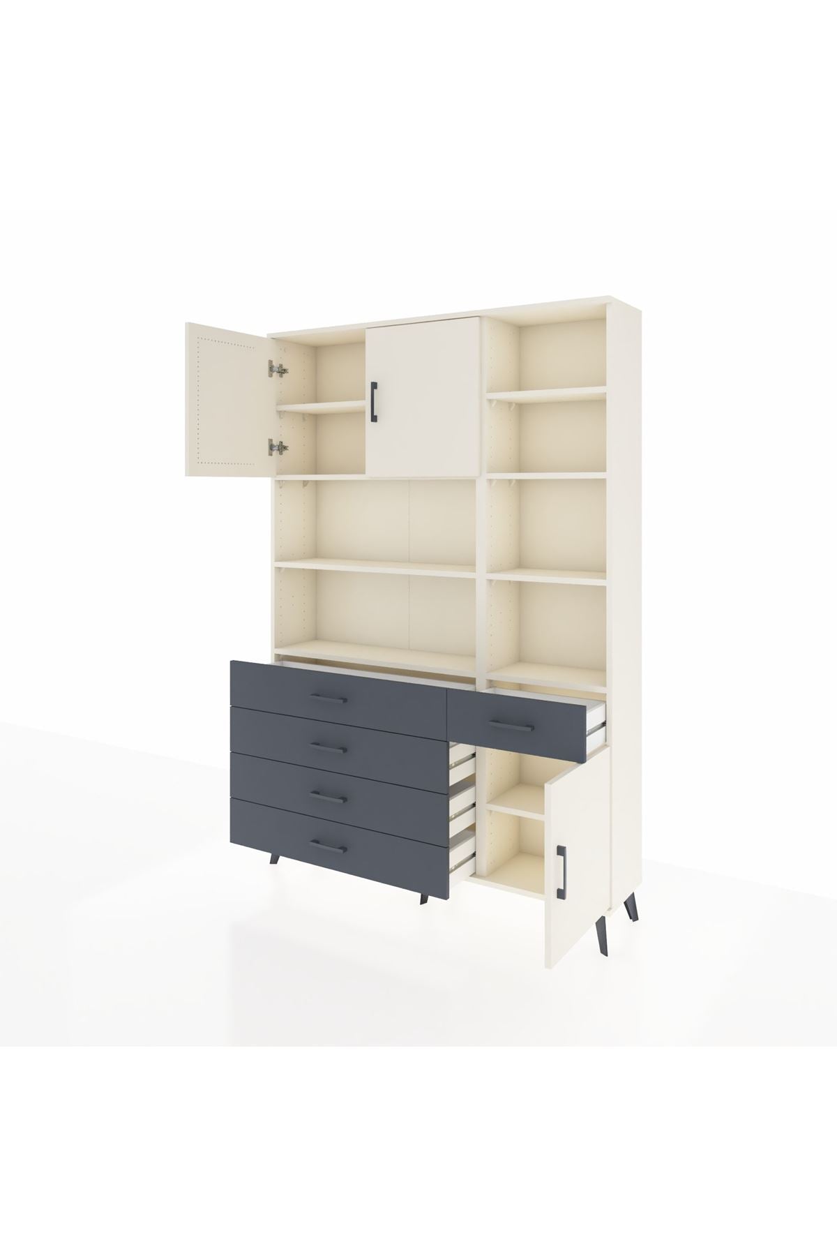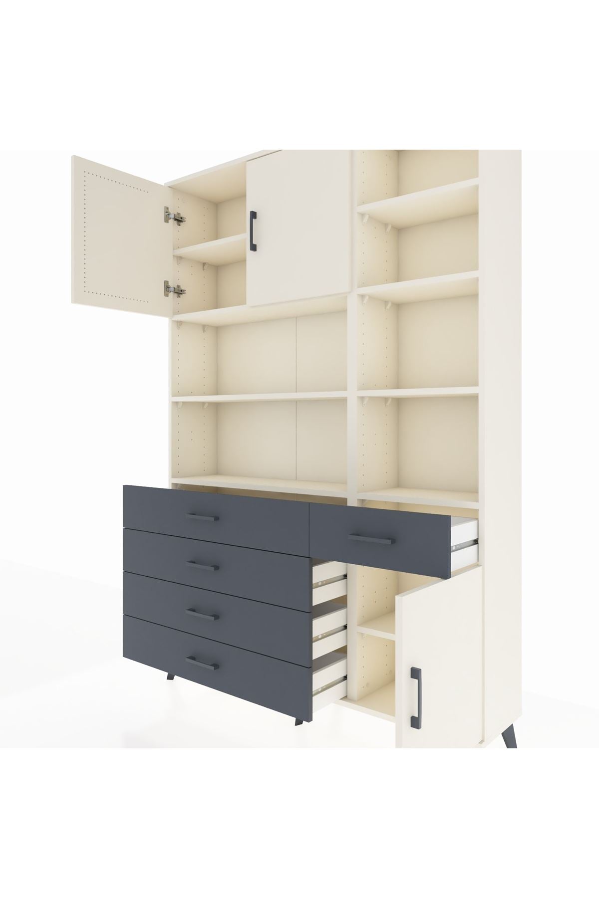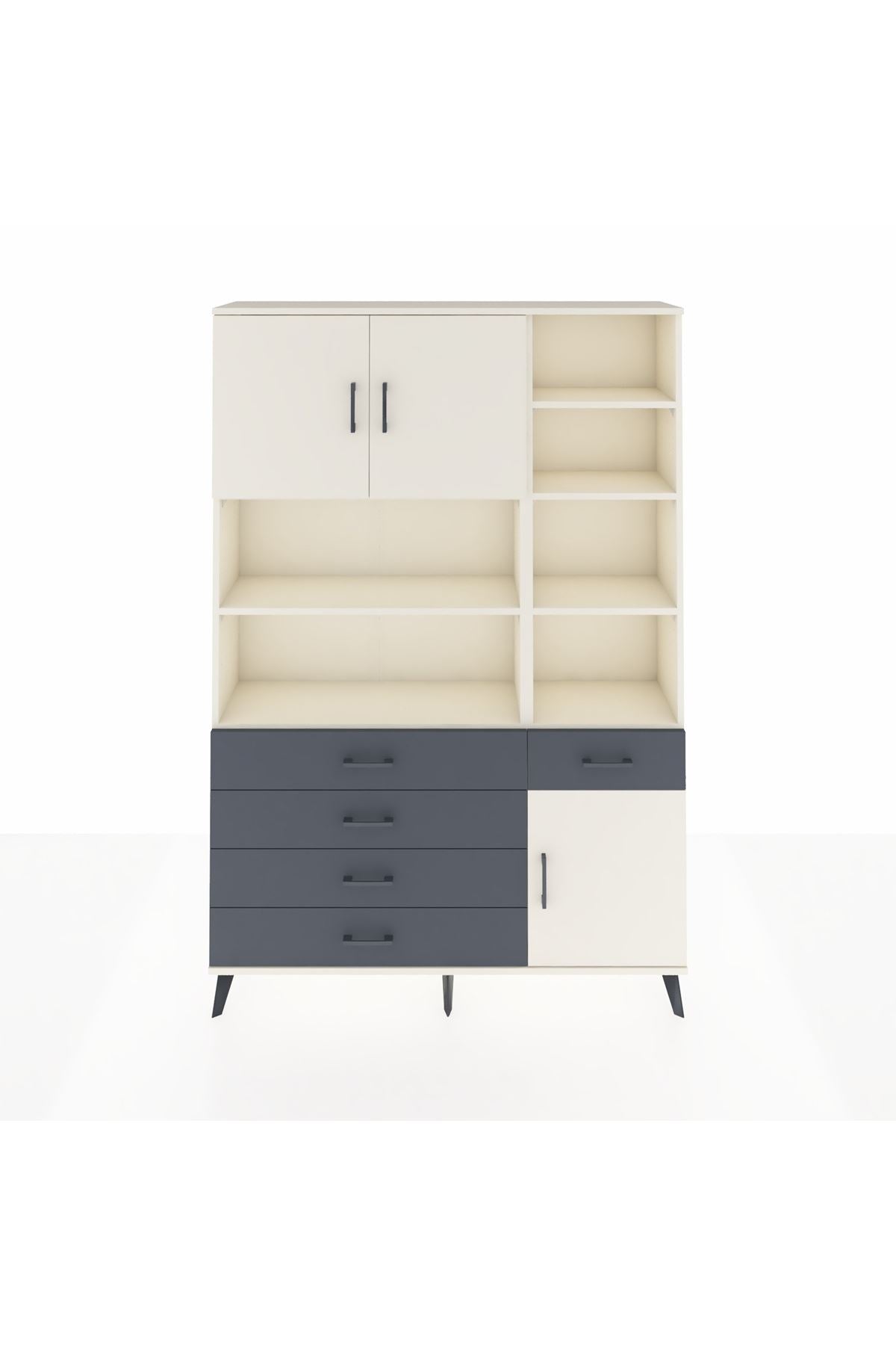Arges Dolap 9 Raflı 5 Çekmeceli 3 Kapaklı 132x30x195 Aytaşı-Aytaşı/Antrasit