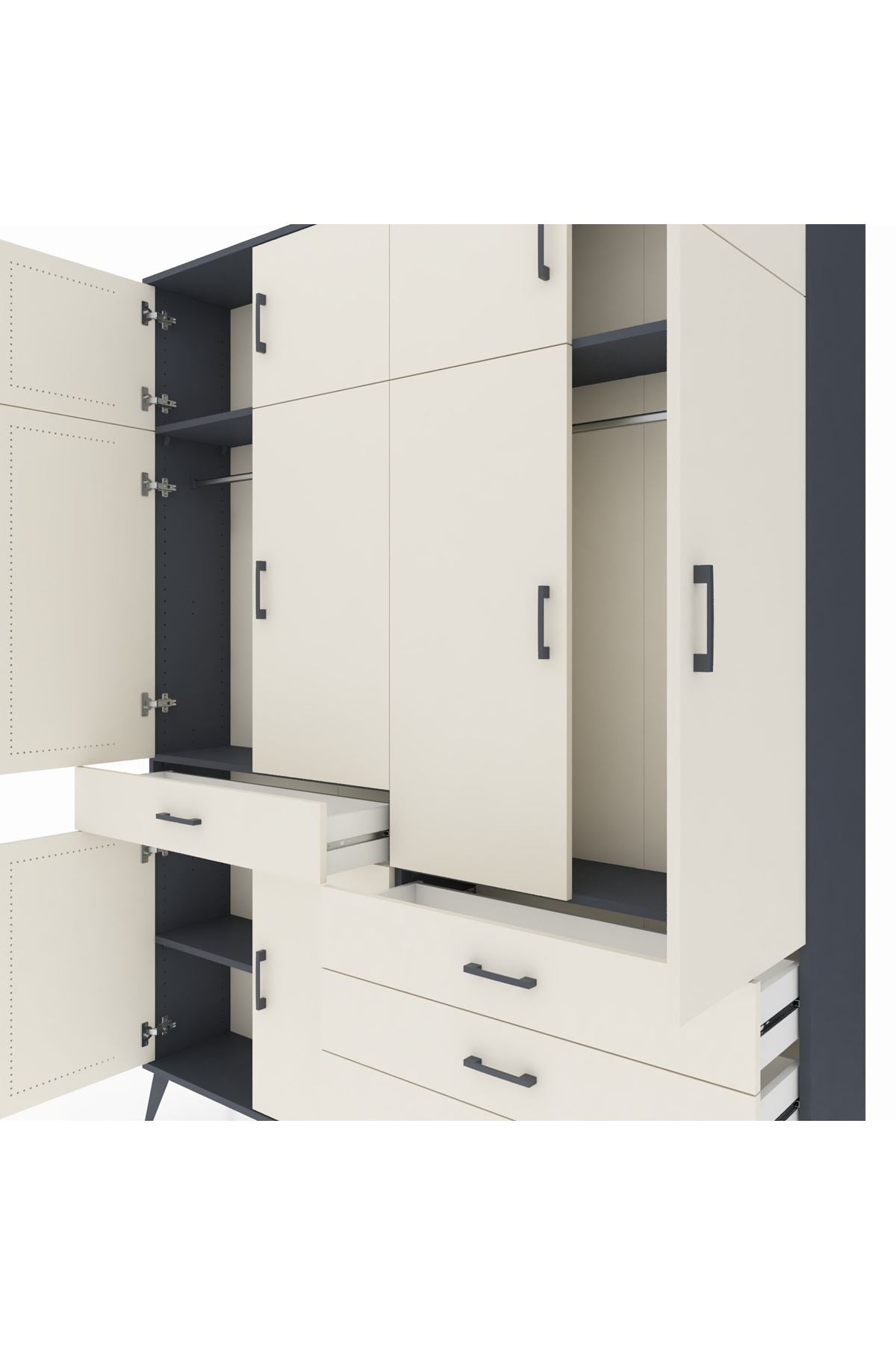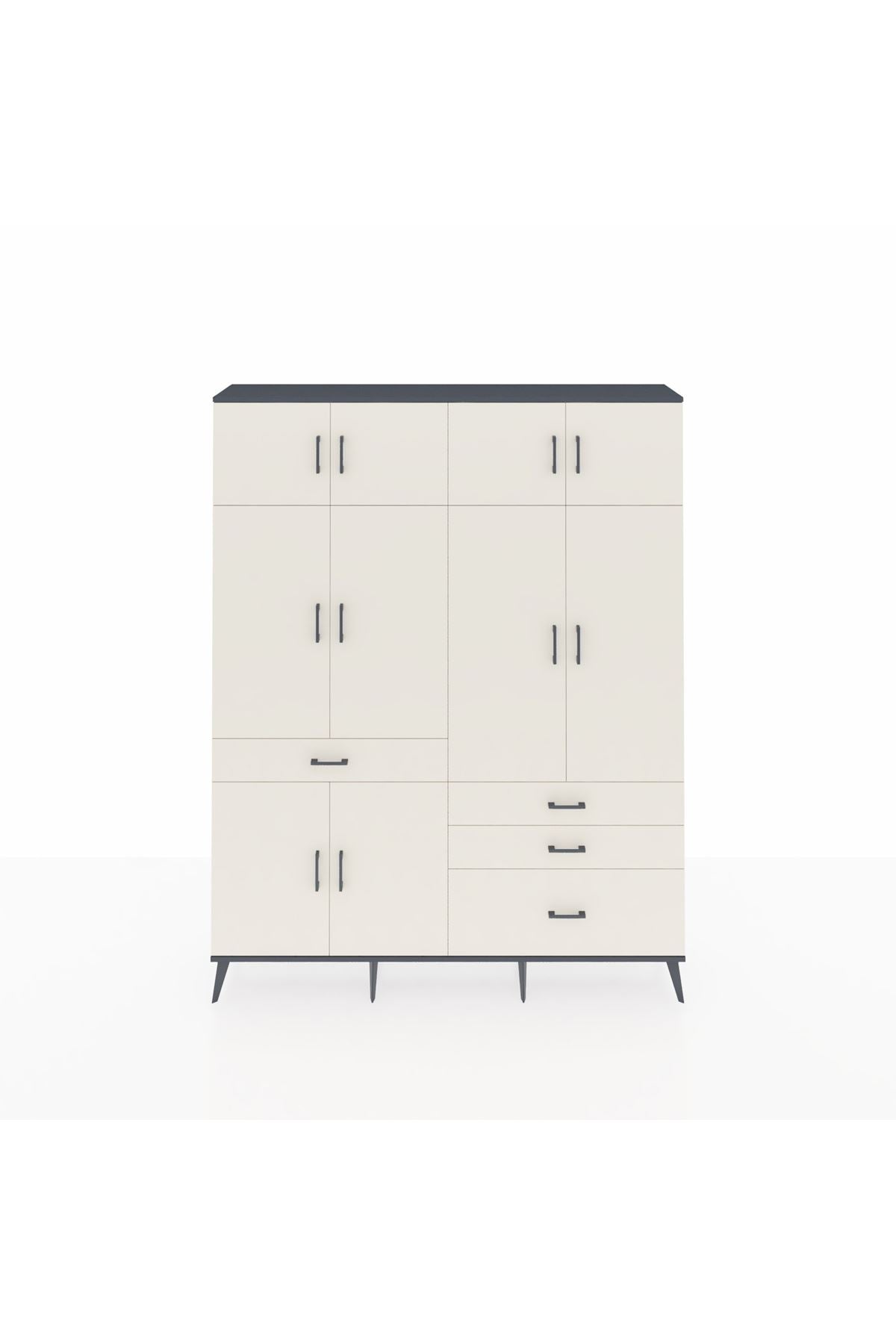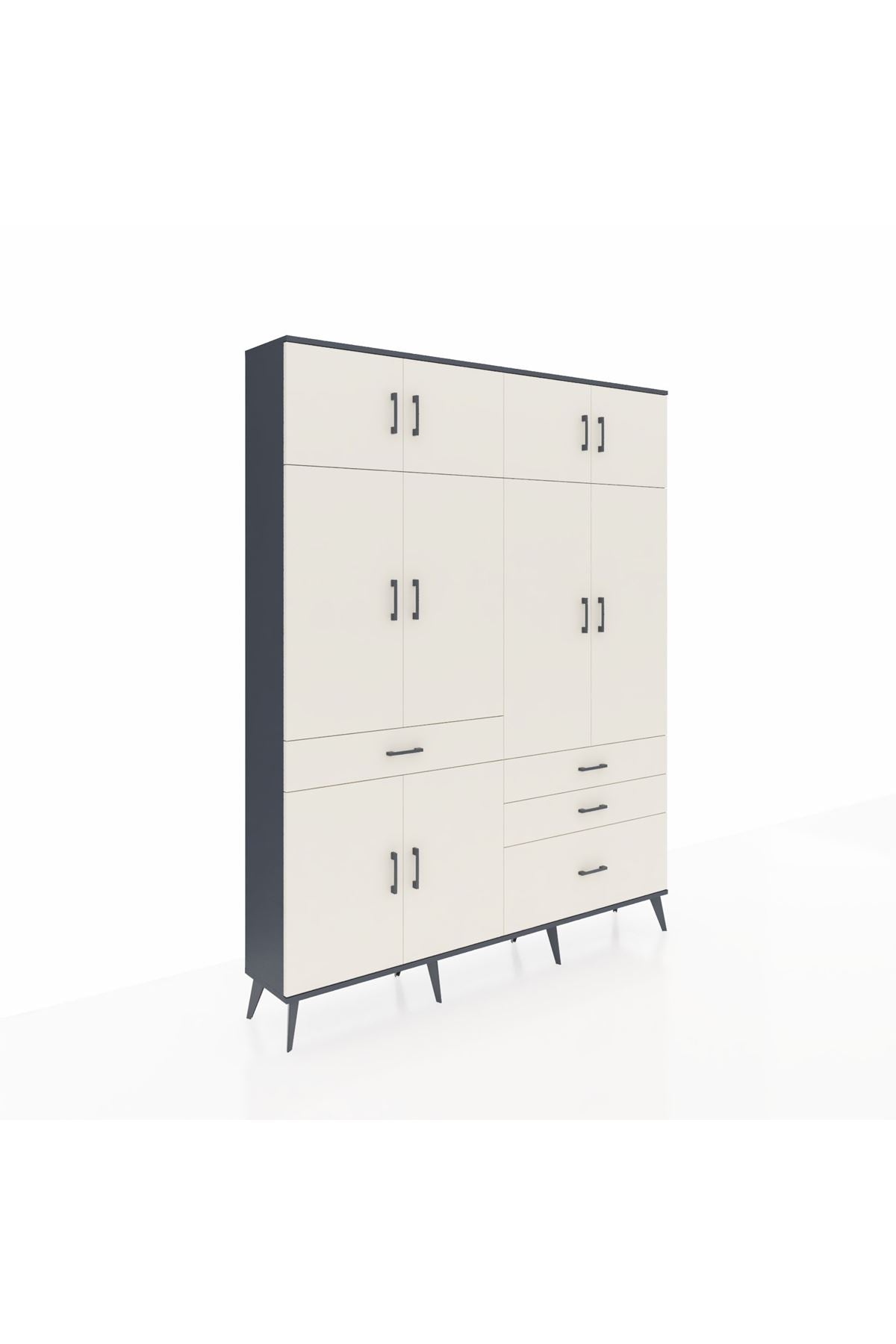 Arges Gardrop: Şık ve kullanışlı gardırop, antrasit ve aytaşı renkleriyle evinize modern bir dokunuş katıyor. 5 raf, 4 çekmece ve 2 askılık ile geniş depolama alanı sunar. Ölçüler: 176x30x221 cm.
