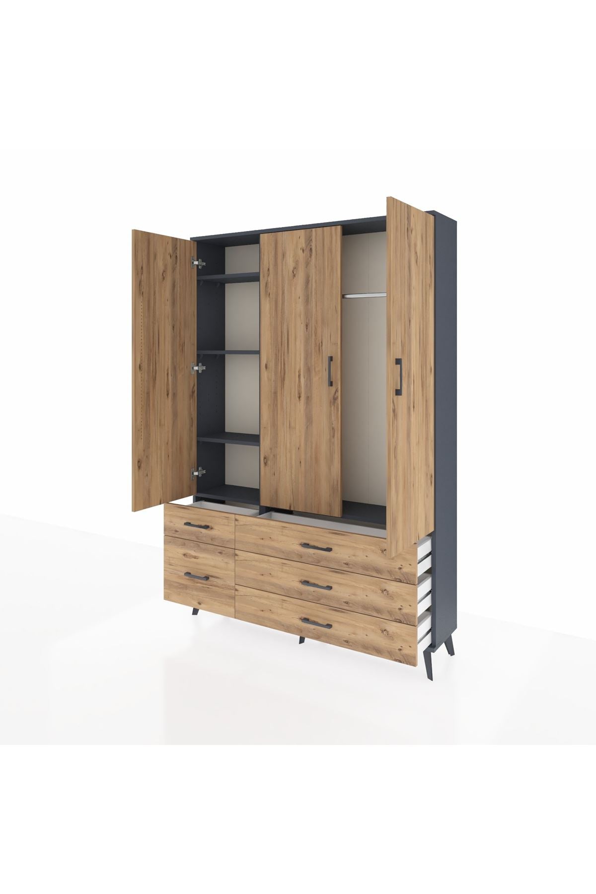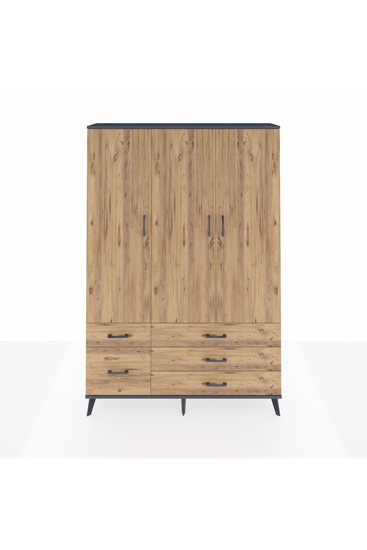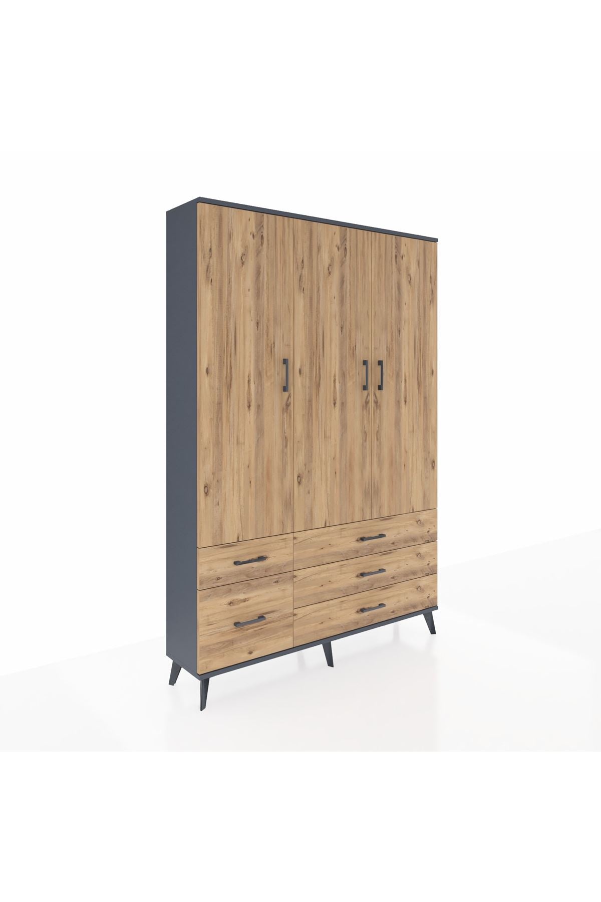 ✨ Arges Gardrop ile evinize düzen ve şıklık katın! Antrasit gövdesi ve Atlas Çam kapaklarıyla modern ve doğal bir görünüm sunan bu gardırop, eşyalarınızı düzenli bir şekilde saklamanız için ideal bir çözüm.