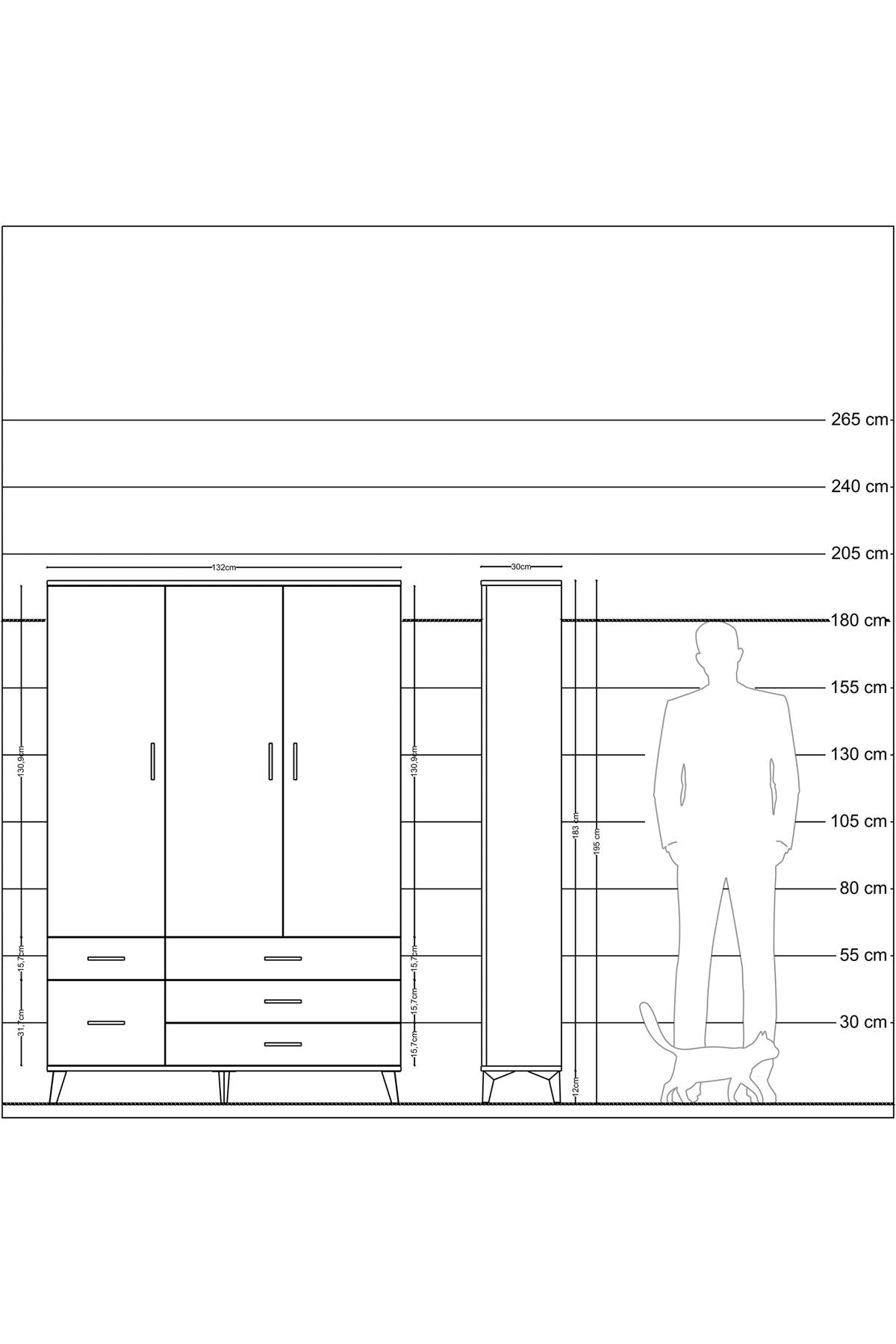 Genişlik: 132 CM – Derinlik: 30 CM – Yükseklik: 195 CM