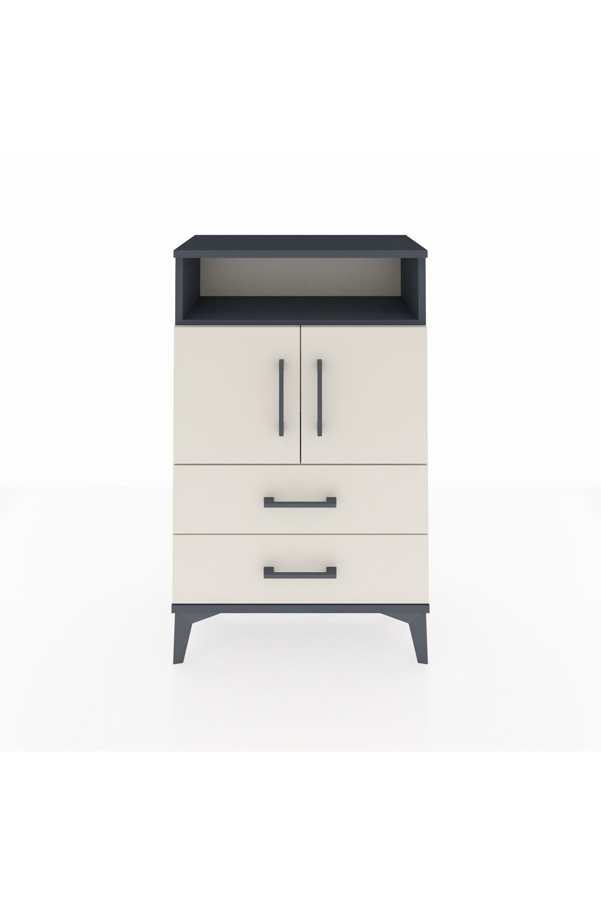 Arges Komodin 2 Raflı 2 Çekmeceli 2 Kapaklı 60x30x96 Antrasit-Aytaşı
