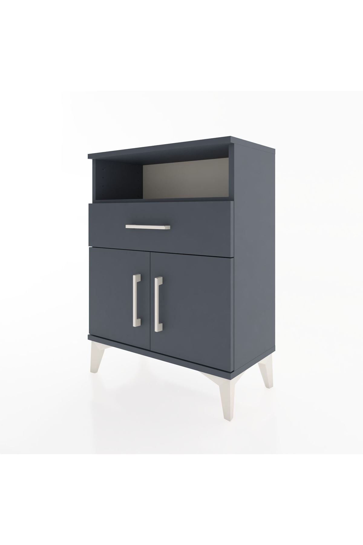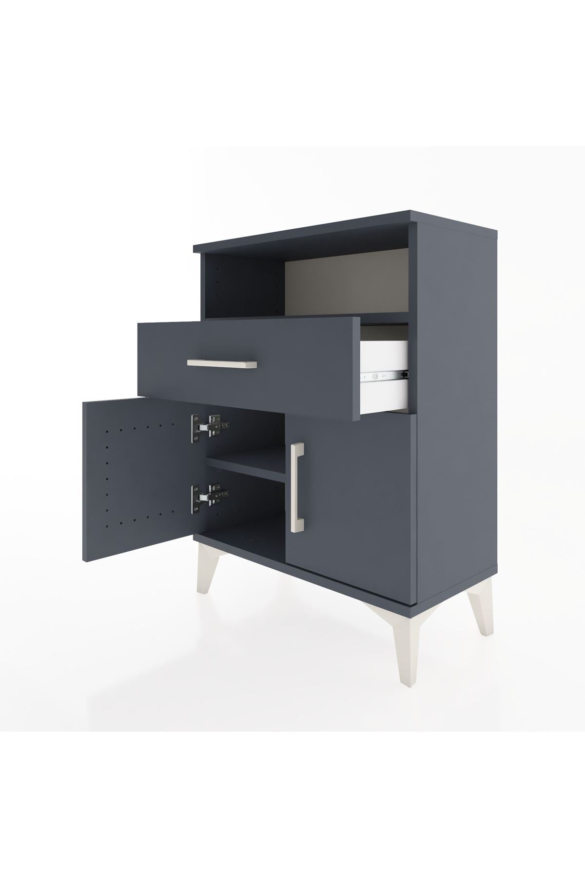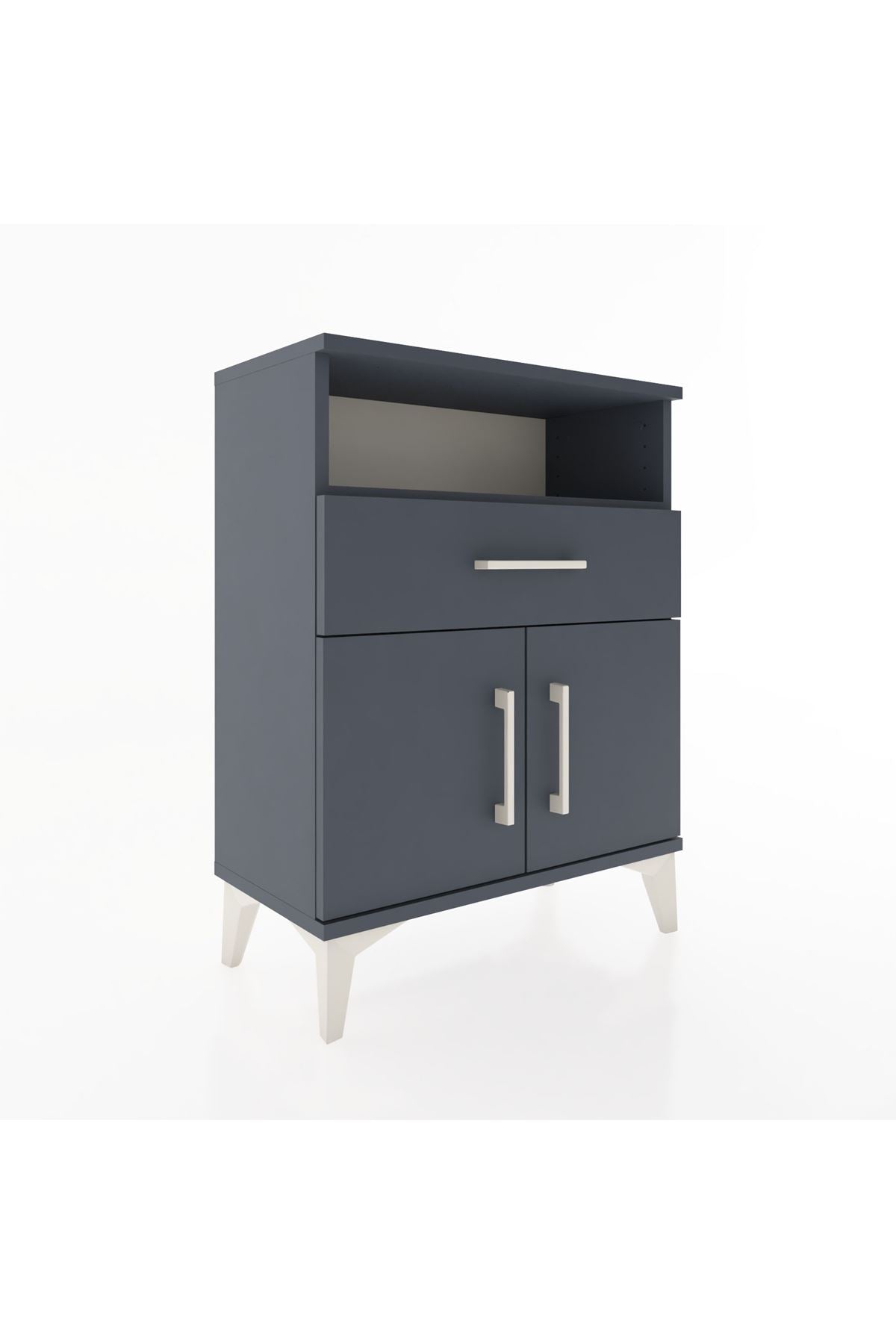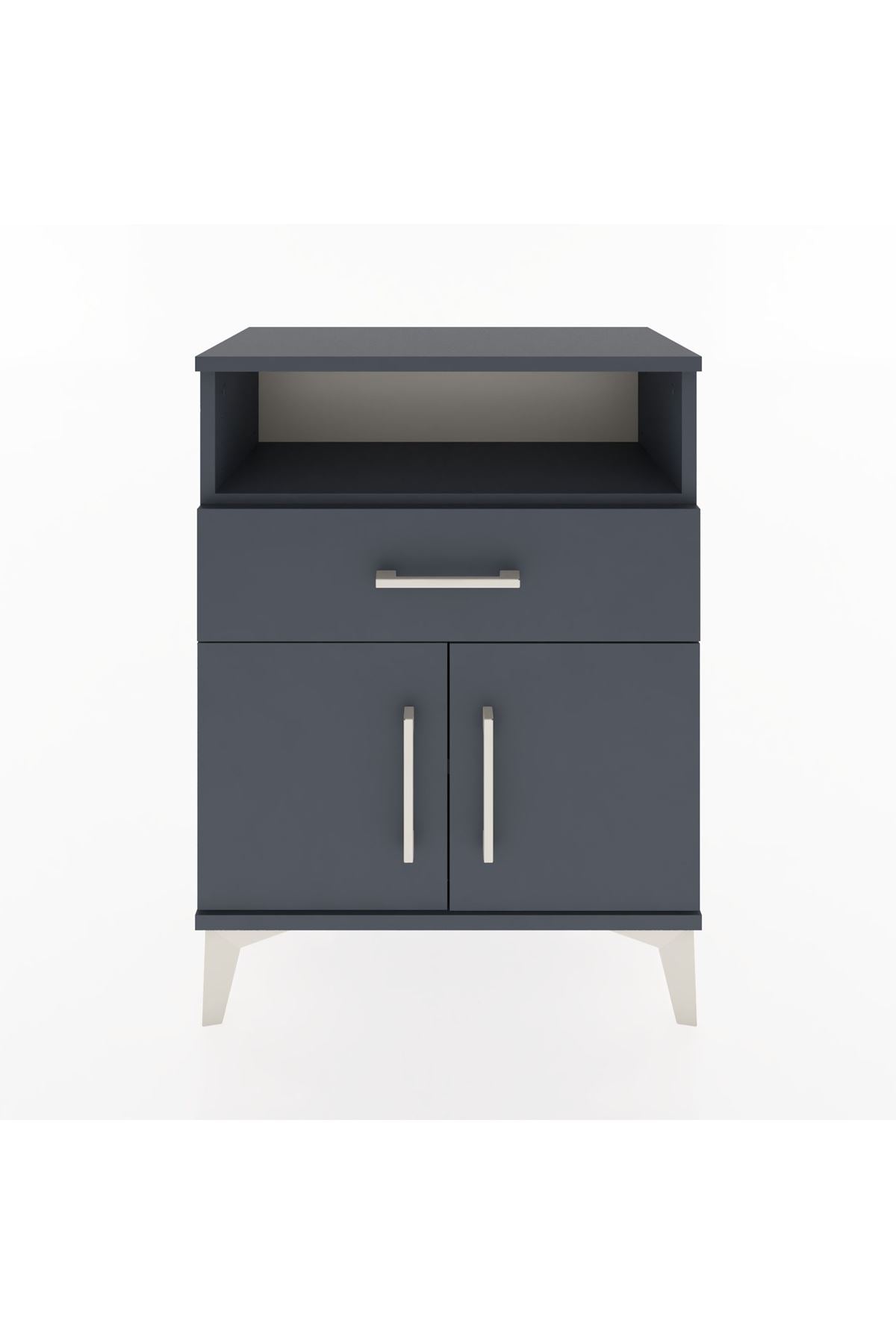 Arges Komodin 2 Raflı Tek Çekmeceli 2 Kapaklı 60x30x80 Antrasit-Antrasit
