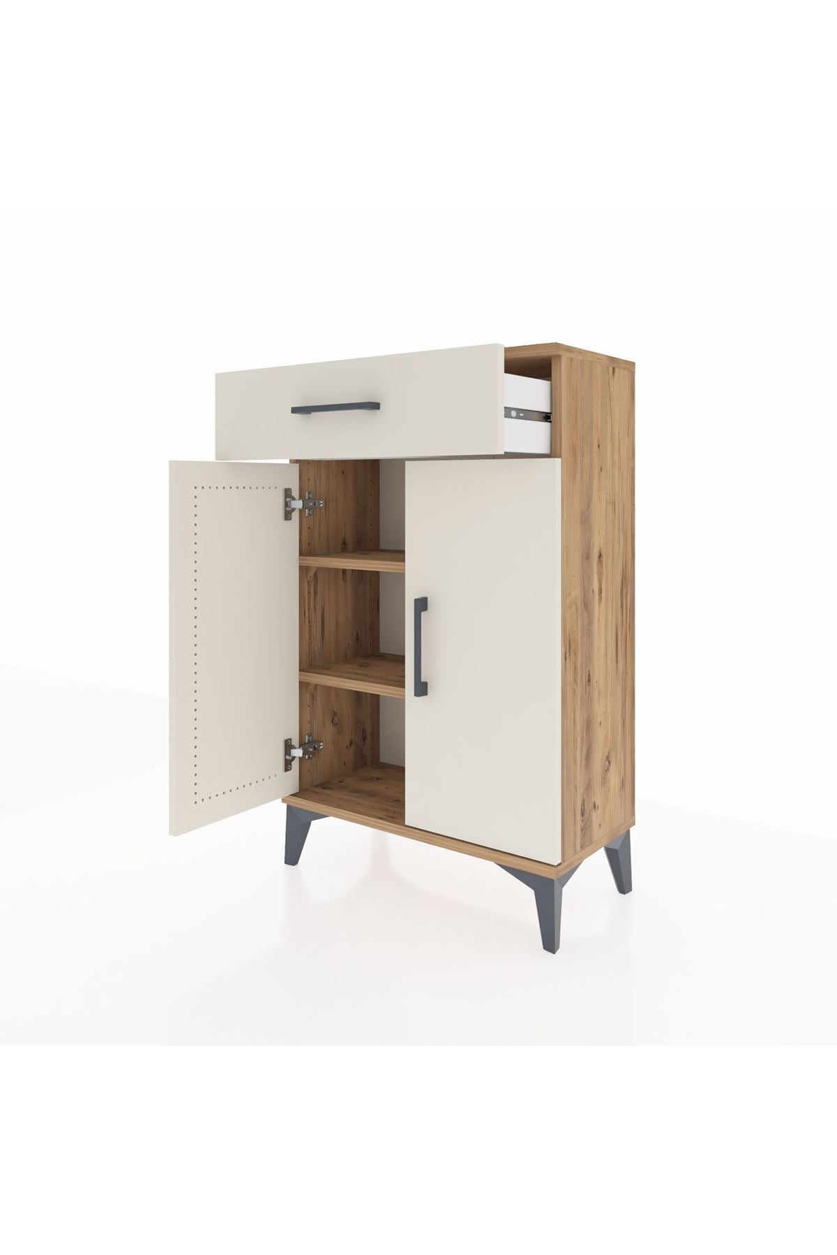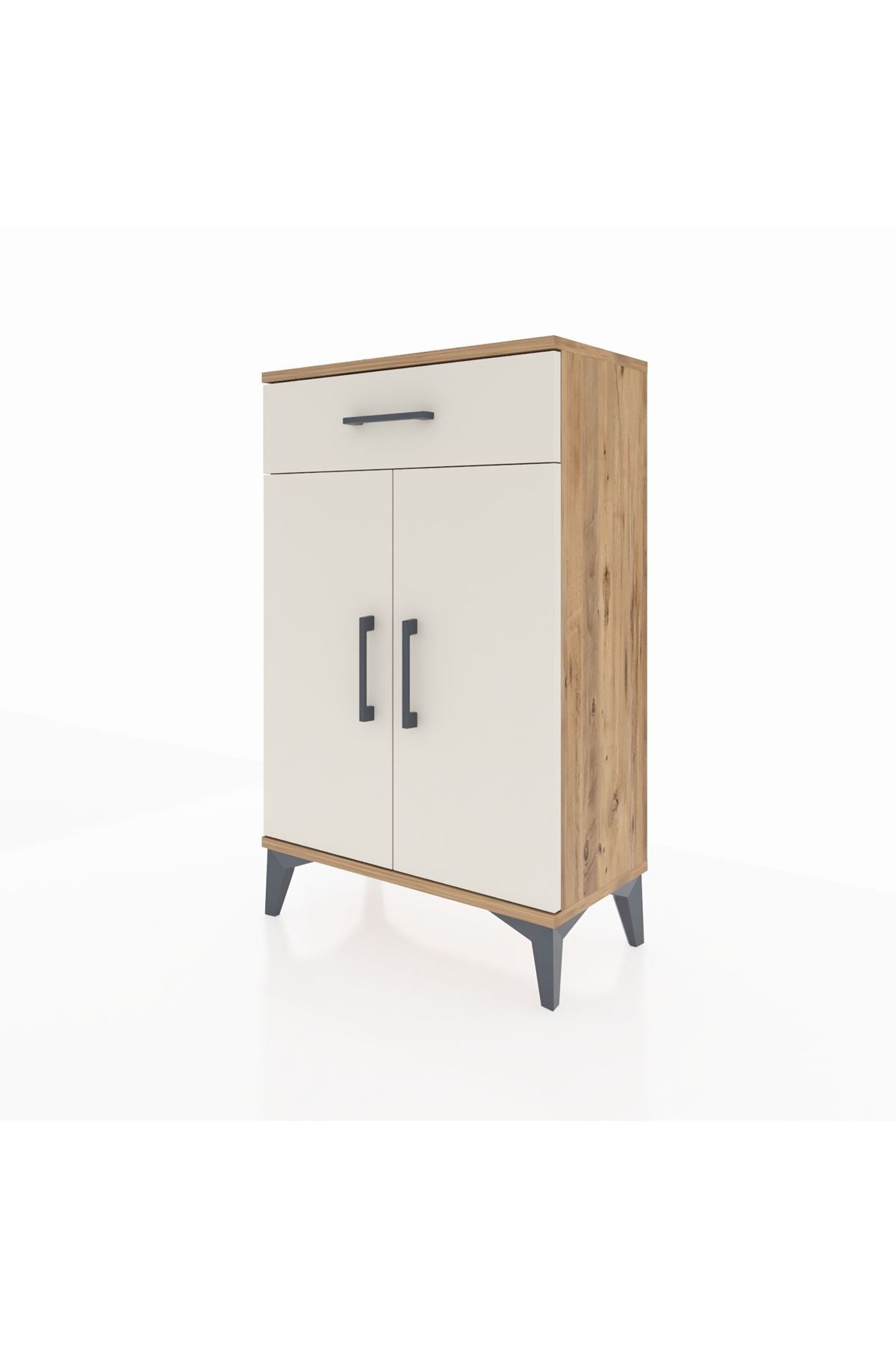 Arges Komodin 2 Raflı Tek Çekmeceli 2 Kapaklı 60x30x96 Çam-Aytaşı