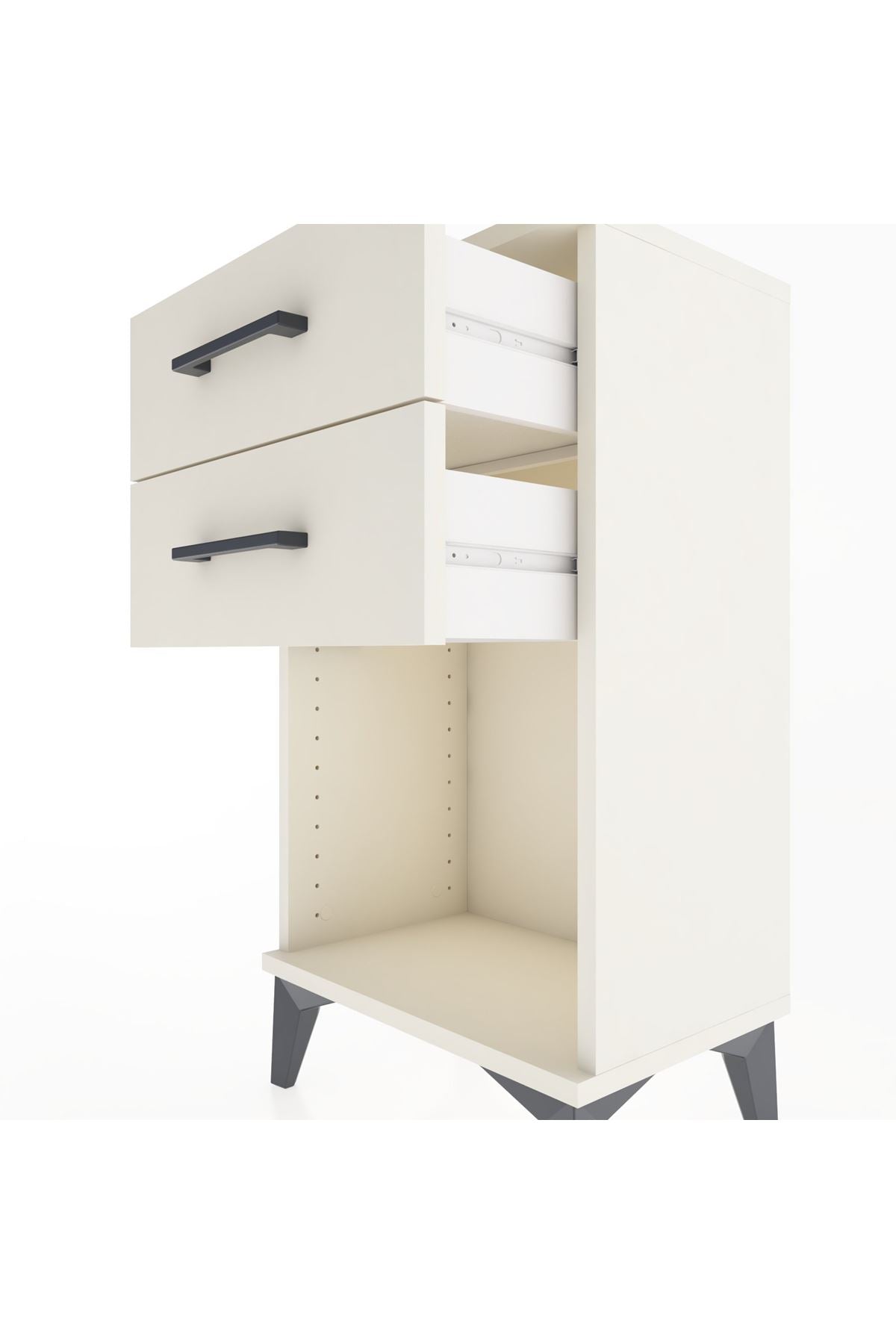 🦾 Metal ayakları sayesinde yerden yüksekliği robot süpürge kullanımına uygundur. Metal kulpları, komodinin şıklığını tamamlarken, dayanıklı yapısı uzun yıllar sorunsuz kullanım imkanı sunar.