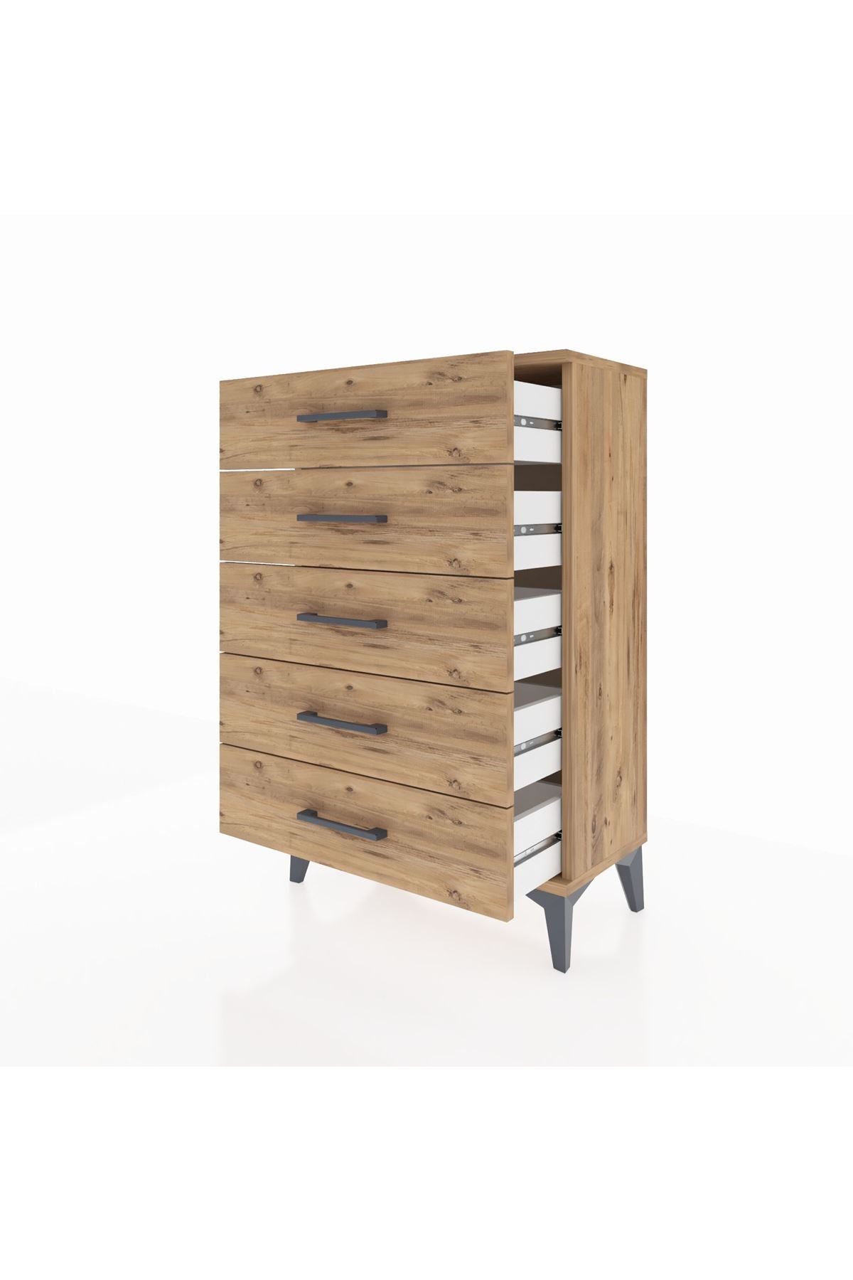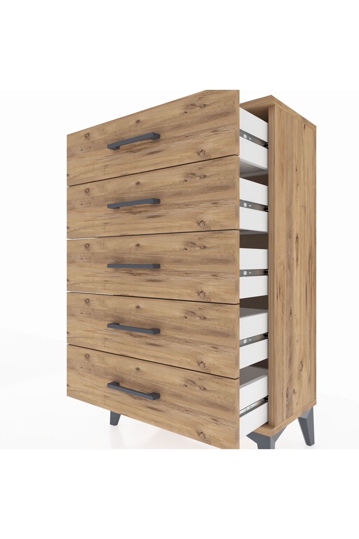 🗄️ 5 adet geniş çekmecesi sayesinde eşyalarınızı düzenli bir şekilde saklayabilirsiniz. Çekmece açılma mesafesi 16,5 cm'dir.