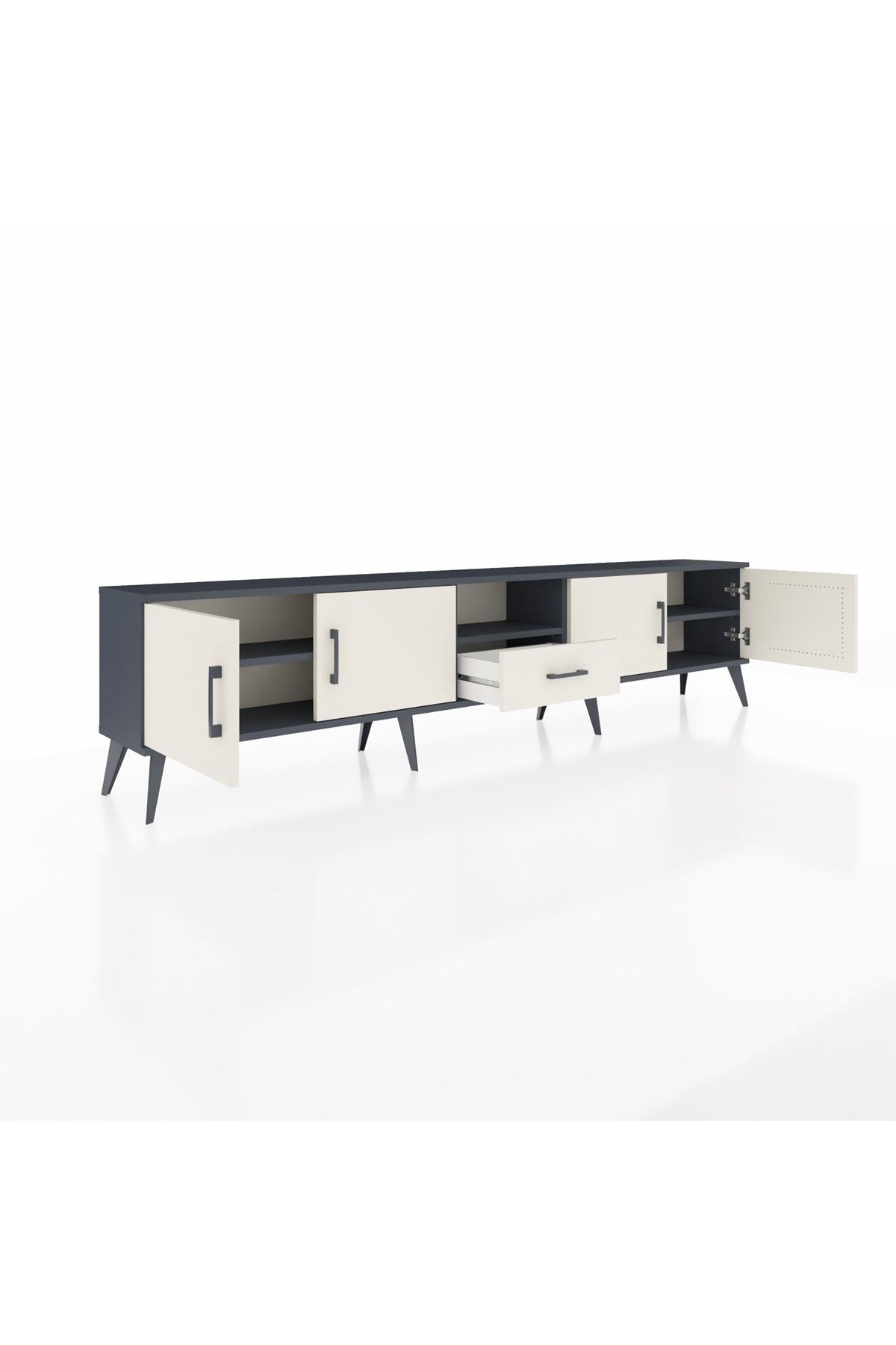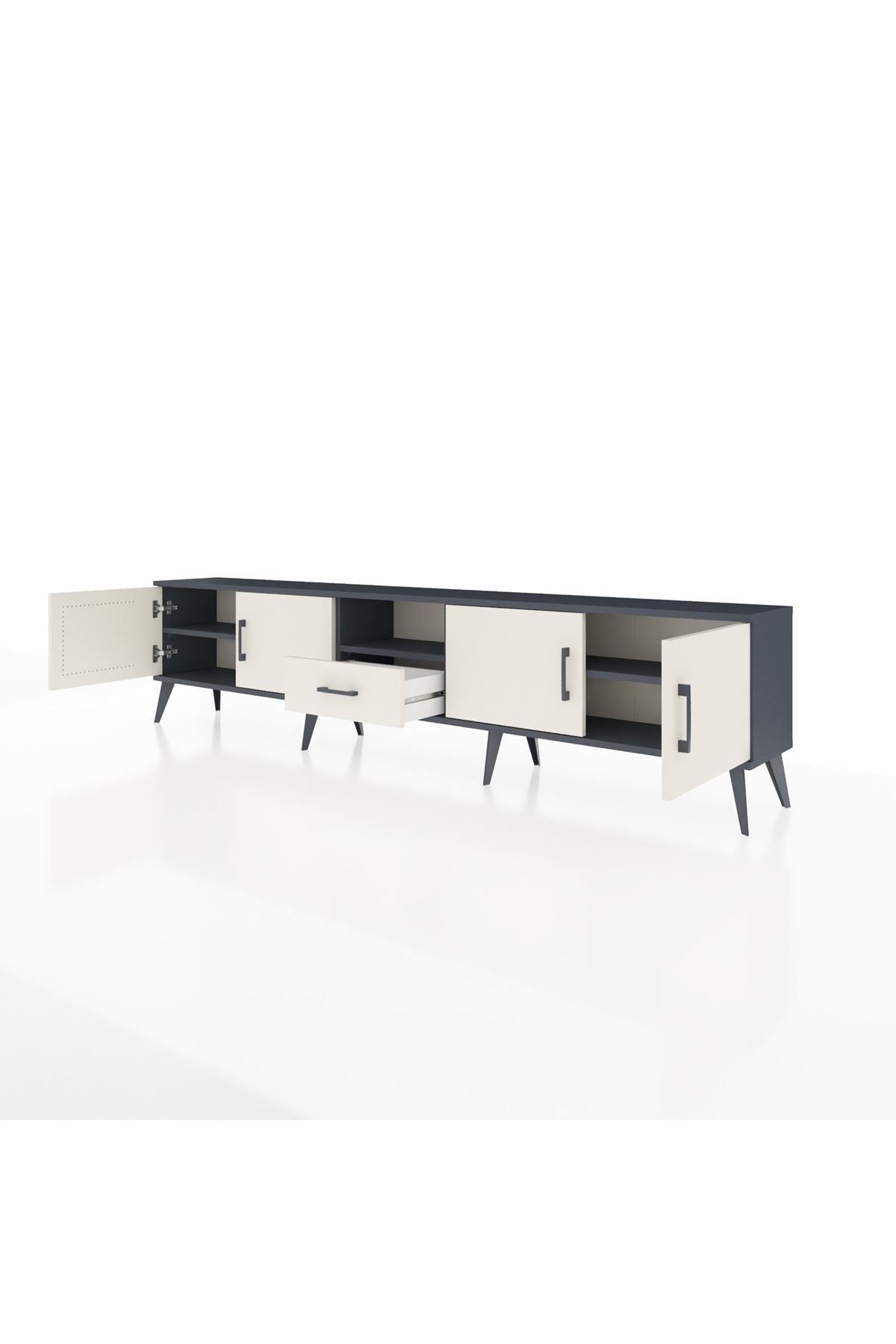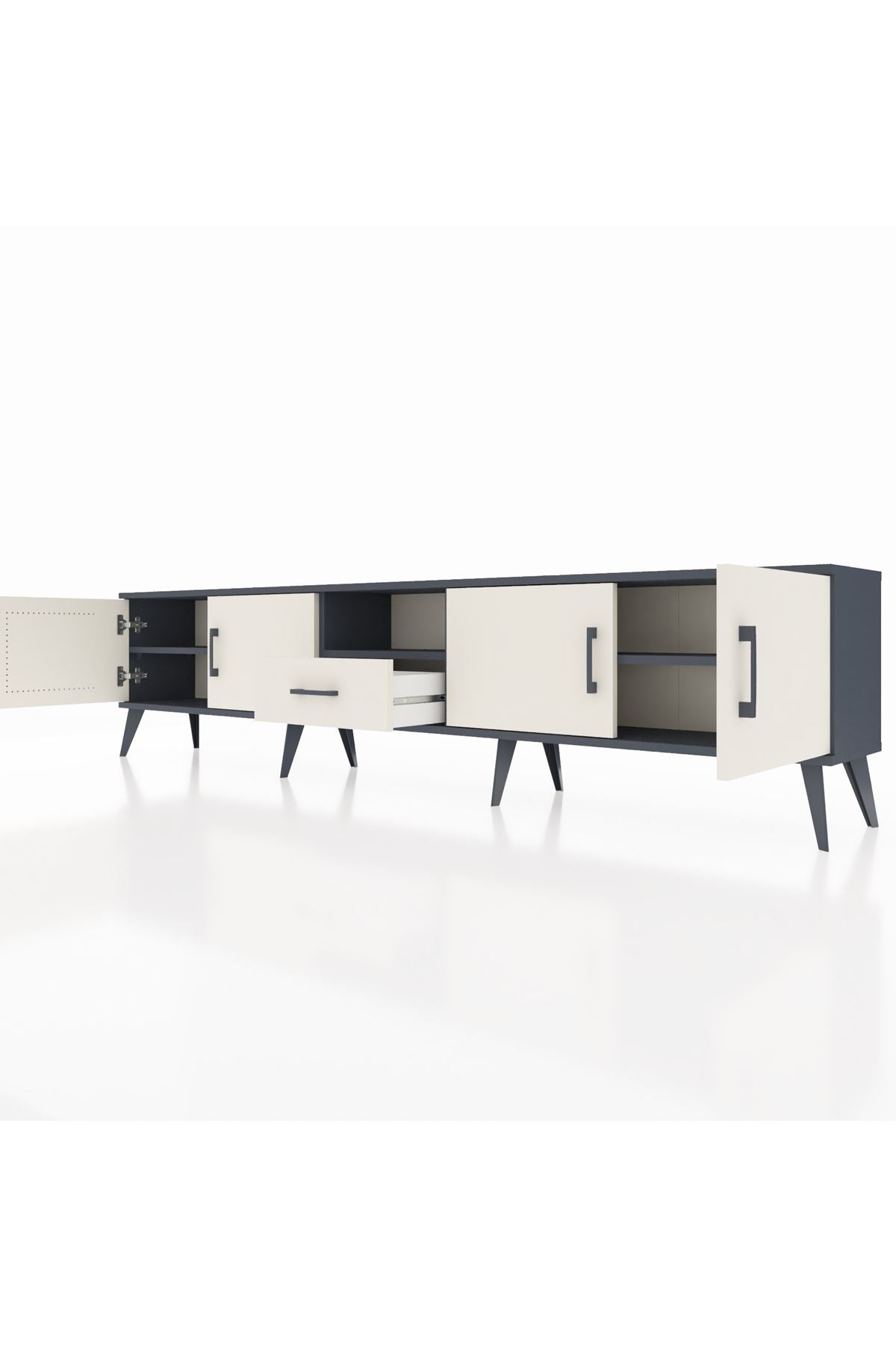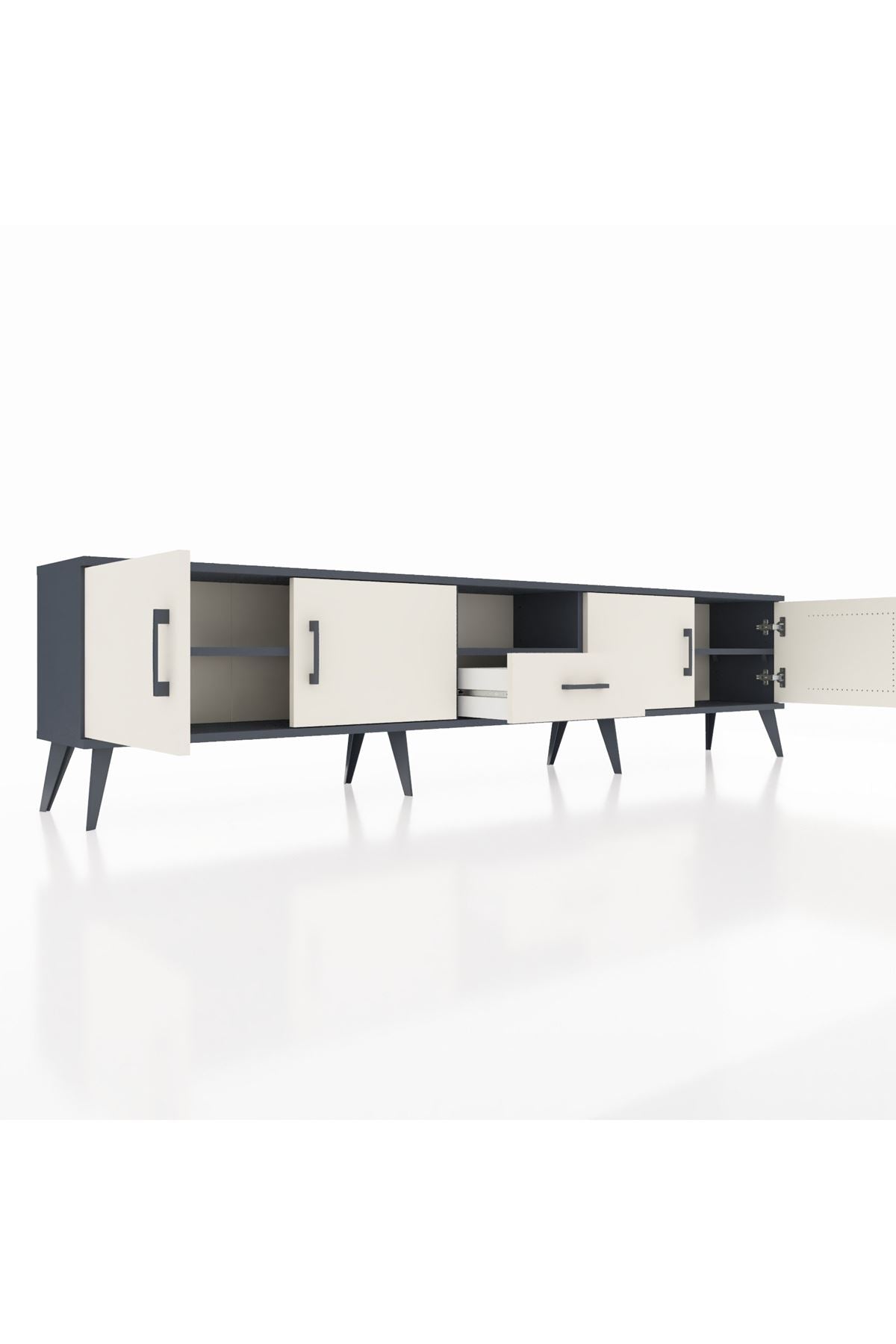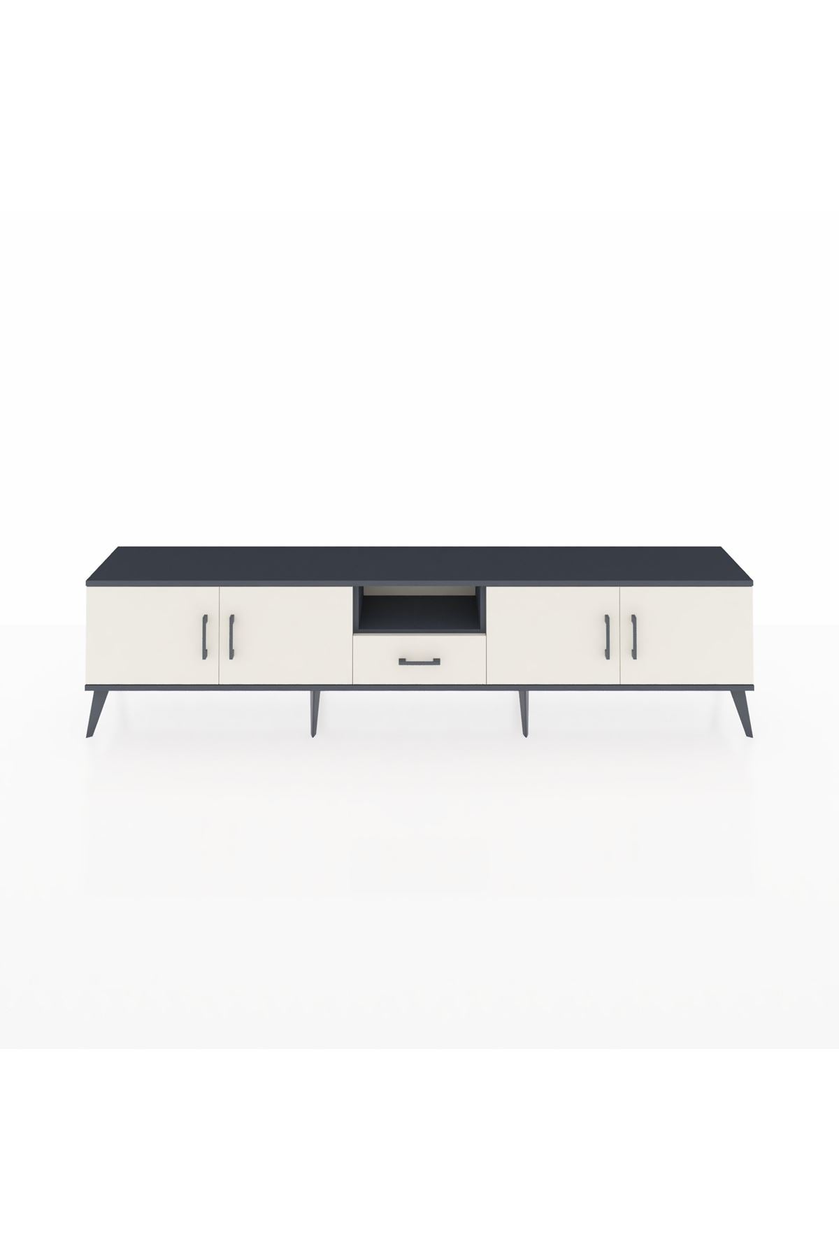 ✨ Salonunuzun yıldızı olmaya aday! Arges TV Ünitesi, antrasit gövdesi ve aytaşı kapaklarıyla modern ve şık bir görünüm sunar. 3 raflı, tek çekmeceli ve 4 kapaklı tasarımıyla hem estetik hem de fonksiyonel bir depolama çözümü.