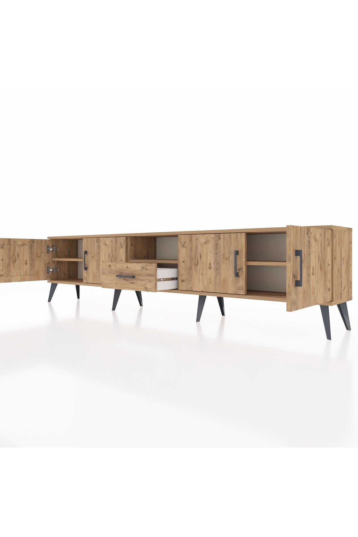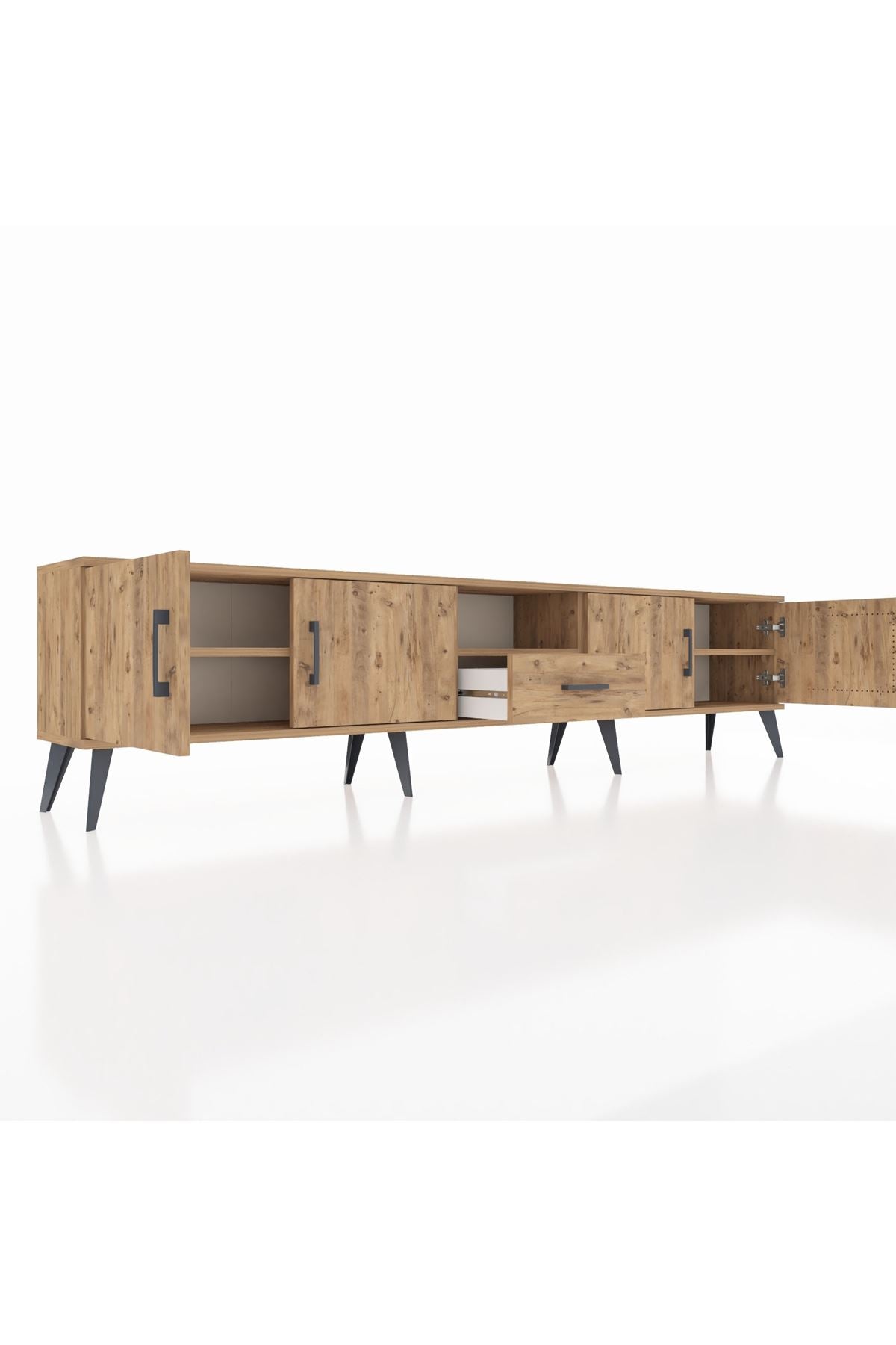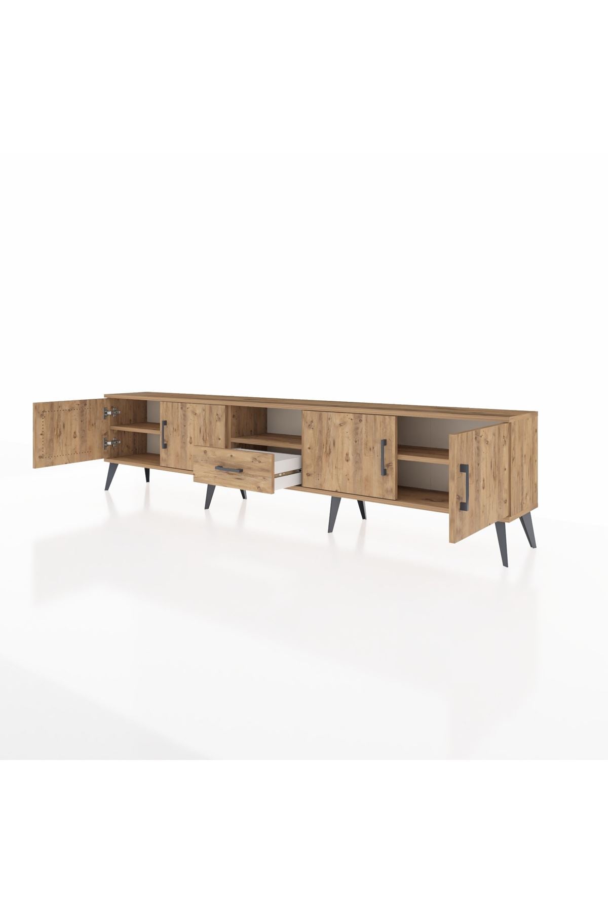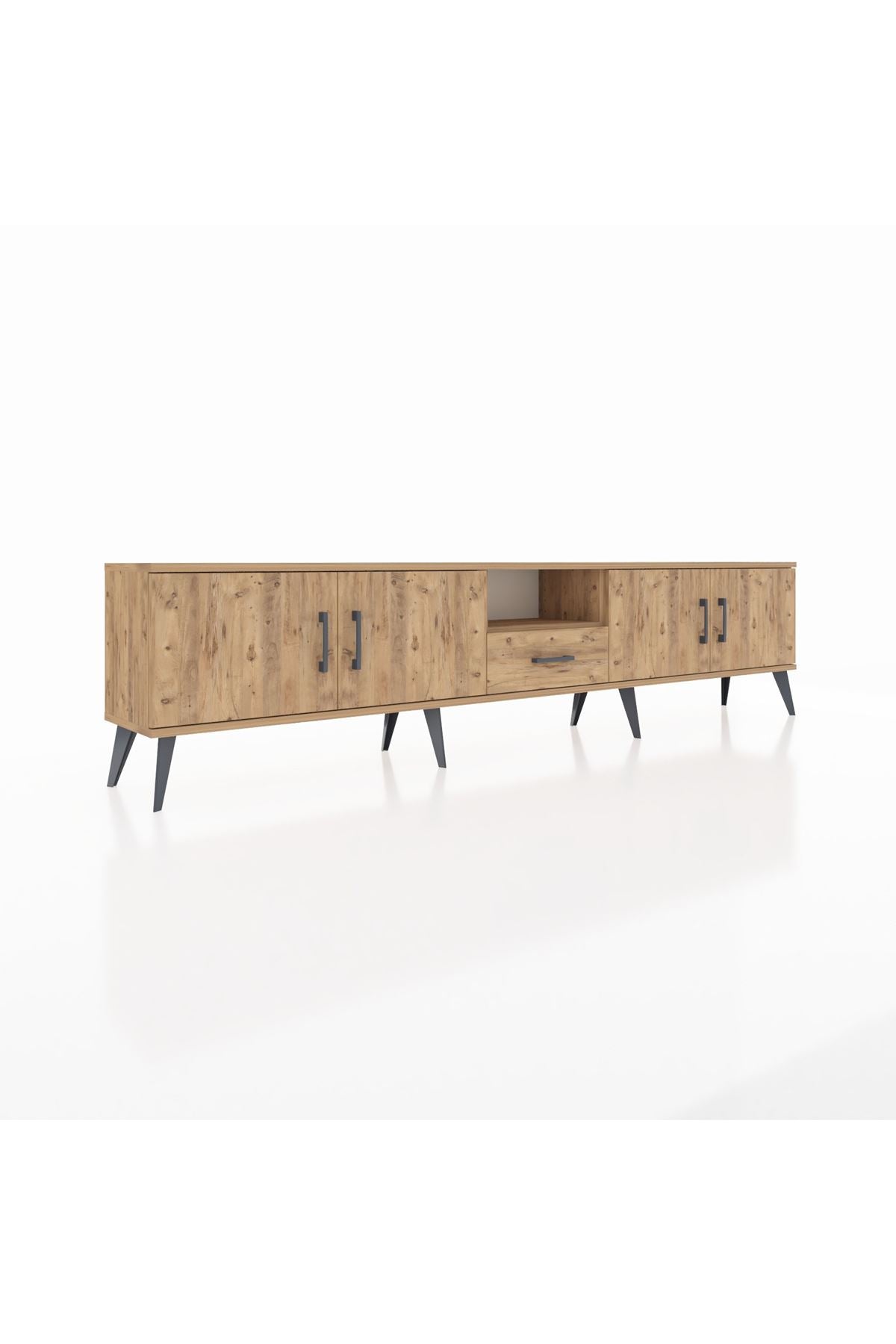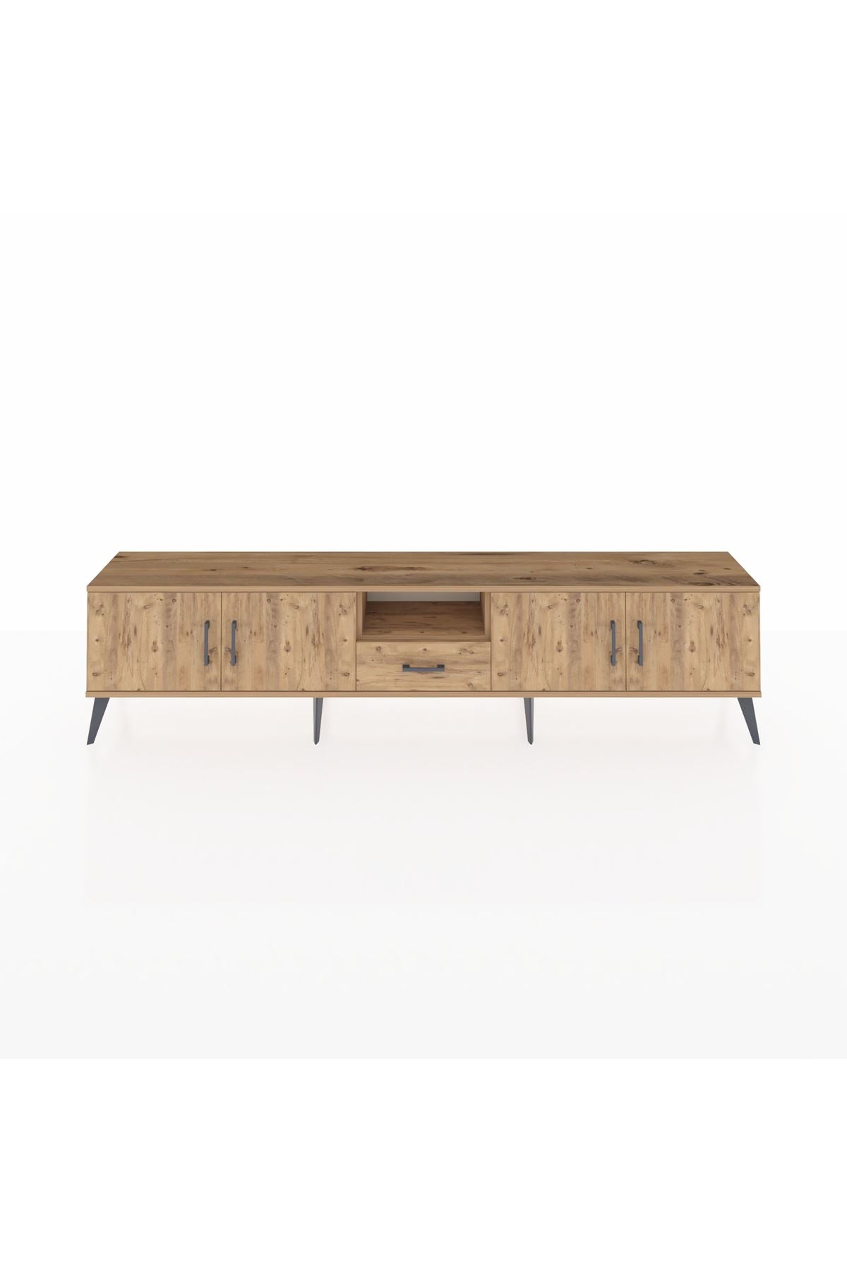 Arges TV Ünitesi 3 Raflı Tek Çekmeceli 4 Kapaklı 220x30x51 Çam-Çam