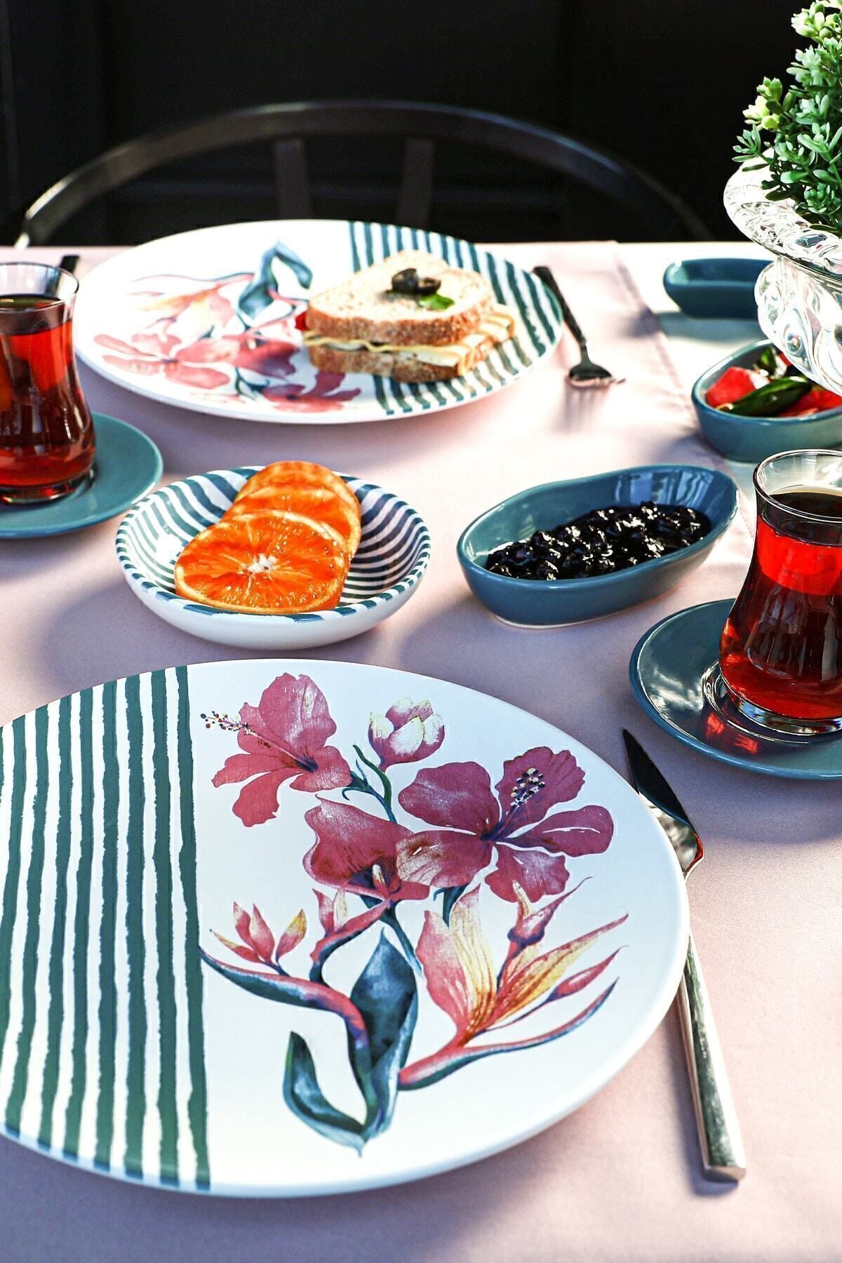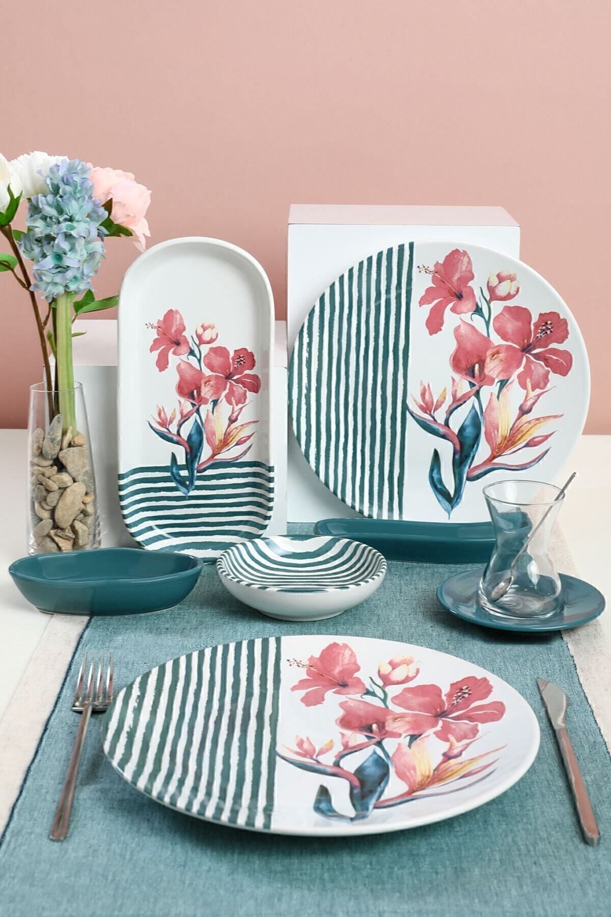 Göz alıcı desenleriyle güne tatlı bir başlangıç yapmanızı sağlayacak keramika 6 kişilik Blue Line kahvaltı takımı özenle üretilmiştir. Kahvaltı saatlerinizin yıldızı olacak bu eşsiz kahvaltı takımı lezzetli sunumlarınıza lezzet katacaktır. Göz alıcı şıklığı ile sevdiklerinize çok özel bir hediye olarak da güzel bir seçim yapabilirsiniz.
