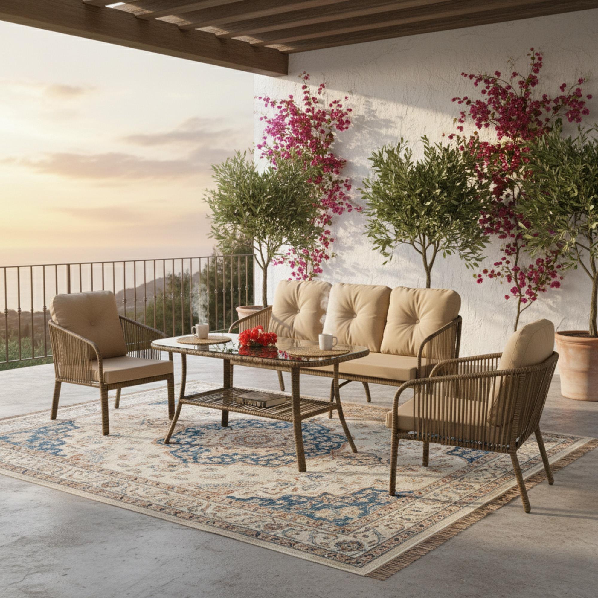 Kahve rengi ile her dekorasyona mükemmel uyum sağlayan bu bahçe mobilyası, uzun ömürlü kullanım sunan dış mekan mobilyası kategorisindedir. Beş kişilik konforlu oturma alanı ile sevdiklerinizle keyifli anlar geçirmenizi sağlar. Balkon mobilyası olarak da şıklığı ve sağlamlığıyla dikkat çeken bu takım, küçük alanlar için pratik ve fonksiyonel bir çözüm sunar.