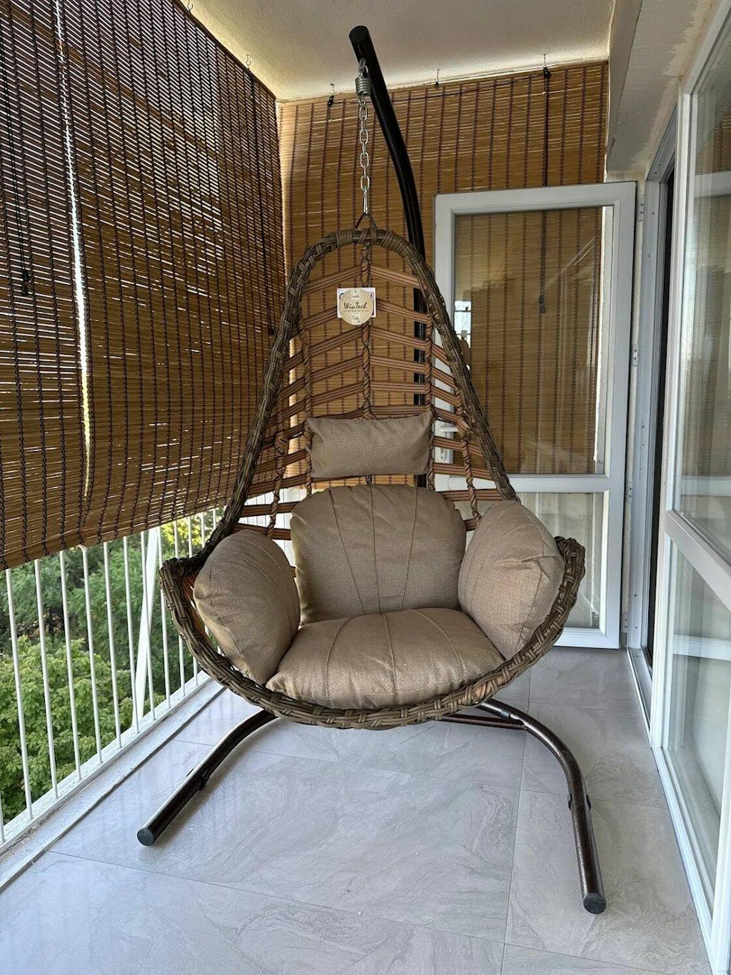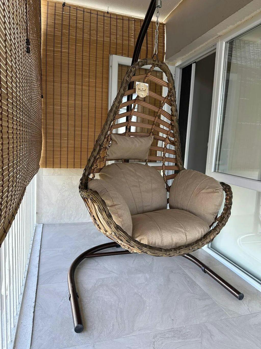 Malzeme: Rattan Salıncak Sepeti, Su Kaydırıcı Kumaş Minder, Zincirli Çelik Askı,