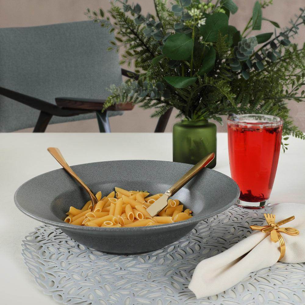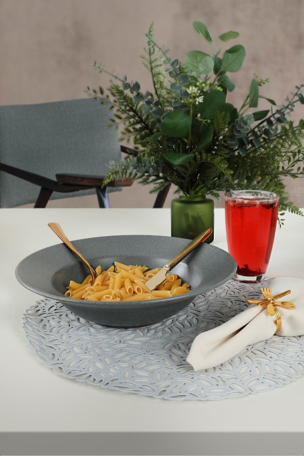 Hem gelenekselliği hem de modernliği sembolize eden keramika 1 adet delta Taş Mat Gri makarna tabağı, makarnanızı farklı bir boyuta taşıyacaktır. Makarna hem yapımının kolay olması hem de çok tercih edilmesi sebebiyle hemen hemen her mutfakta bu tabakların olması gerekir. Misafirler bu sunumda bir makarnayı farklı bularak sunumunuzu beğeneceğinden dolayı onlar için de güzel bir hediye olacaktır.