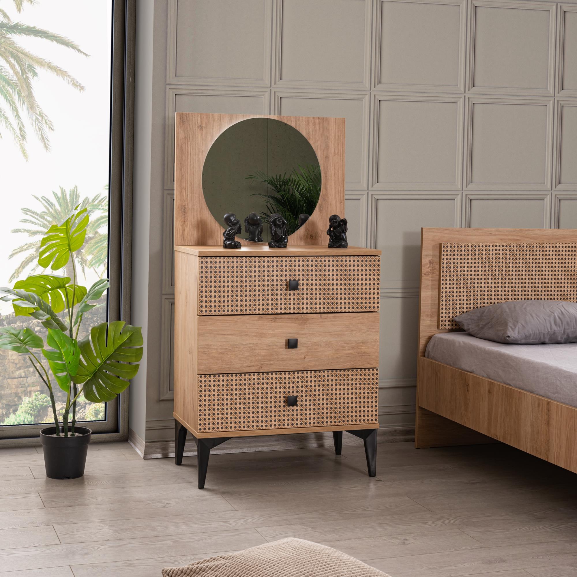 - Şifonyer & Ayna Ölçüsü: Genişlik 68 cm x Yükseklik 134 cm x Derinlik 40 cm