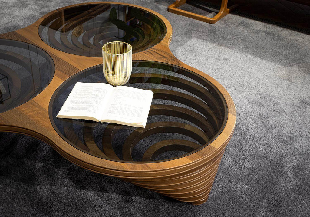 Tasarım : MDF malzeme üzerine oymalı işlenmiş gövdesi ürüne karakter katarken, üst cam tabladan vuran ışıkla birlikte zeminde oluşan gölge ortamda hoş bir atmosfer oluşturmaktadır. MDF malzeme üzerindeki özel işlemler, sehpa yüzeyindeki detaylı harelerle zenginleştirilir, bu da ürüne benzersiz bir dokunuş sağlar.