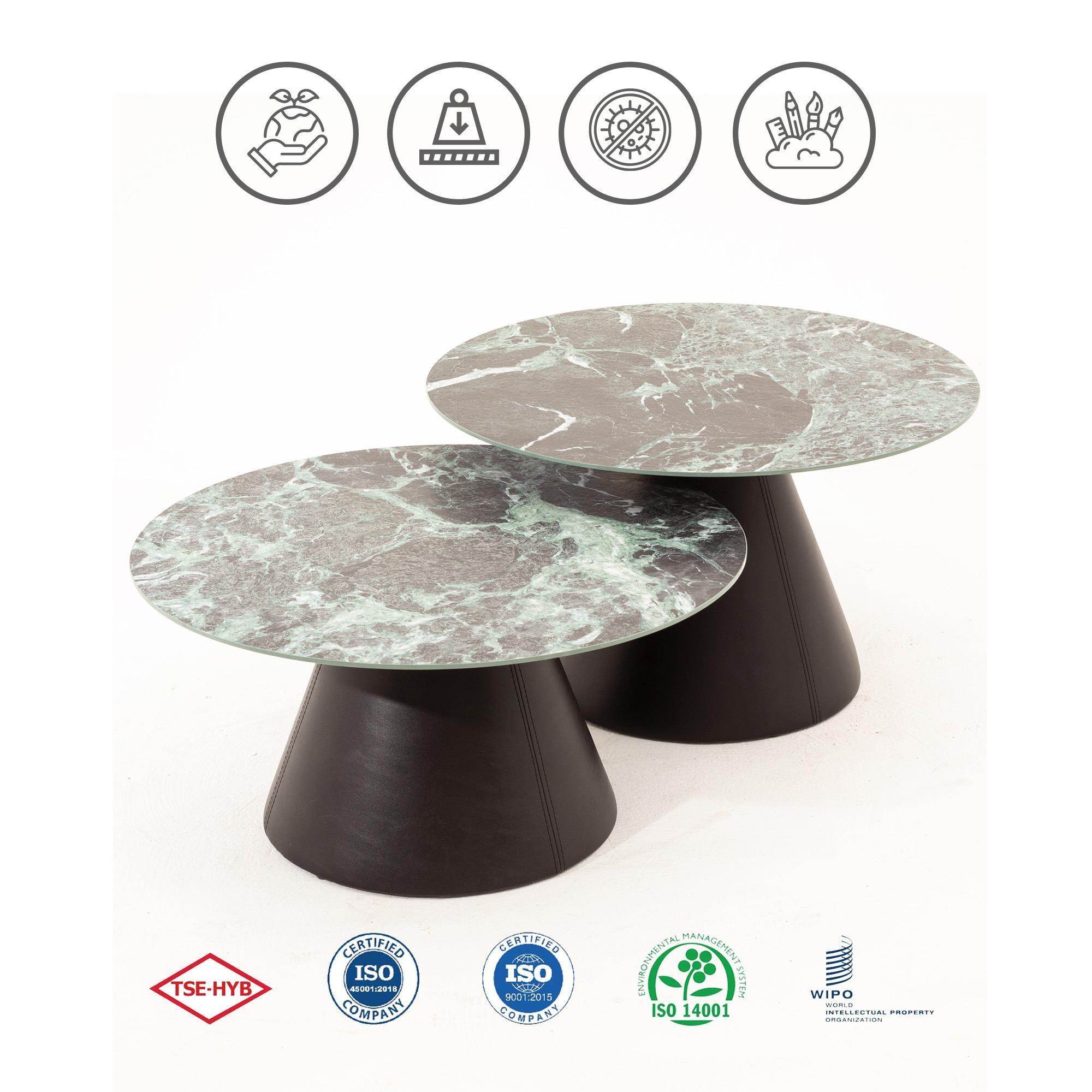 Özel Tasarım: Ev dekorasyonunuzda doğal bir dokunuş arıyorsanız, Galya Orta Sehpa tam size göre! Bu zarif orta sehpa, modern tasarımıyla dikkat çekerken, mantar formundaki tasarımıyla odanıza sıcaklık katıyor. Porselen üst tablası ve siyah gövdesinin uyumu ile, evinizin her köşesine benzersiz bir uyum katar.