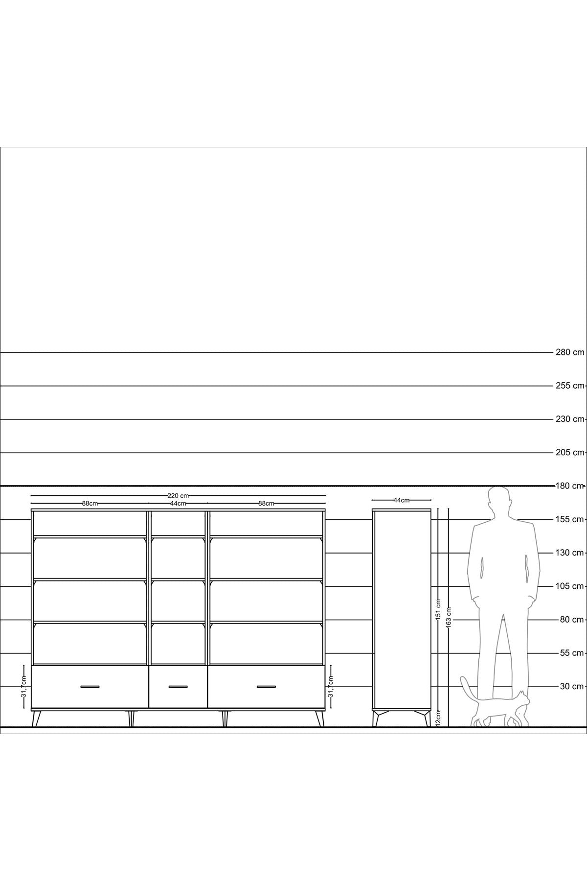 Genişlik: 220 CM – Derinlik: 44 CM – Yükseklik: 163 CM
