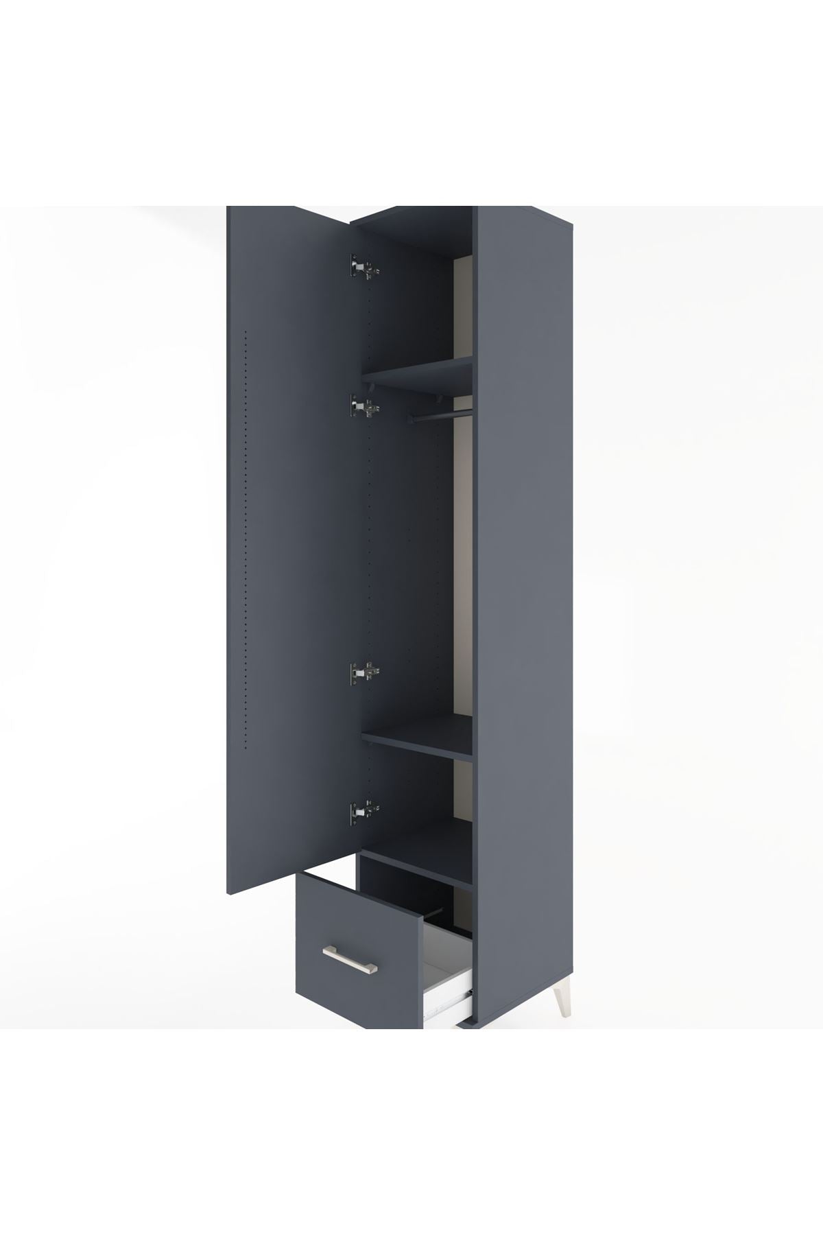 Hyperion Dolap 3 Raflı Tek Çekmeceli Tek Askılı 44x44x221 Antrasit-Antrasit