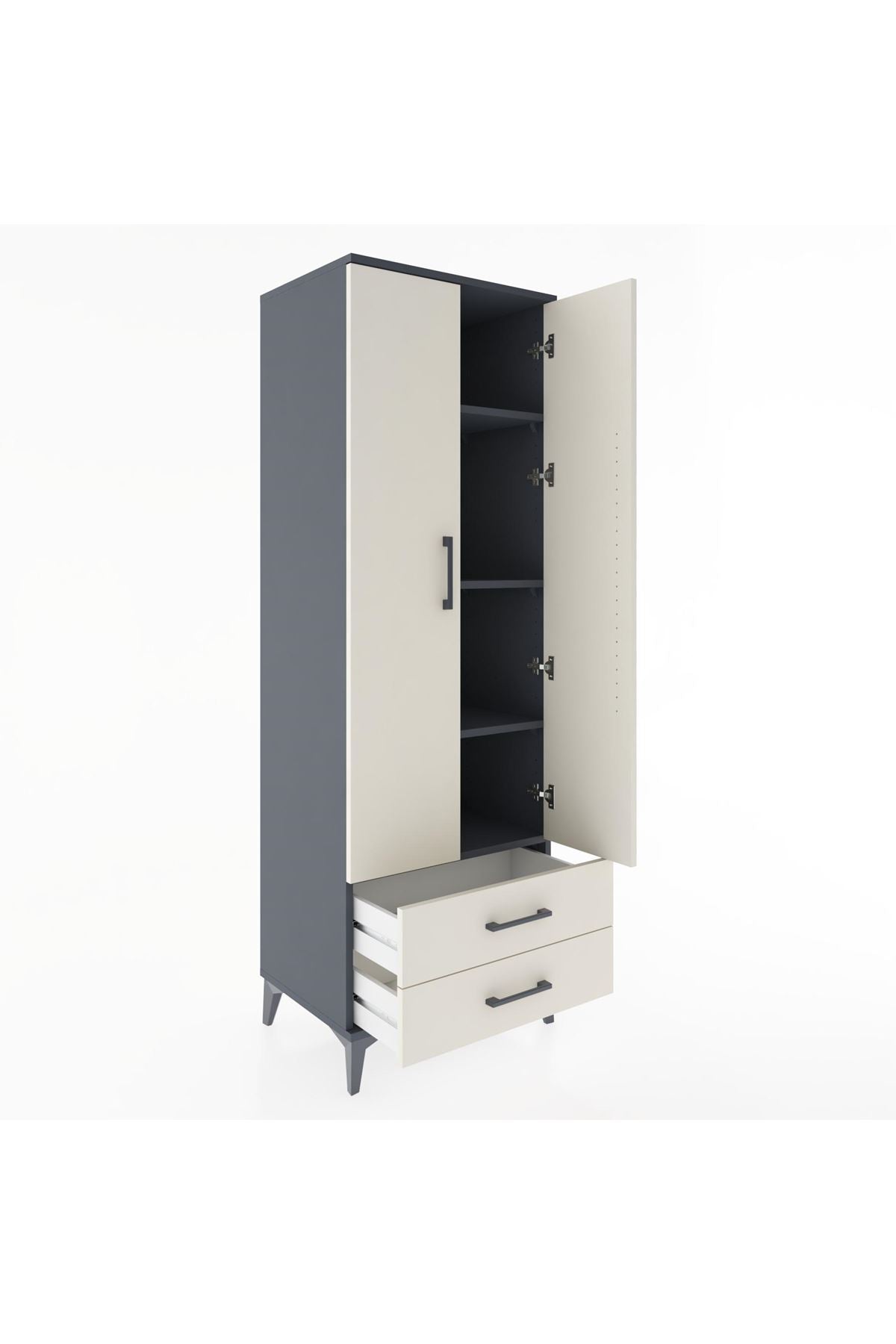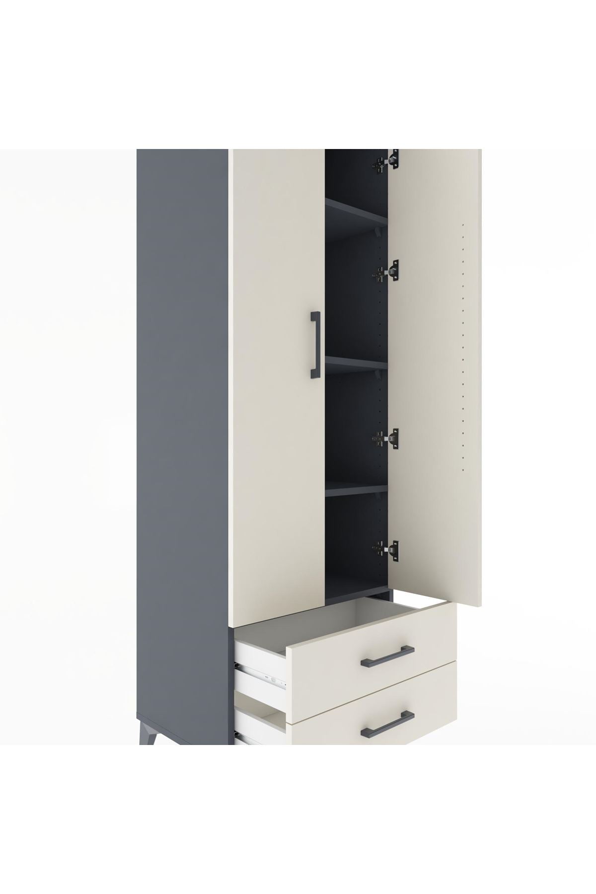 Hyperion Dolap 4 Raflı 2 Çekmeceli 2 Kapaklı 60x44x182 Antrasit-Aytaşı