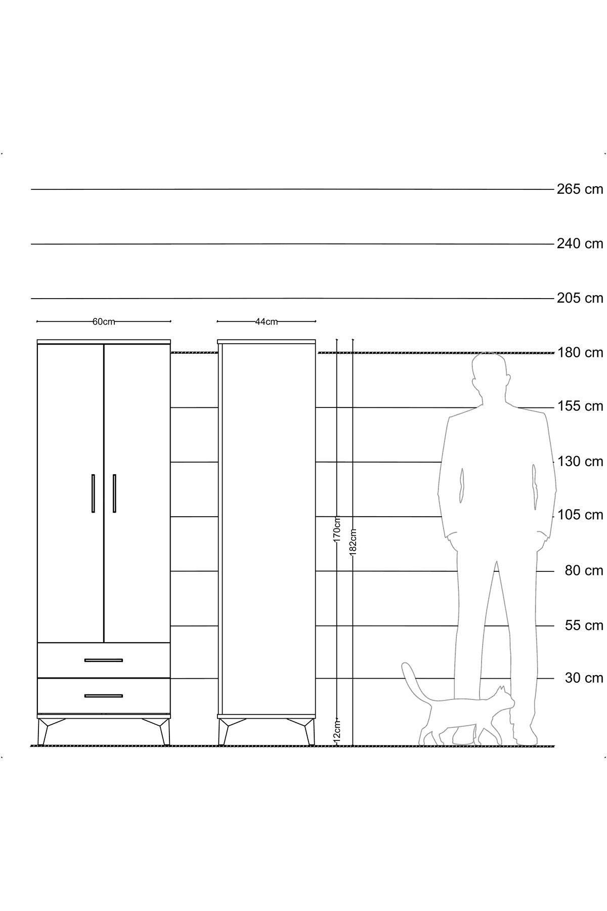 Genişlik: 44 CM – Derinlik: 44 CM – Yükseklik: 182 CM