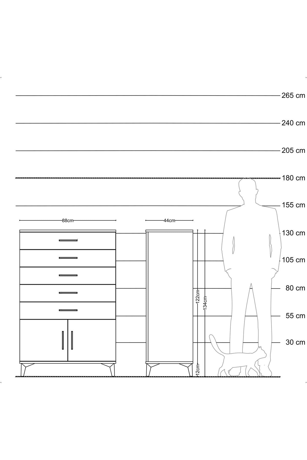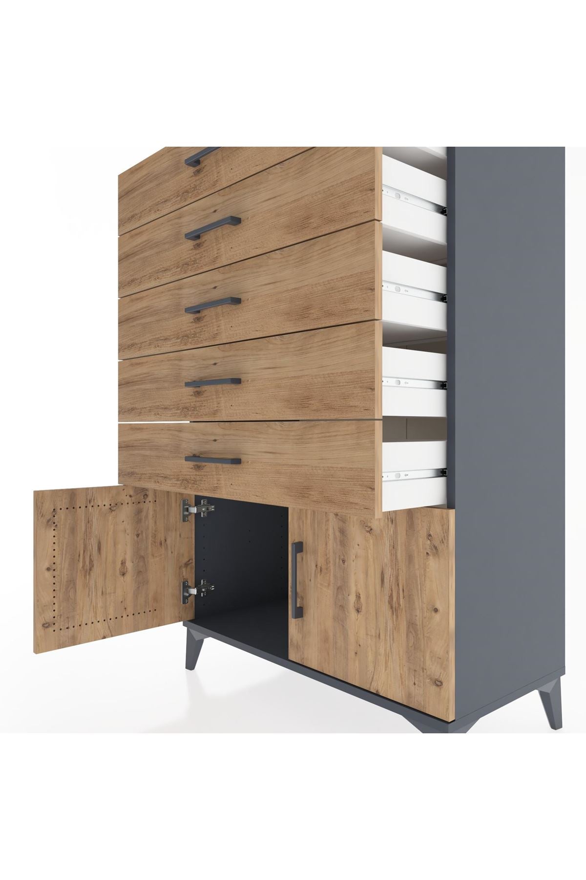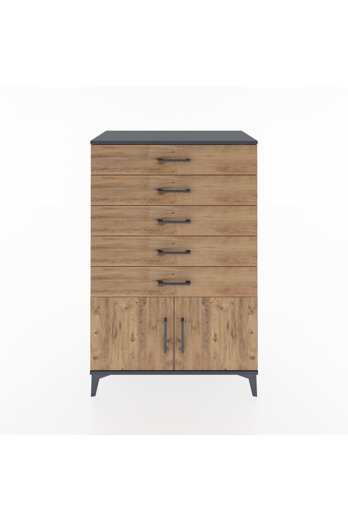 Hyperion Dolap 5 Çekmeceli 2 Kapaklı 88x44x134 Antrasit-Çam