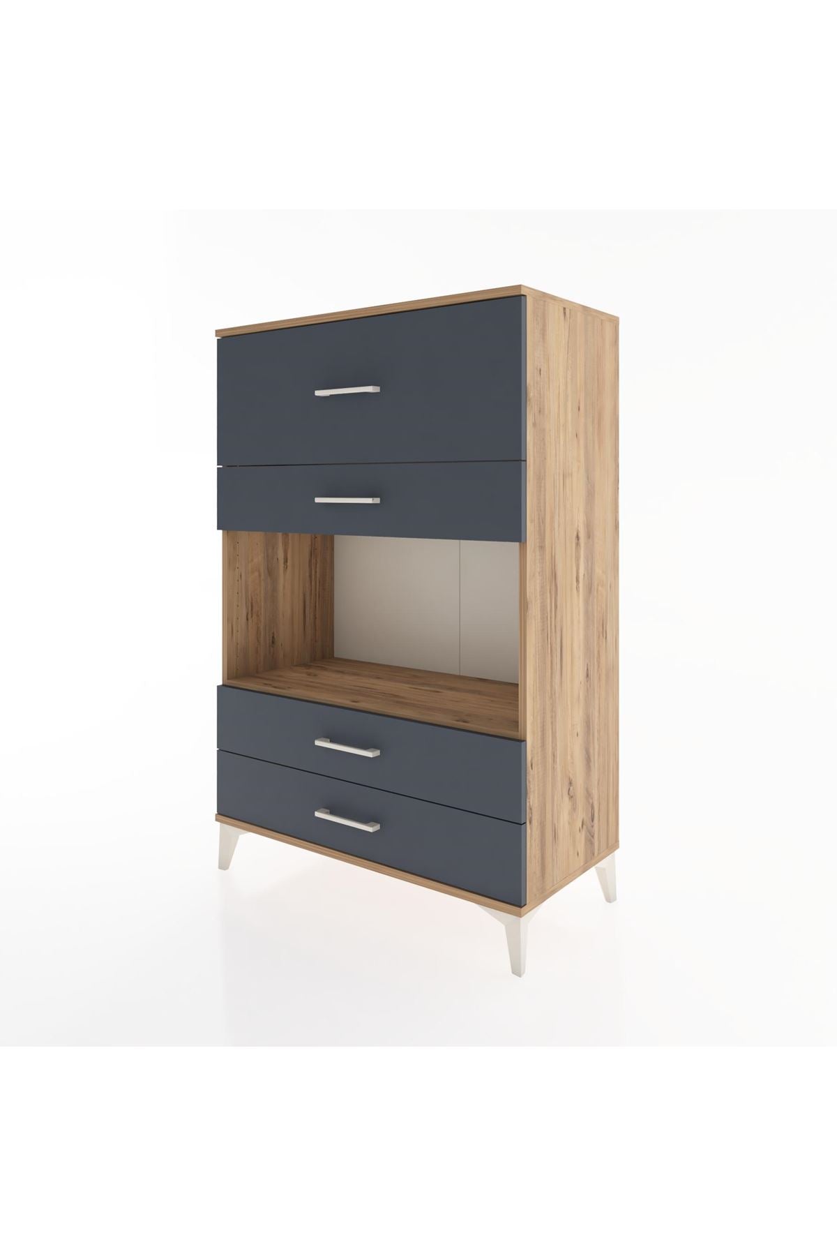 Hyperion Dolap Tek Raflı 4 Çekmeceli 88x44x134 Çam-Antrasit