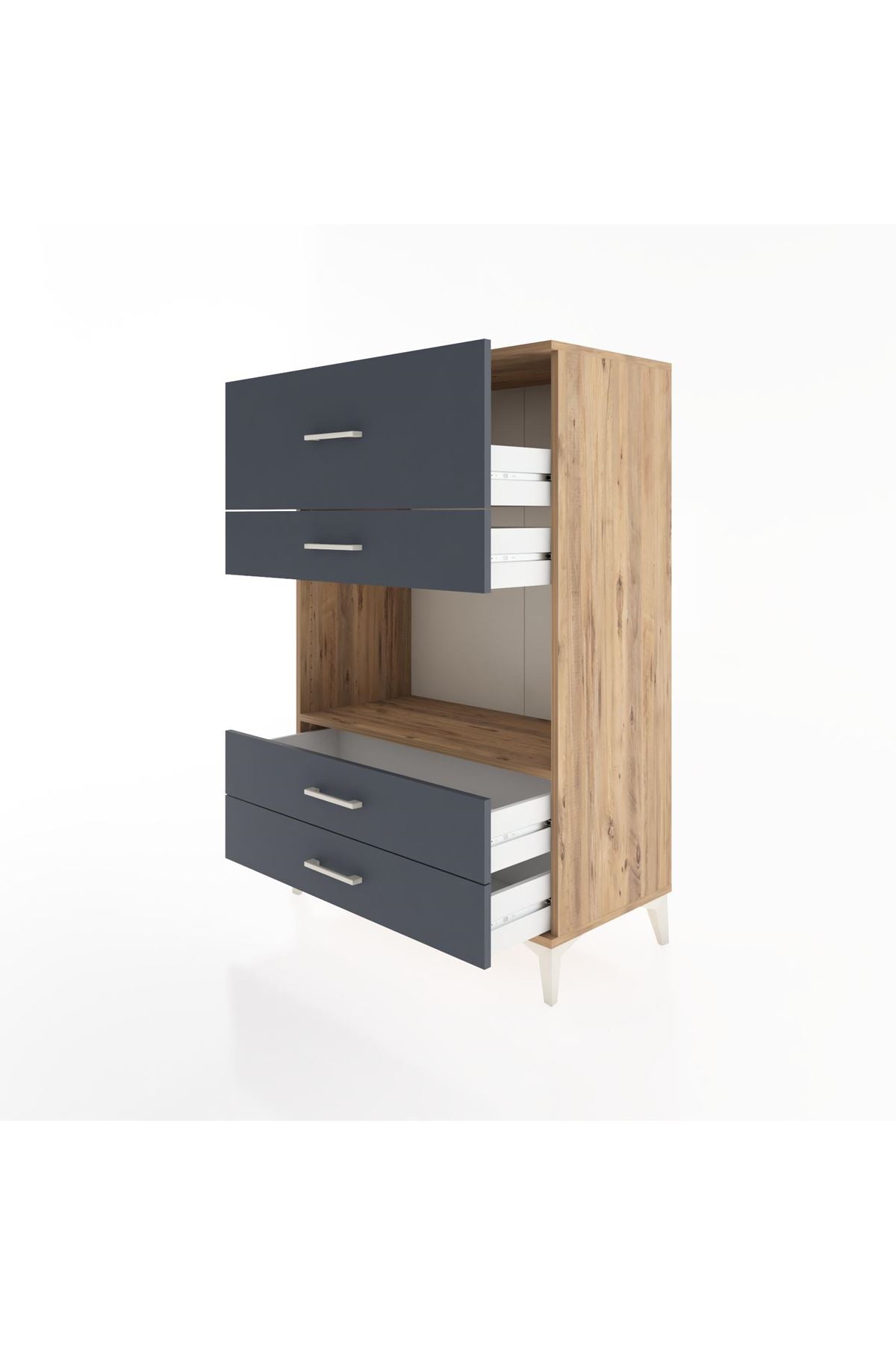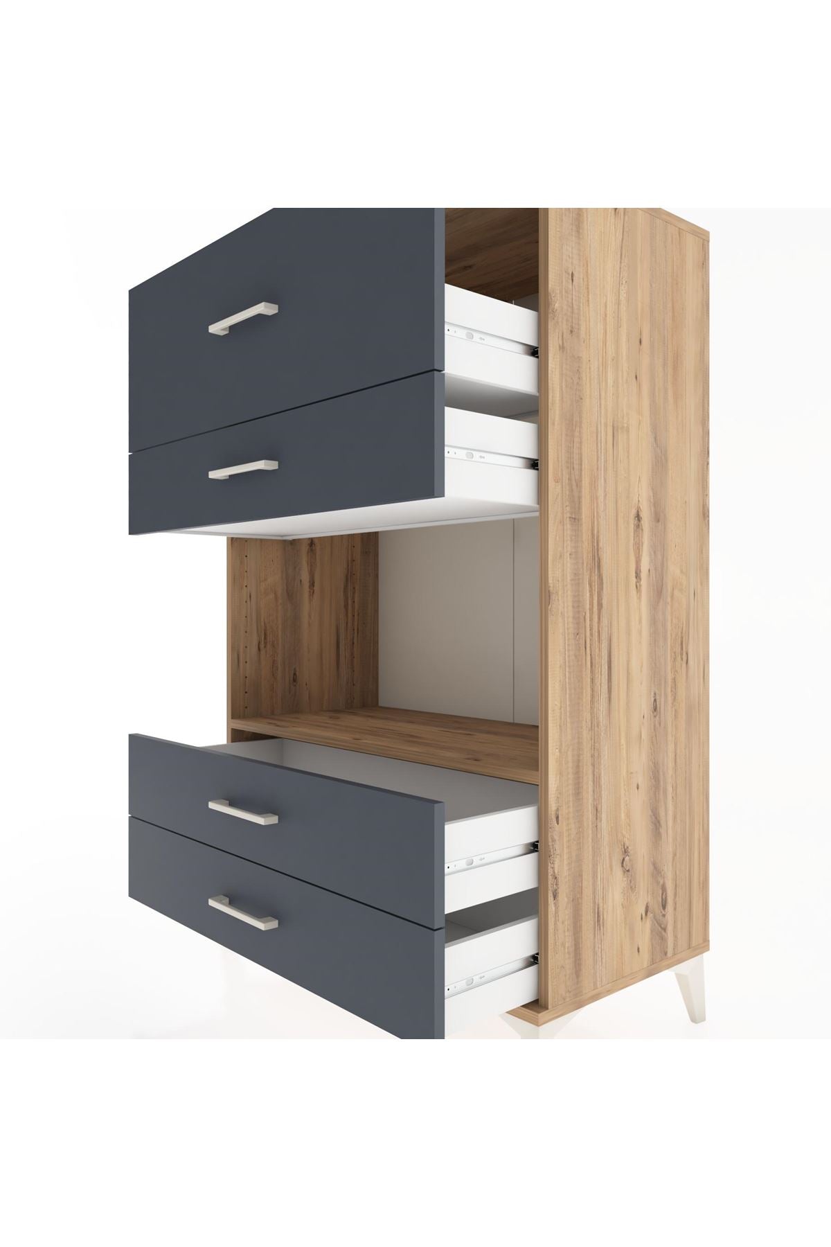 🗄️ Çekmecelerimiz, eşyalarınıza kolayca ulaşabilmeniz için ideal açılma mesafesine (23 cm) sahiptir.