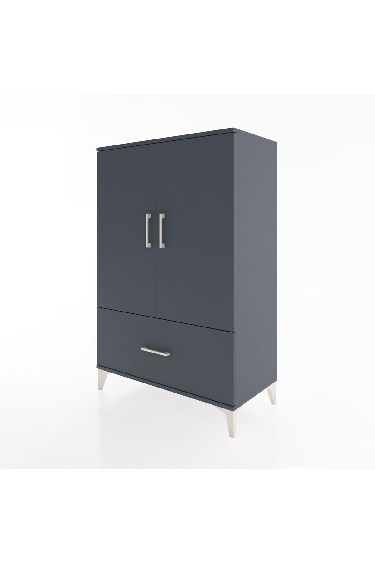 Hyperion Dolap Tek Raflı Tek Çekmeceli Tek Askılı 88x44x134 Antrasit-Antrasit