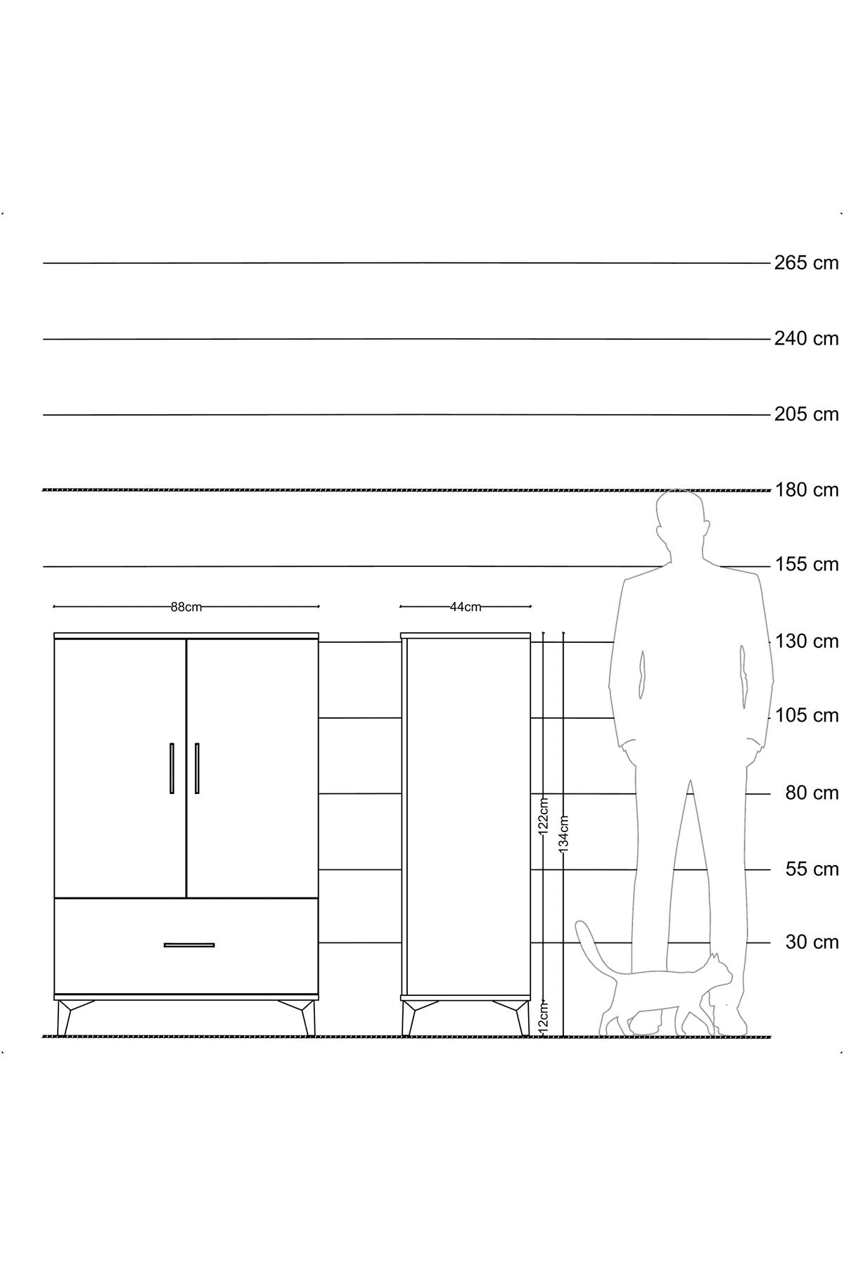 Genişlik: 44 CM – Derinlik: 44 CM – Yükseklik: 134 CM