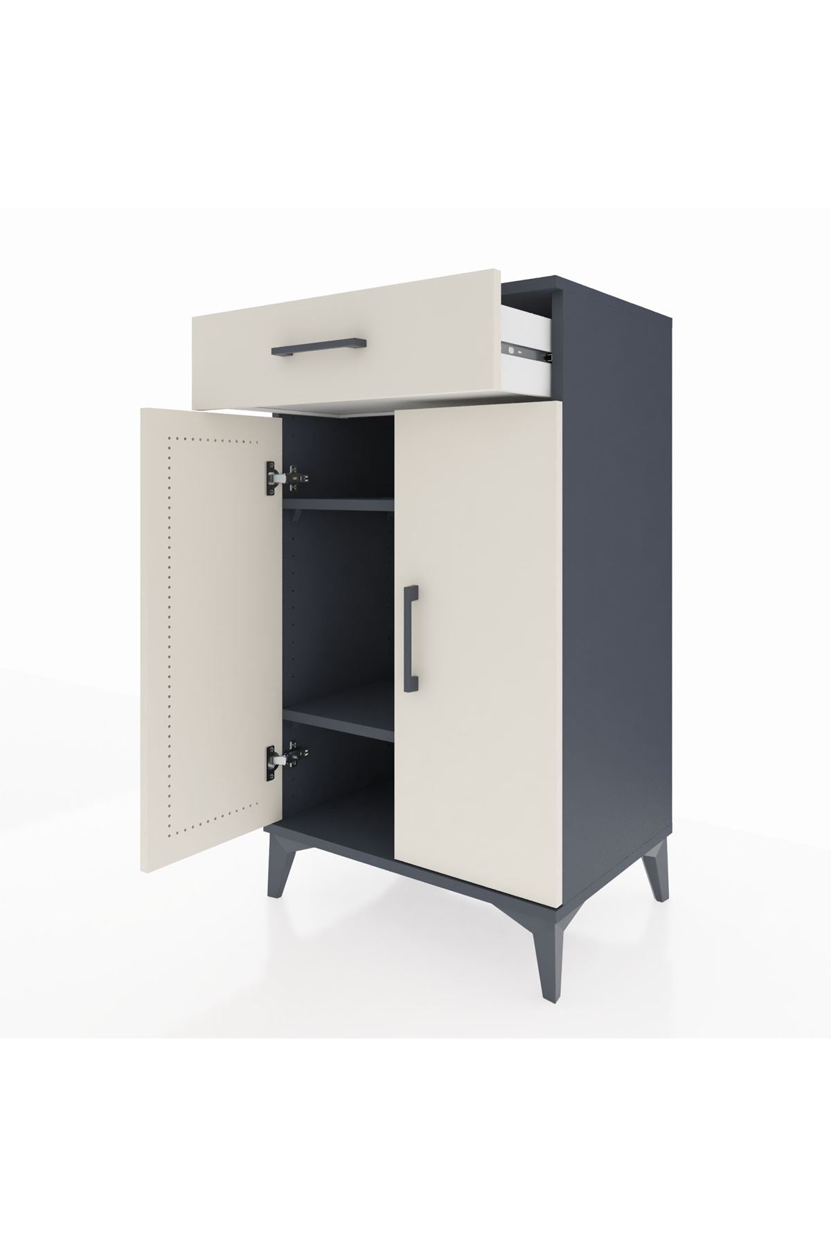 Hyperion Komodin 2 Raflı Tek Çekmeceli 2 Kapaklı 60x44x106 Antrasit-Aytaşı