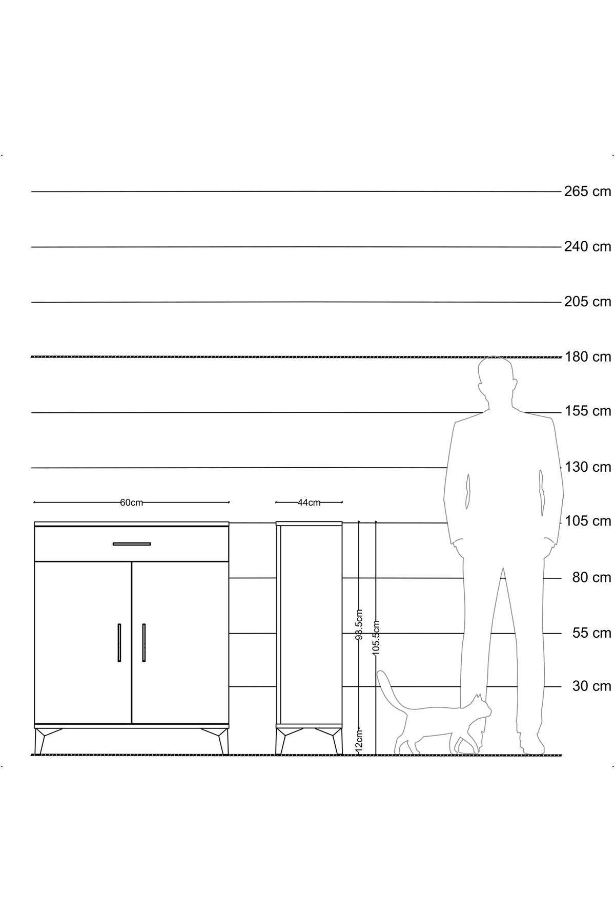 Genişlik: 44 CM – Derinlik: 44 CM – Yükseklik: 106 CM