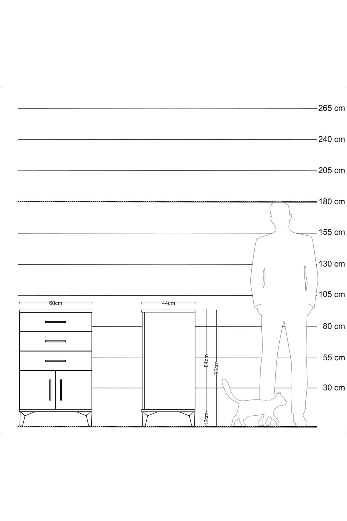 🦾 Metal ayakları sayesinde yerden yüksekliği robot süpürge kullanımına uygundur. Metal kulpları ise komodinin şıklığını tamamlar. Dayanıklı yapısıyla uzun yıllar sorunsuz bir şekilde kullanabilirsiniz.