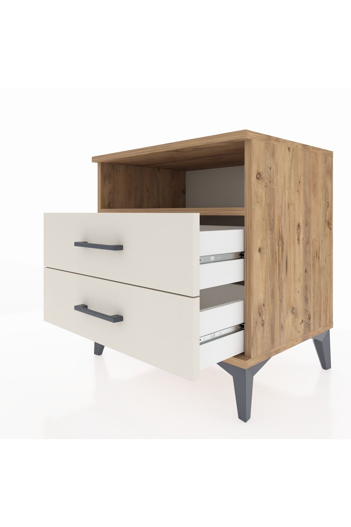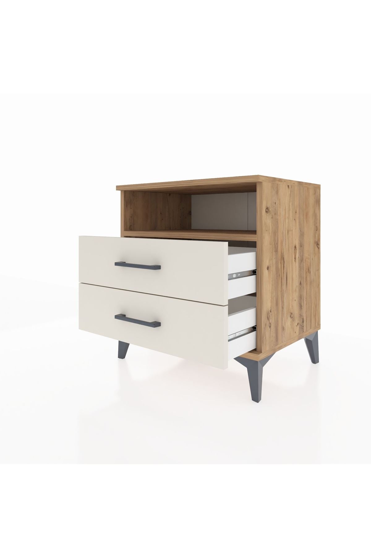 ✨ Yatak odanıza şıklık ve fonksiyonellik katacak Hyperion Komodin ile tanışın! Çam ve Aytaşı renklerinin huzur veren kombinasyonu, modern tasarımıyla odanızın atmosferini değiştirecek.