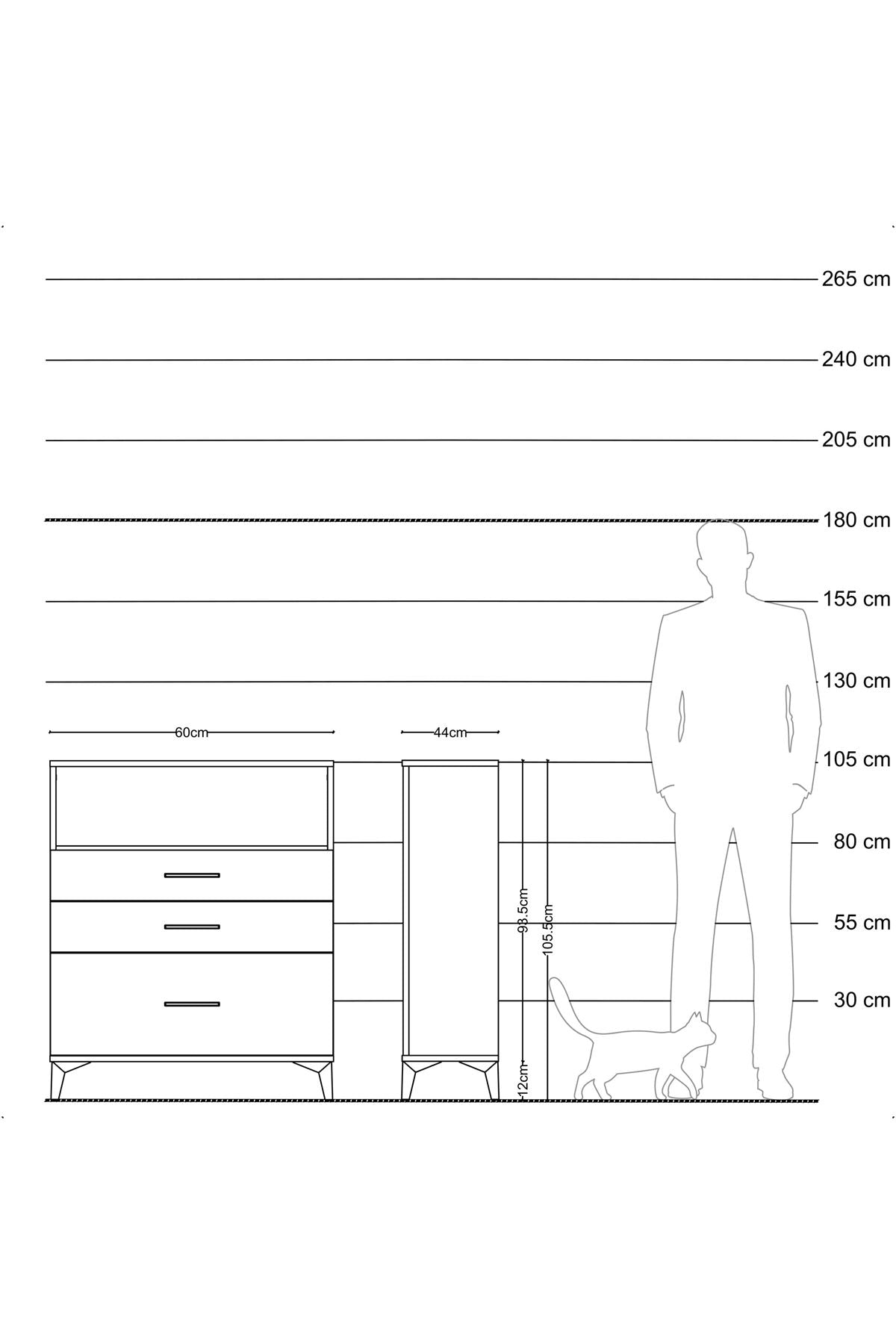 Hyperion Komodin Tek Raflı 3 Çekmeceli 60x44x106 Aytaşı-Çam