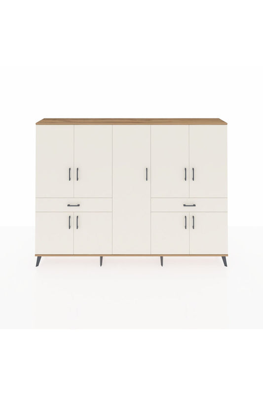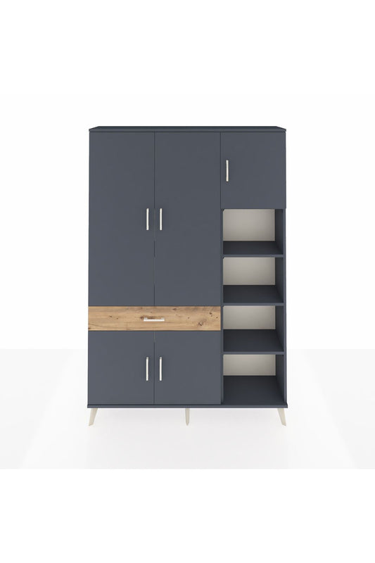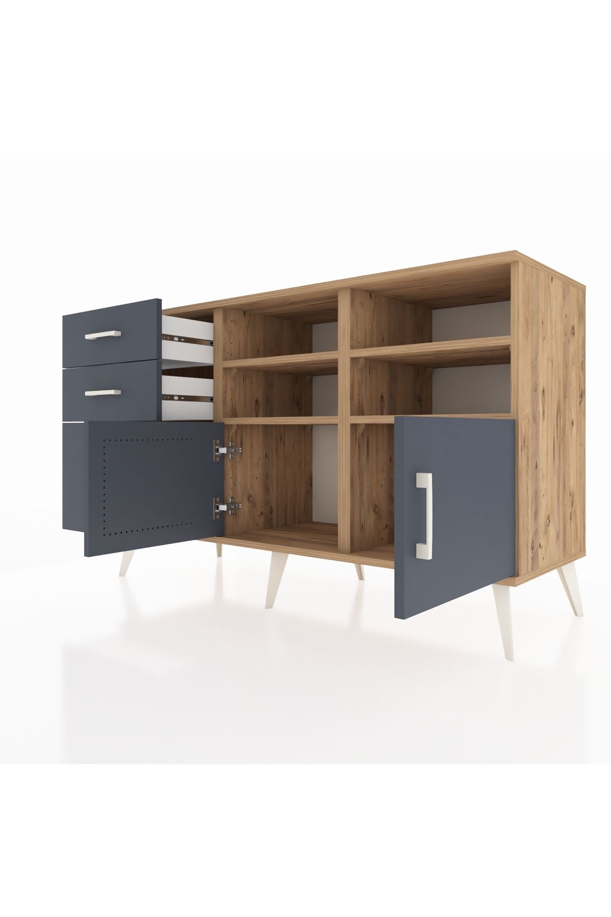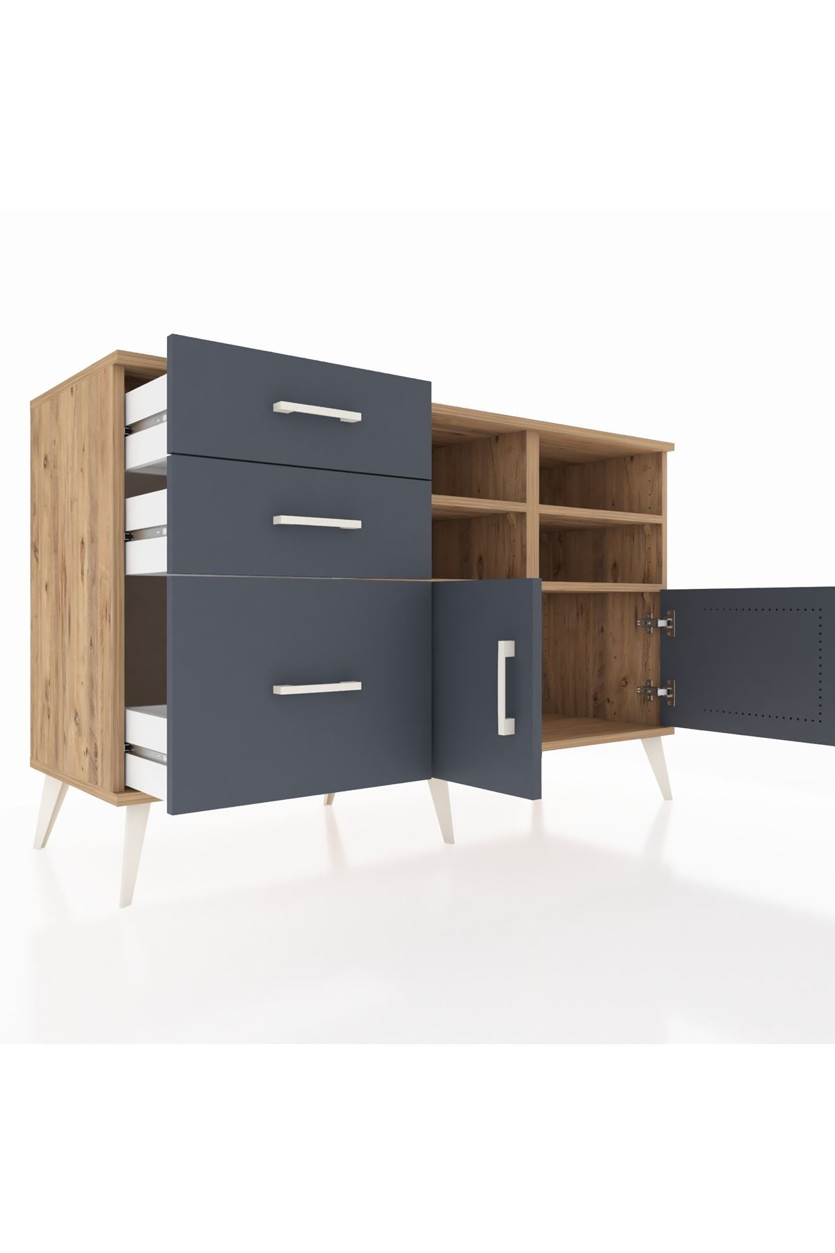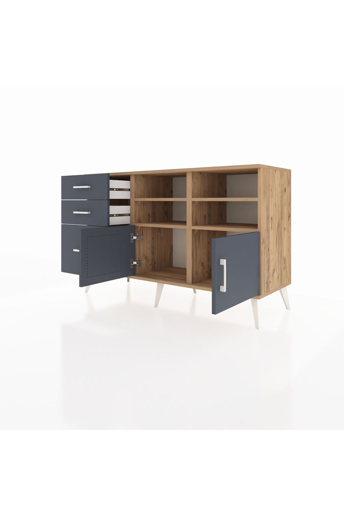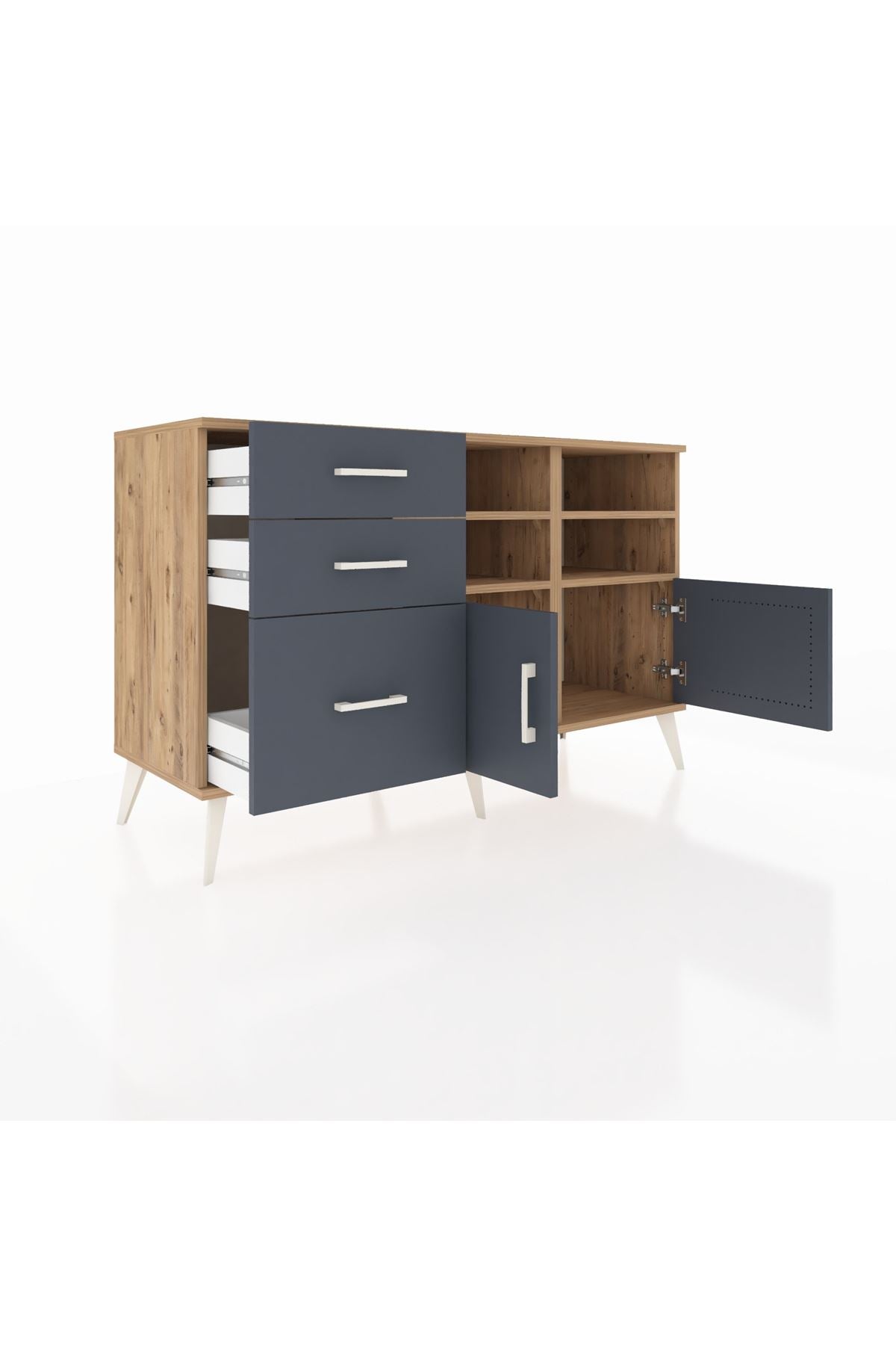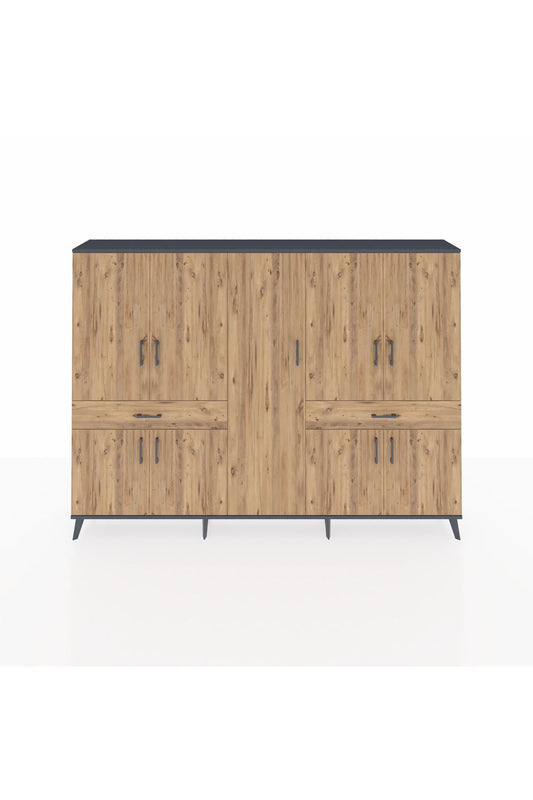 Hyperion Konsol 4 Raflı 3 Çekmeceli 2 Kapaklı 132x44x83 Çam-Antrasit