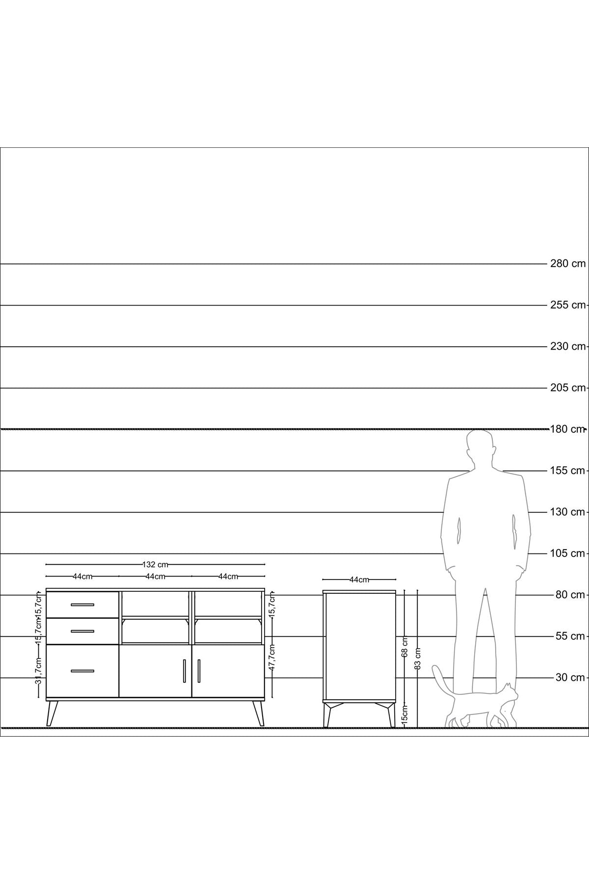 Genişlik: 132 CM – Derinlik: 44 CM – Yükseklik: 83 CM