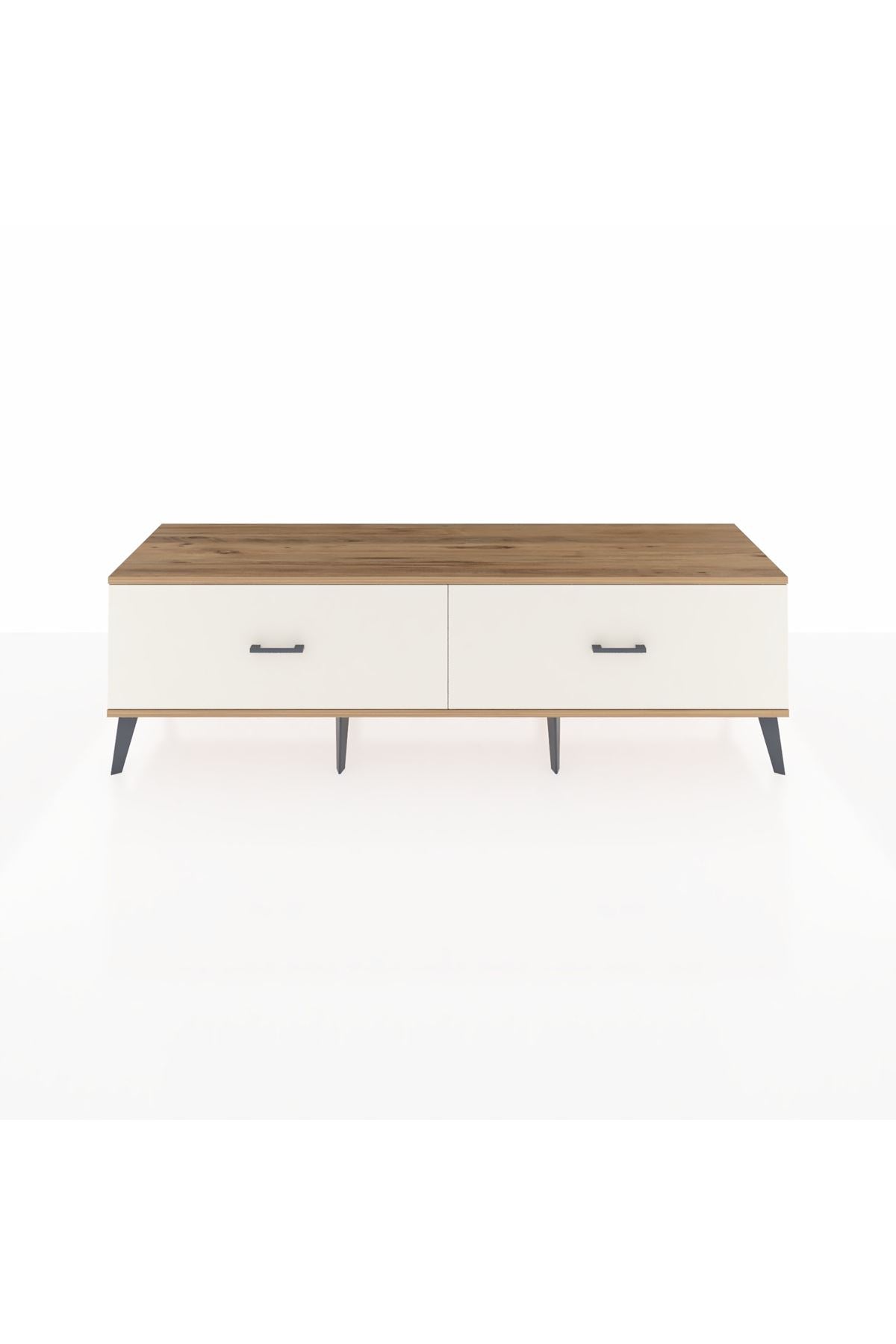 ✨ Salonunuza modern bir dokunuş katmaya hazır mısınız? Hyperion TV Ünitesi, çam ve aytaşı renklerinin mükemmel uyumuyla evinize sıcaklık ve şıklık getiriyor. İki çekmecesi ile kullanışlı bir depolama alanı sunarken, zarif tasarımıyla göz kamaştırıyor.