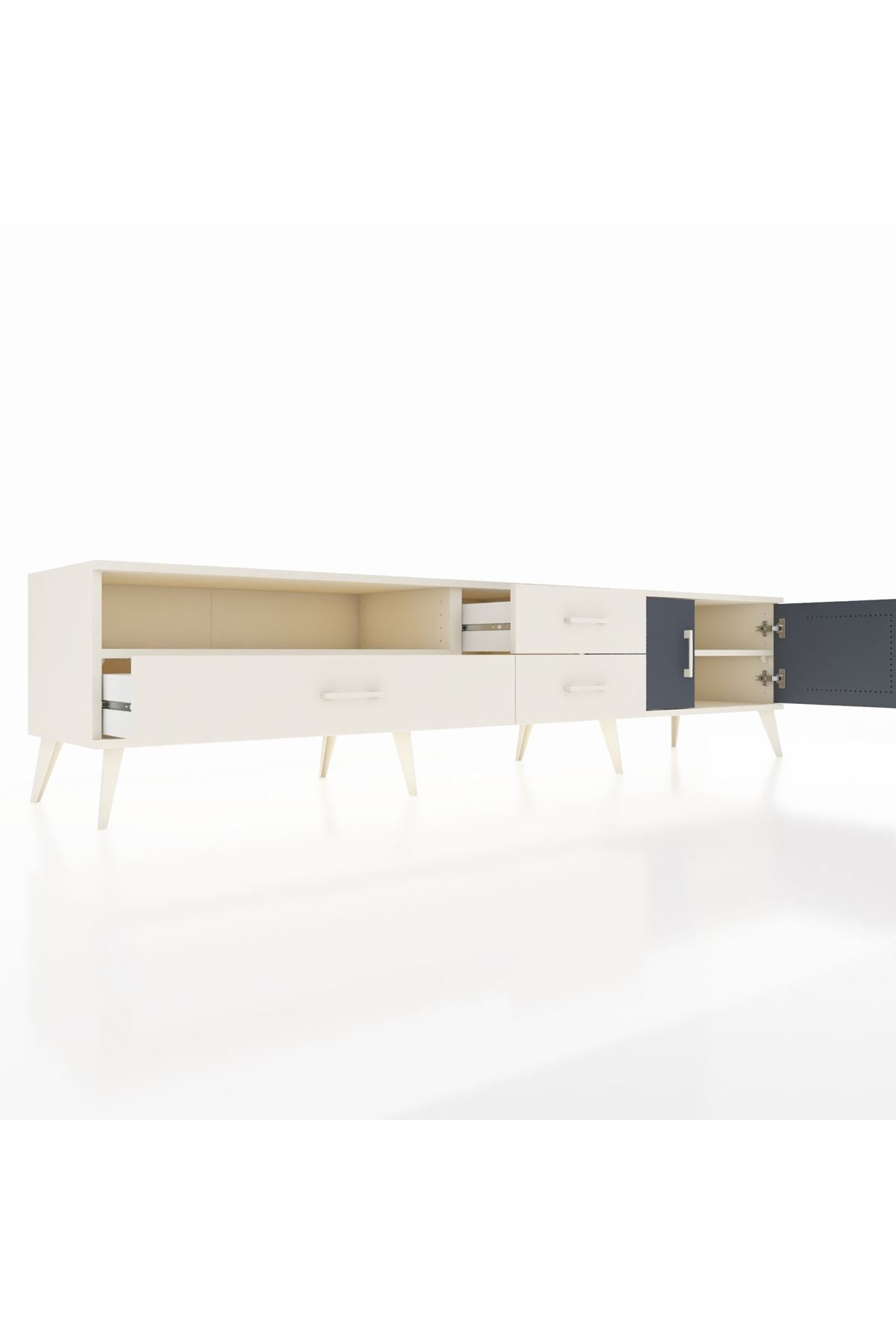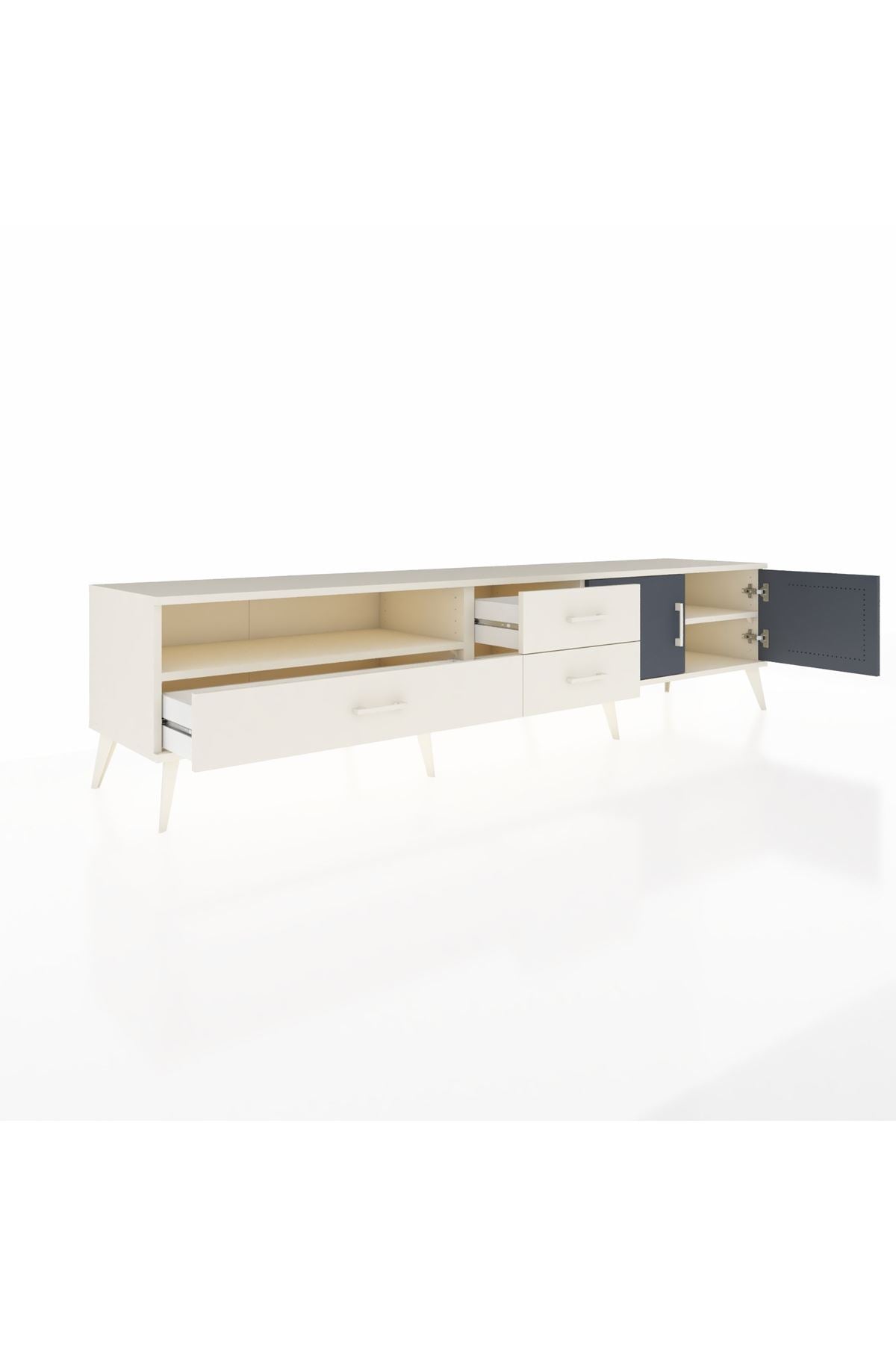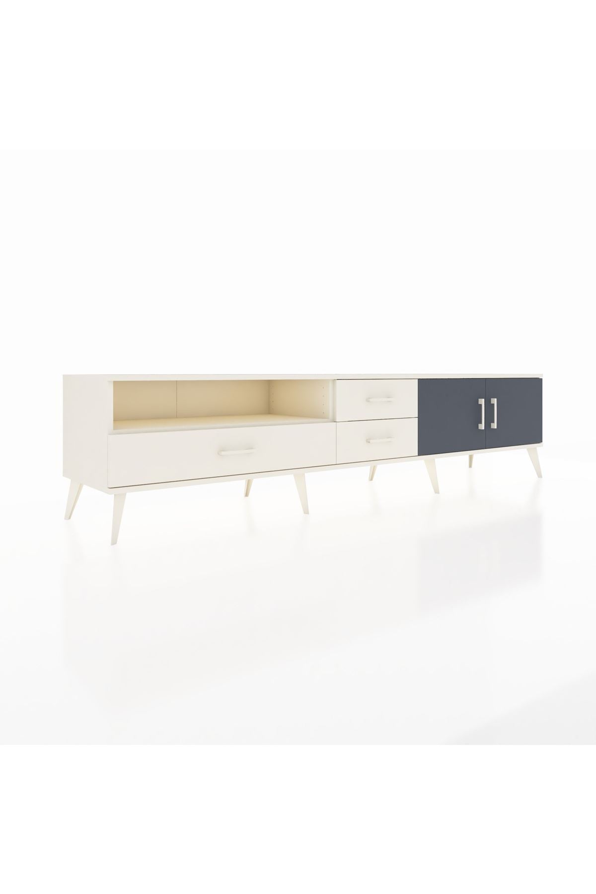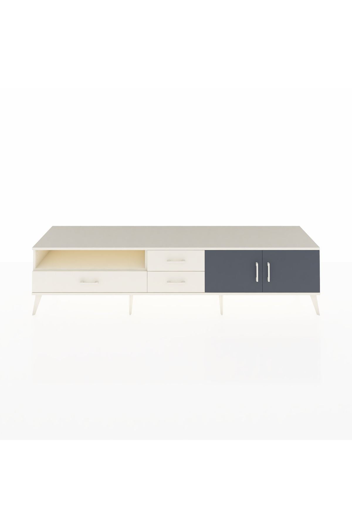 Hyperion TV Ünitesi: 2 Raflı, 3 Çekmeceli, 2 Kapaklı. Renk: Aytaşı-Antrasit/Aytaşı. Ölçüler: 220x44x51 cm.