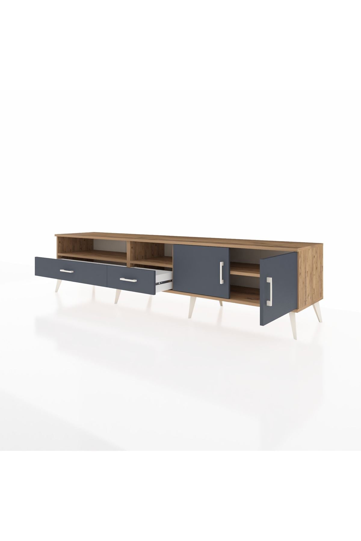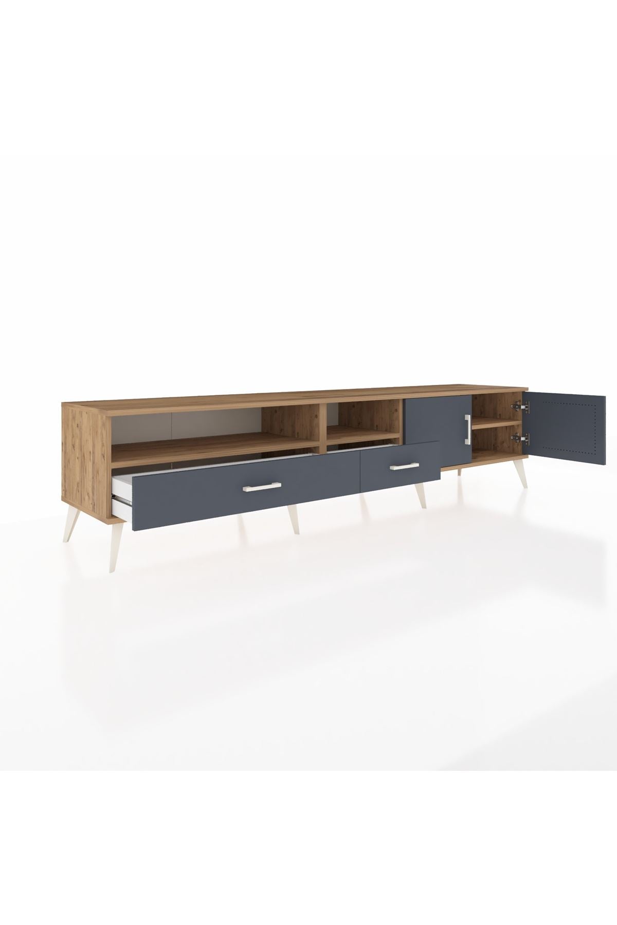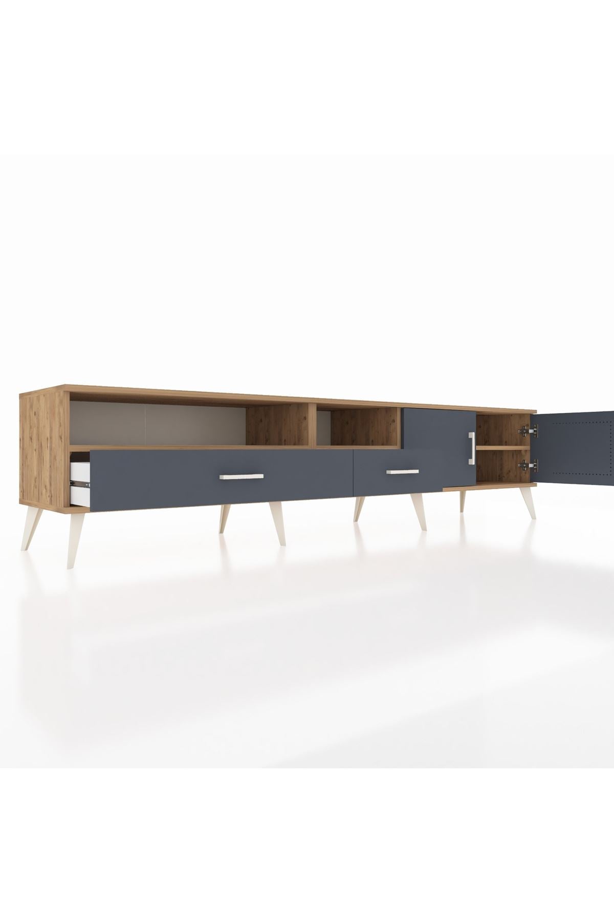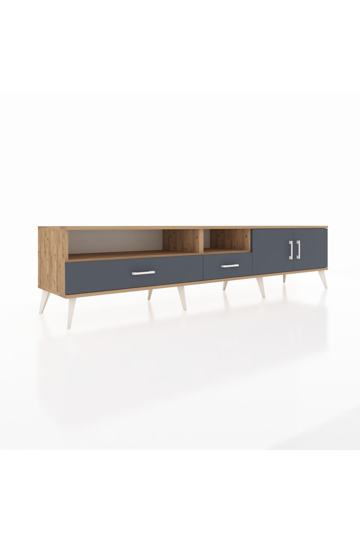 Hyperion TV Ünitesi 3 Raflı 2 Çekmeceli 2 Kapaklı 220x44x51 Çam-Antrasit
