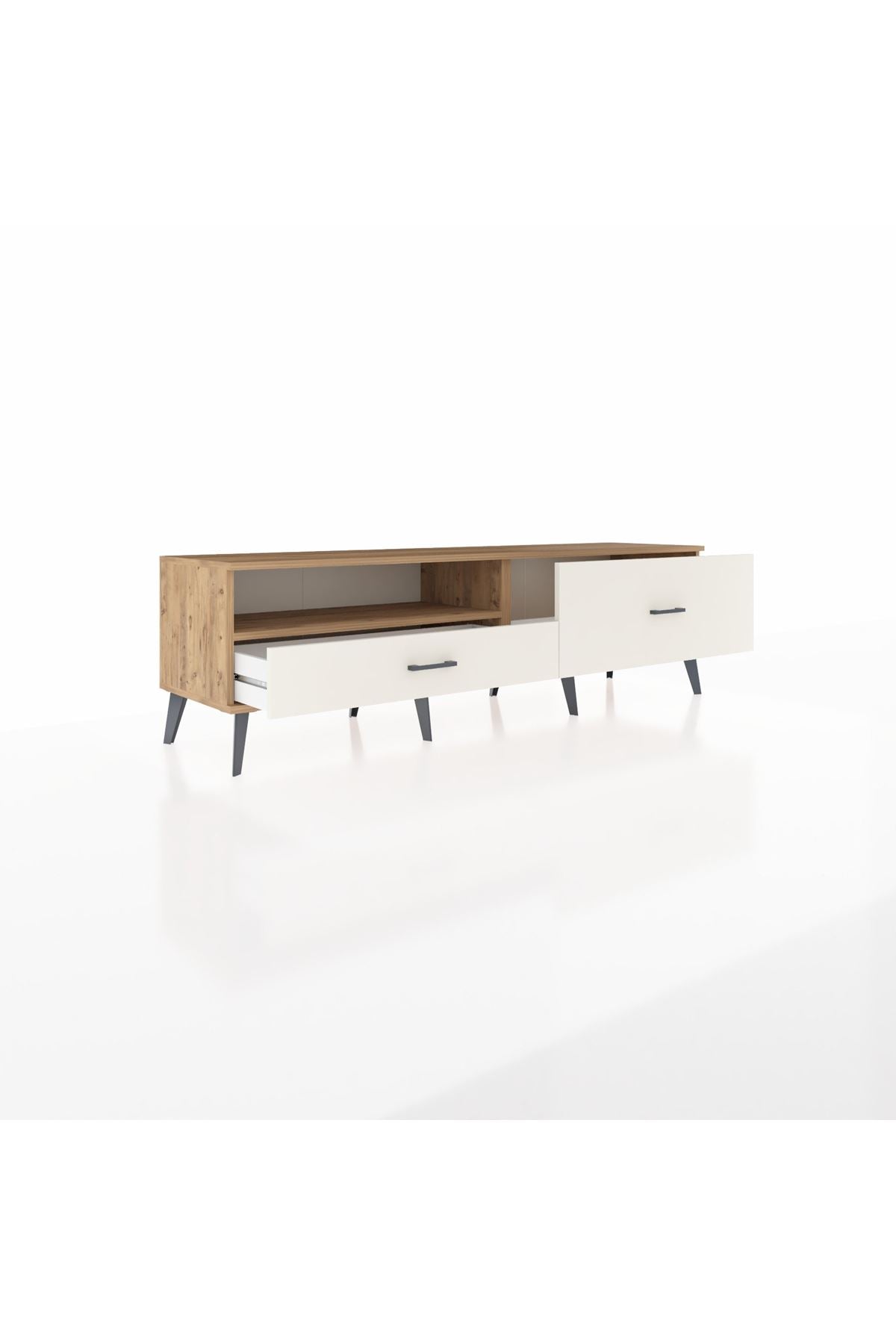 🦾 Metal ayakları ve metal kulpları sayesinde Hyperion TV Ünitesi, sadece şık değil aynı zamanda sağlam ve dayanıklıdır. Robot süpürge kullanımına uygun ayak yüksekliği sayesinde temizlik artık çok daha kolay!