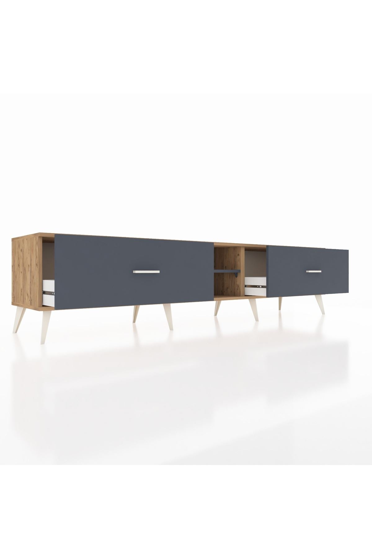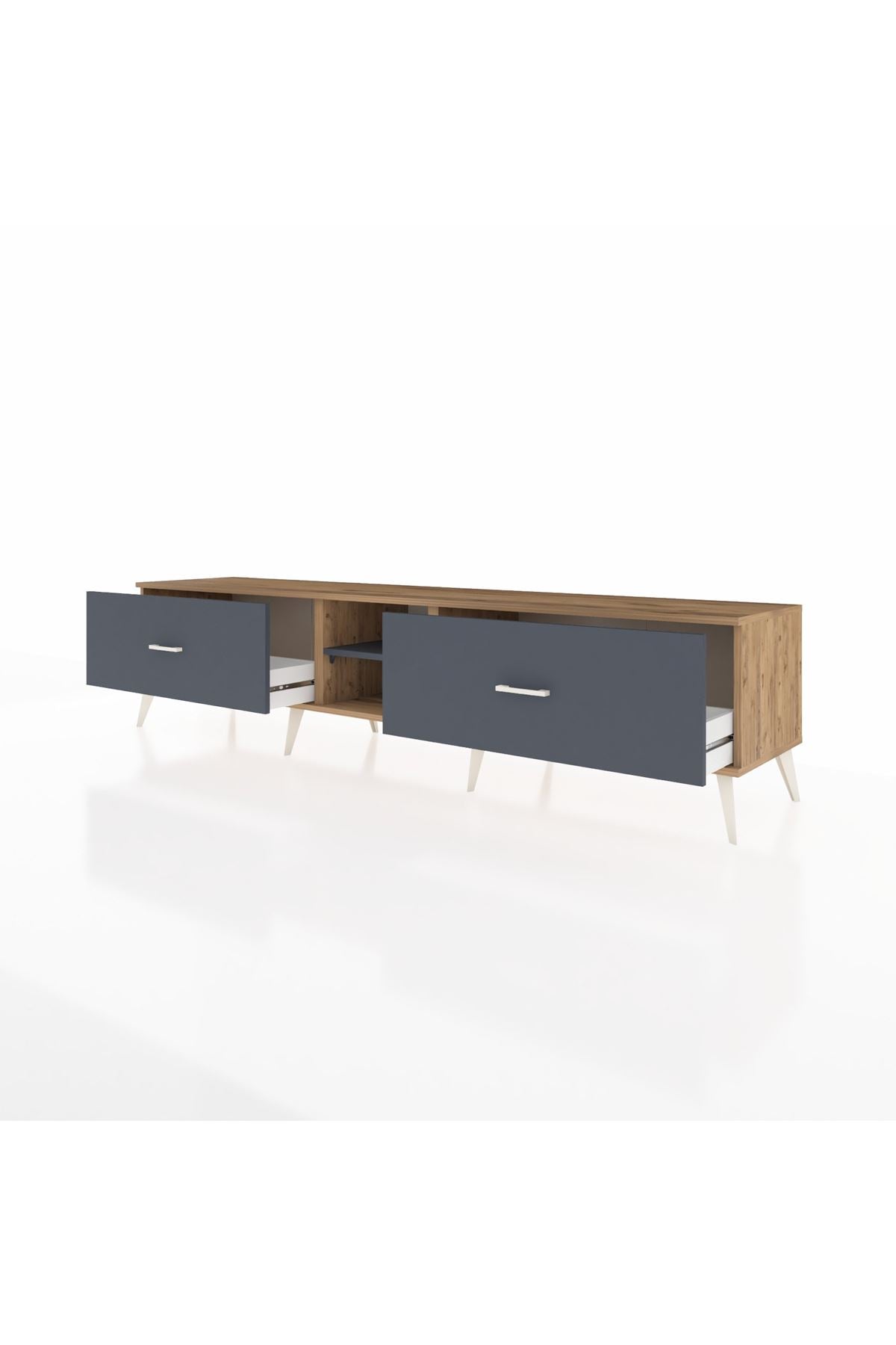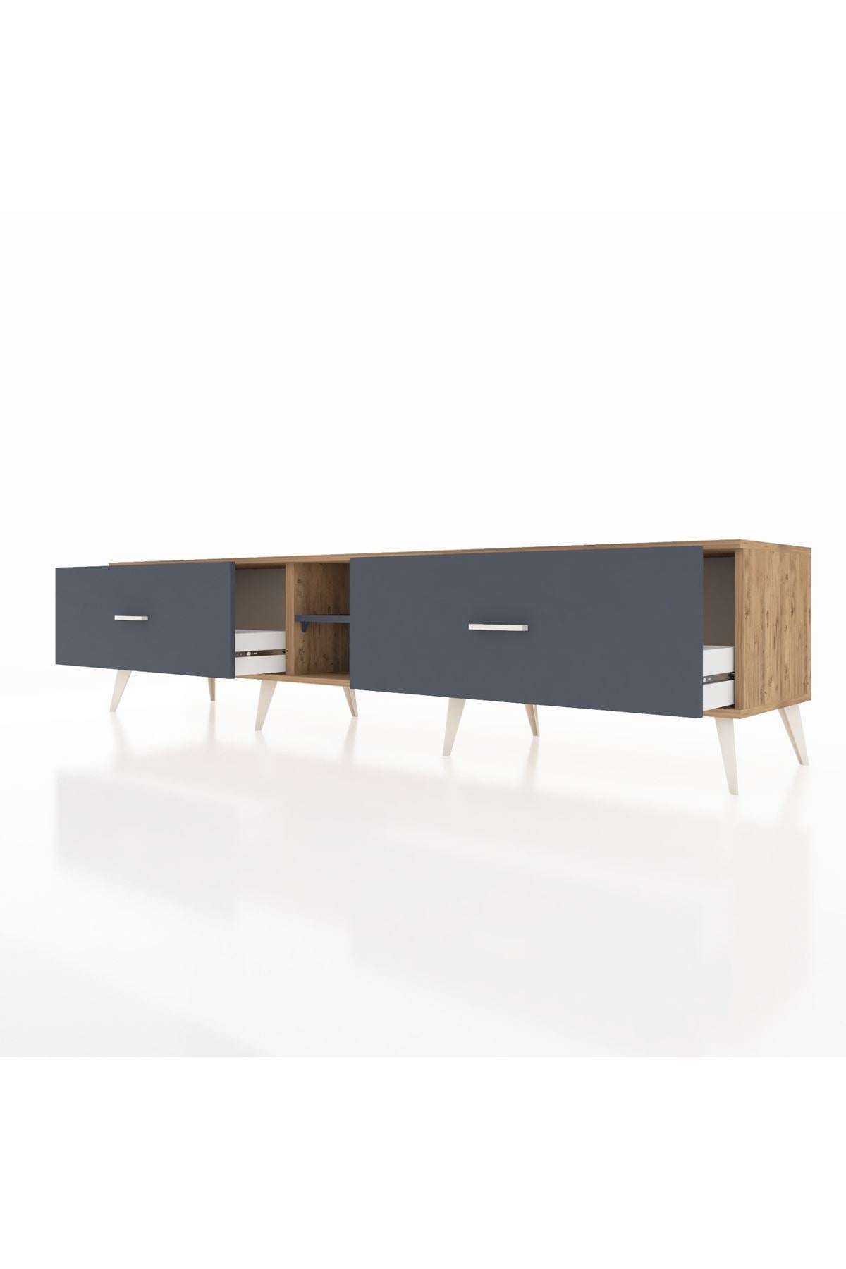 Hyperion TV Ünitesi Tek Raflı 2 Çekmeceli 220x44x51 Çam-Antrasit