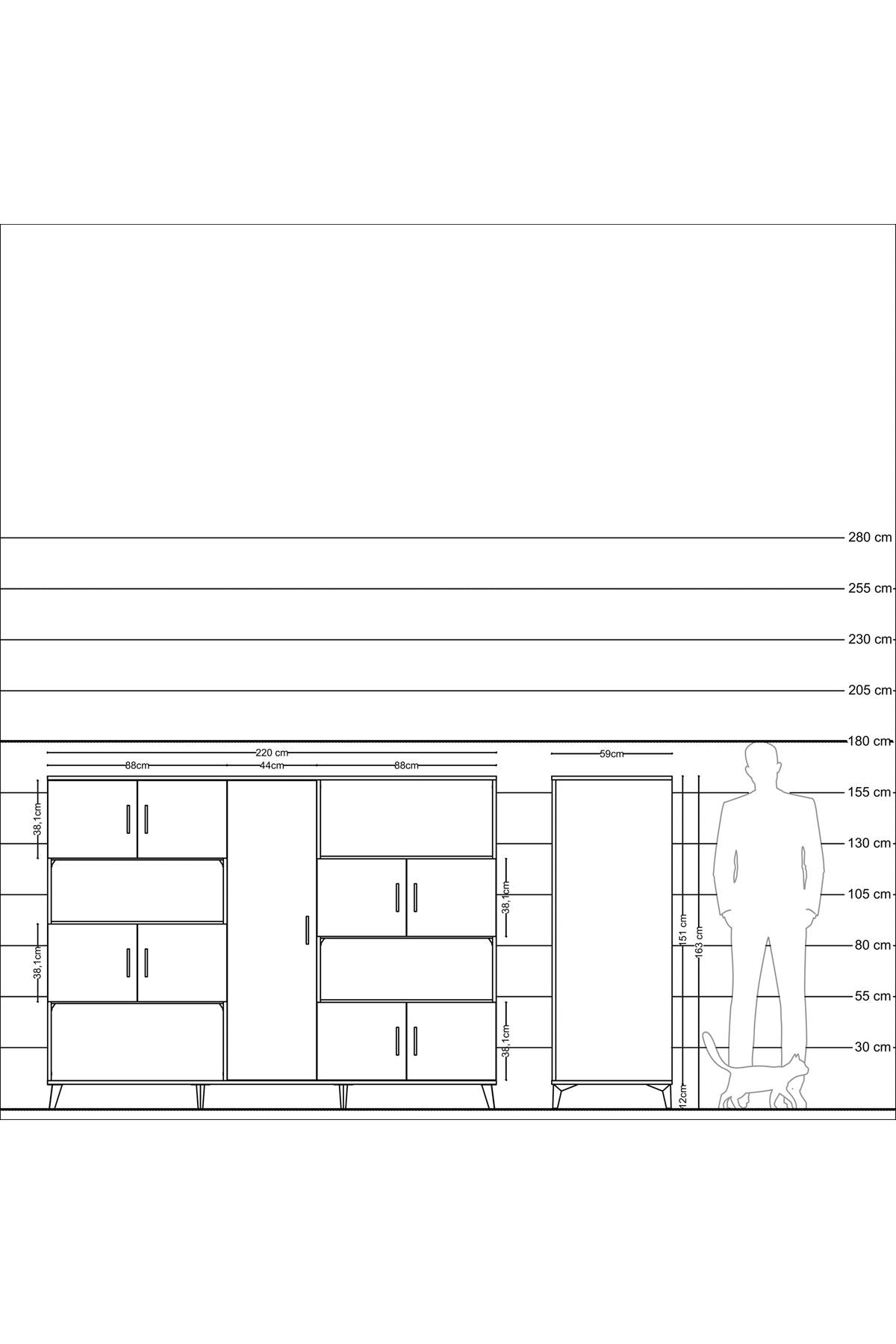 Genişlik: 220 CM – Derinlik: 59 CM – Yükseklik: 163 CM